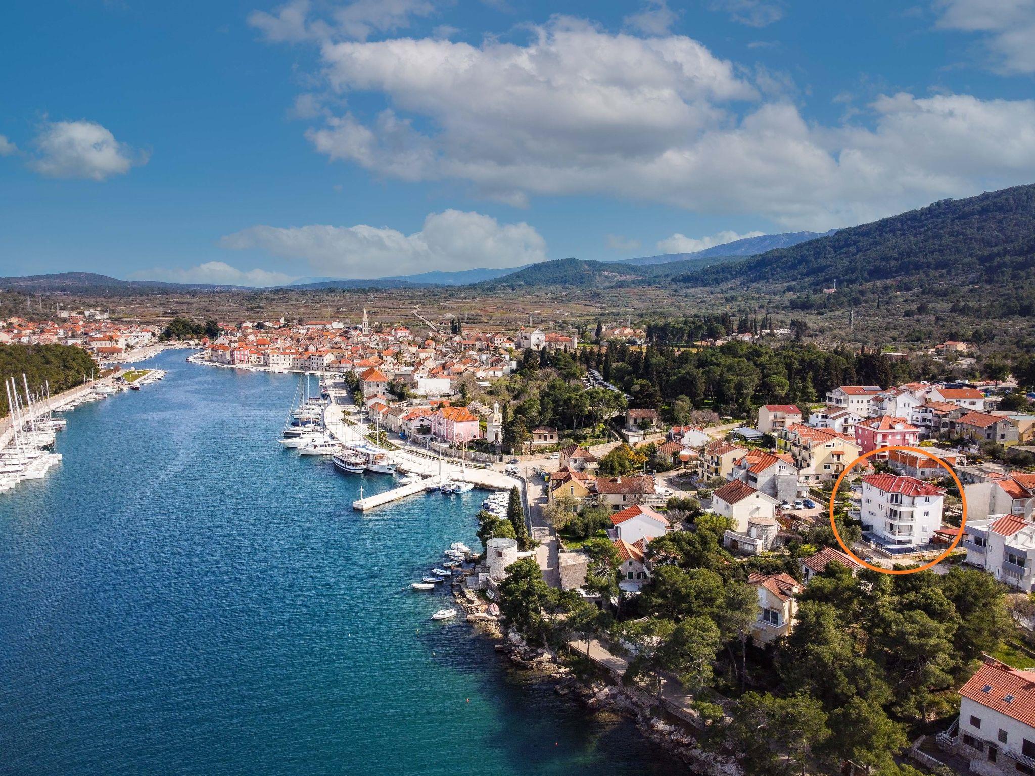 3-family house "Mirroni". 700 m from the centre of Stari Grad, in a quiet, sunny position, 100 m from the sea, 350 m from the beach. Private: property 500 m2 (fenced), swimming pool angular (6 x 4 m, depth 150 cm, seasonal availability: 01.May. - 01.Oct.) with internal staircase. Terrace (60 m2), garden furniture, pool maintenance by the owner/gardener. In the house: internet access. Parking at the house on the premises. Supermarket 1 km, restaurant, café 500 m, bus stop 61.5 km, ferry 1.5 km, pebble beach 350 m.