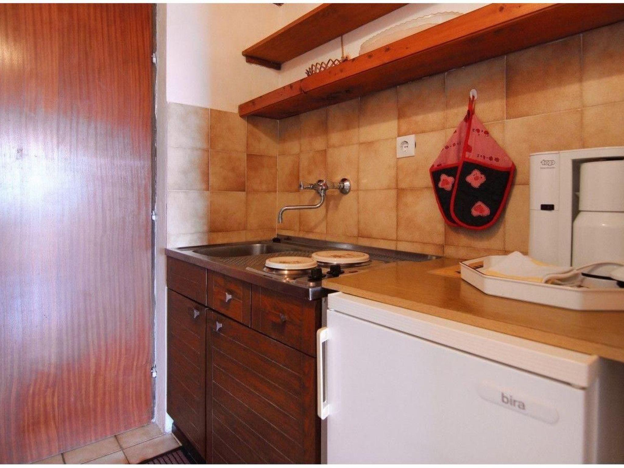 The apartment has a room with two single beds pushed together (each 90 x 190cm), with air conditioning and satellite TV. The adjoining little kitchen is equipped with a fridge, freezer compartment, gas stove, coffee machine and kettle. The studio is rounded off by a bathroom with a shower and WC.