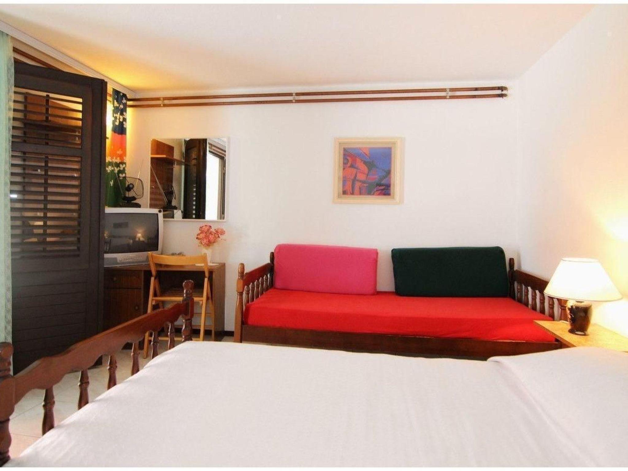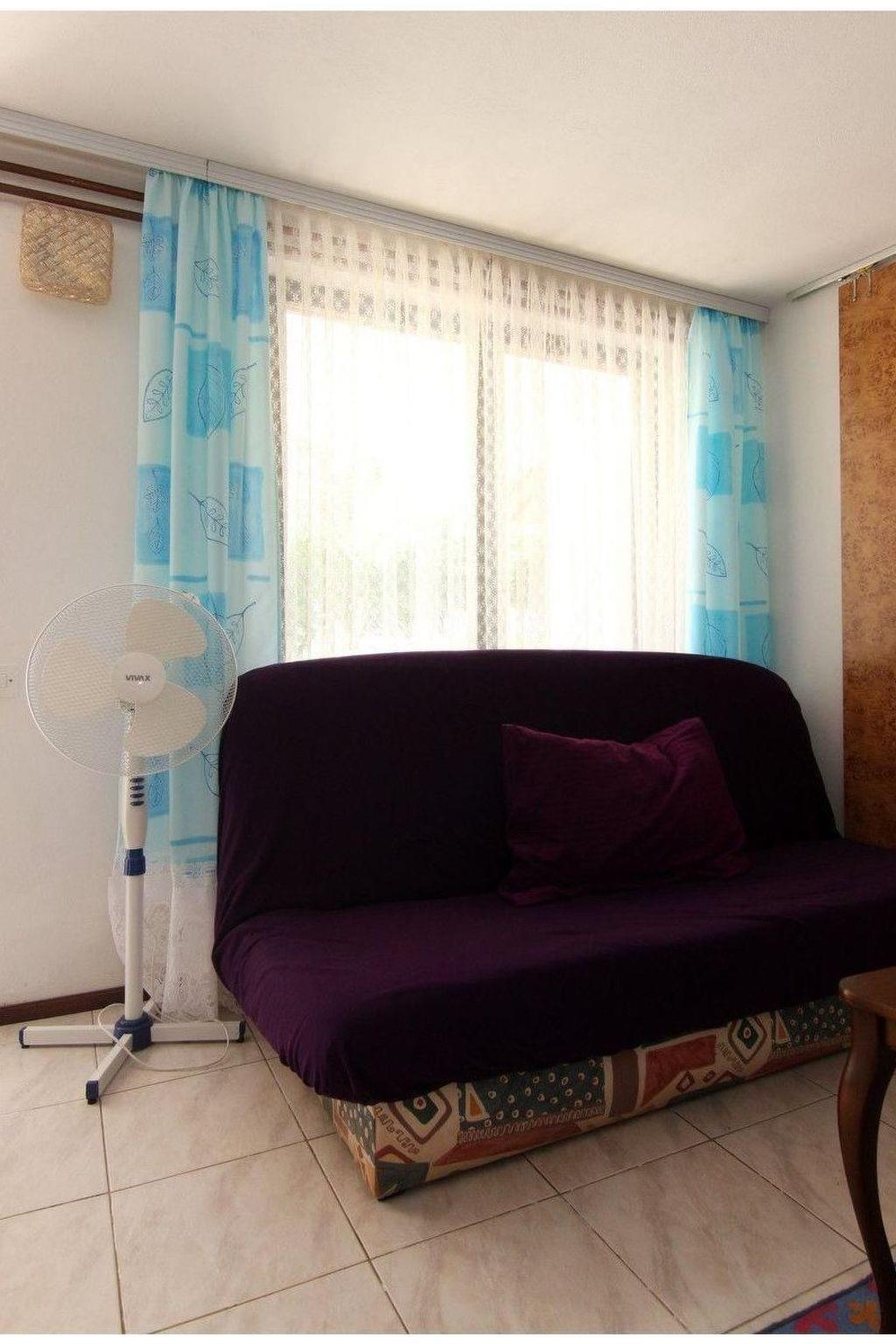 The apartment has two bedrooms, one with two single beds (90 x 190cm) that can also be joined together, the other also with two single beds (80 x 190cm). The bathroom has a corner shower and a WC. The kitchen is equipped with a fridge with a freezer compartment, a gas stove, microwave, kettle and coffee machine.