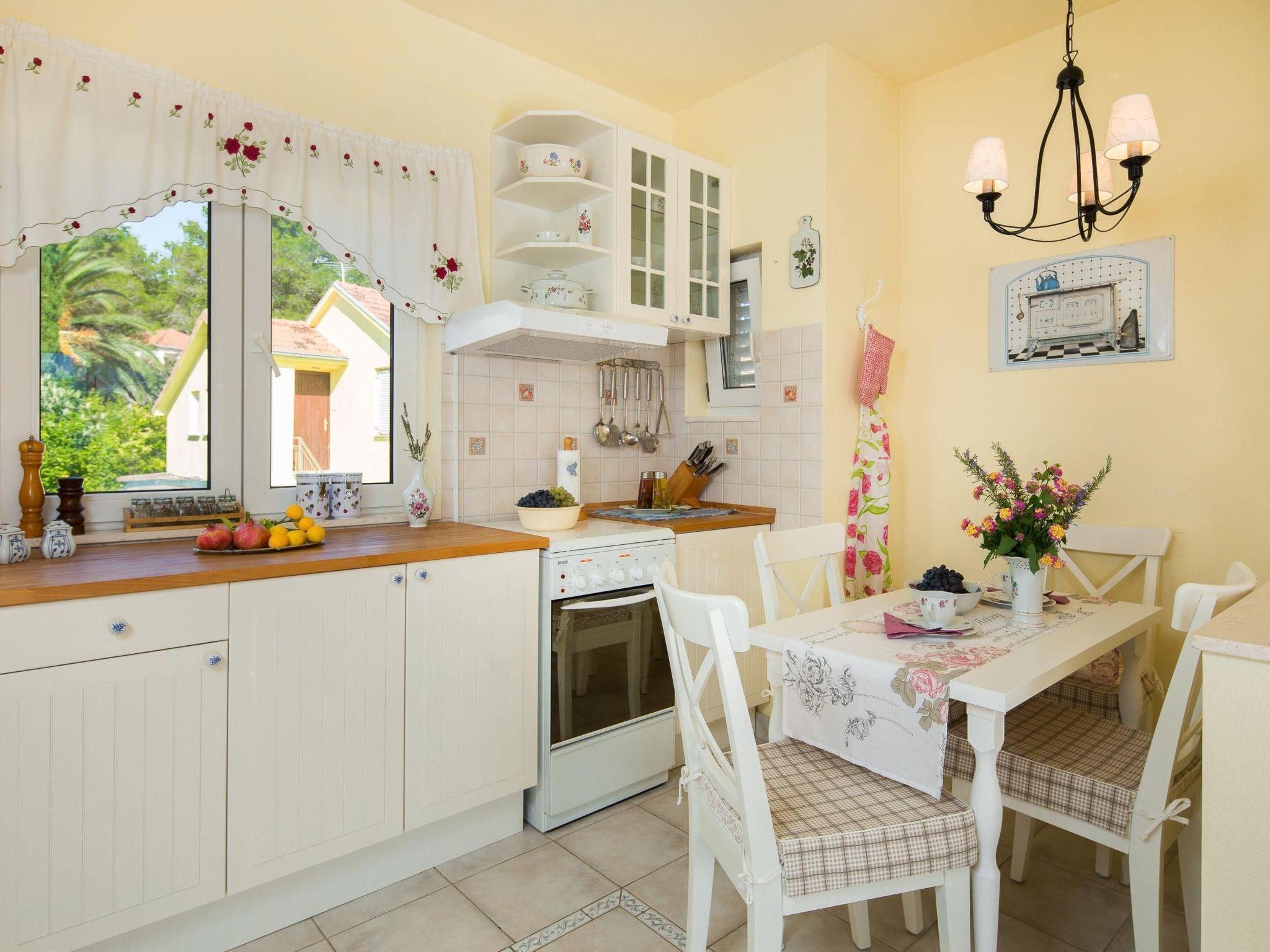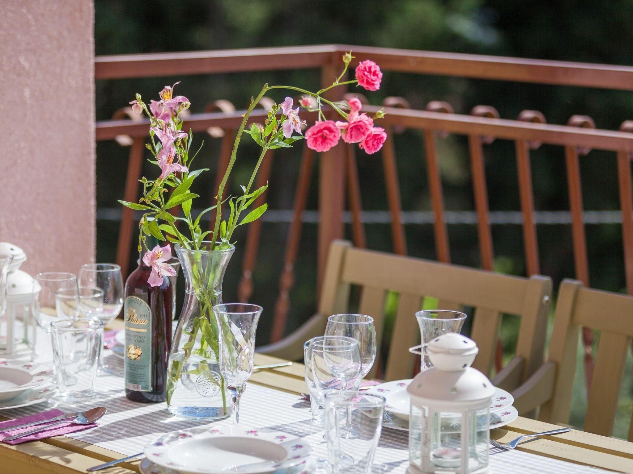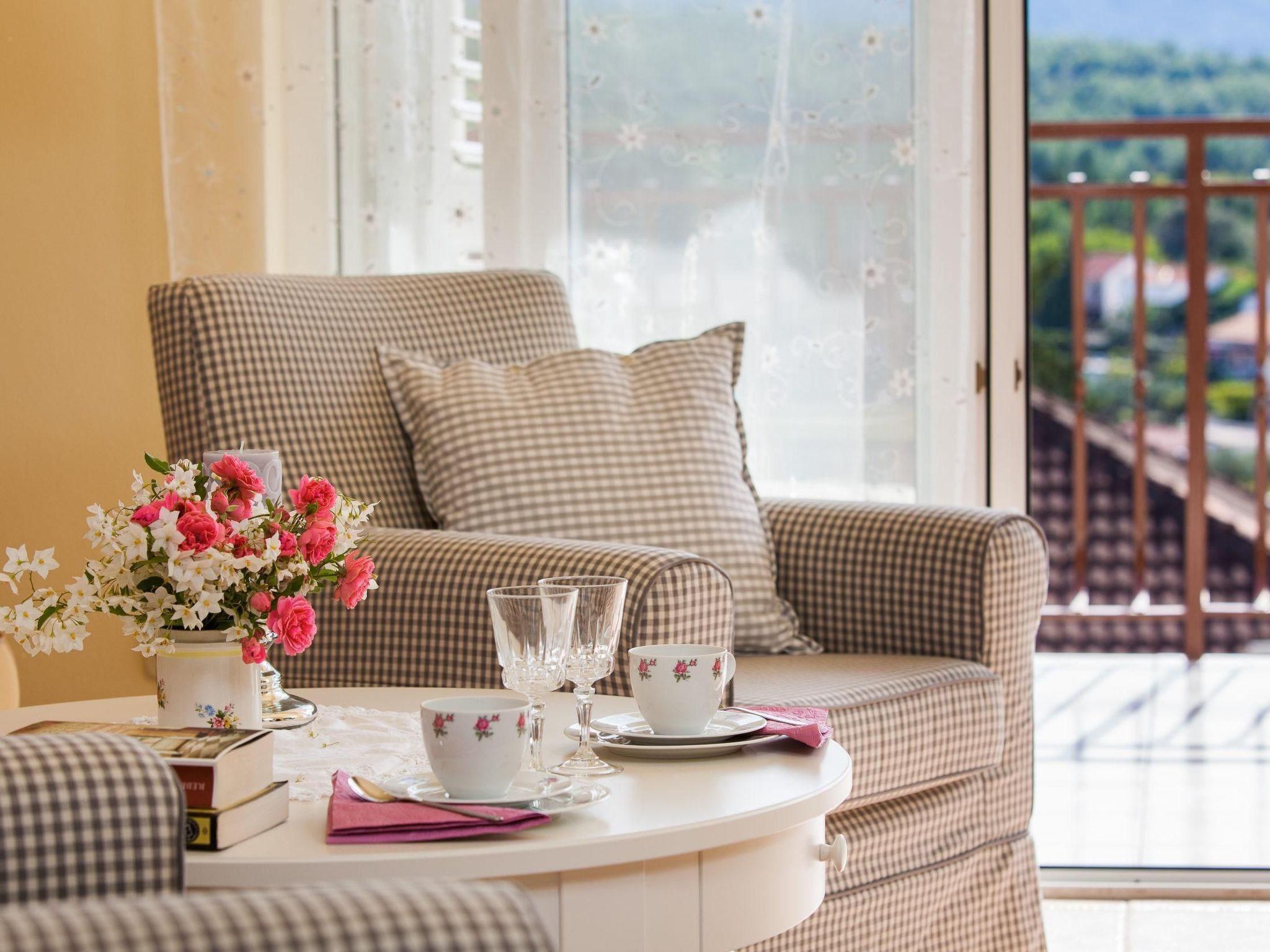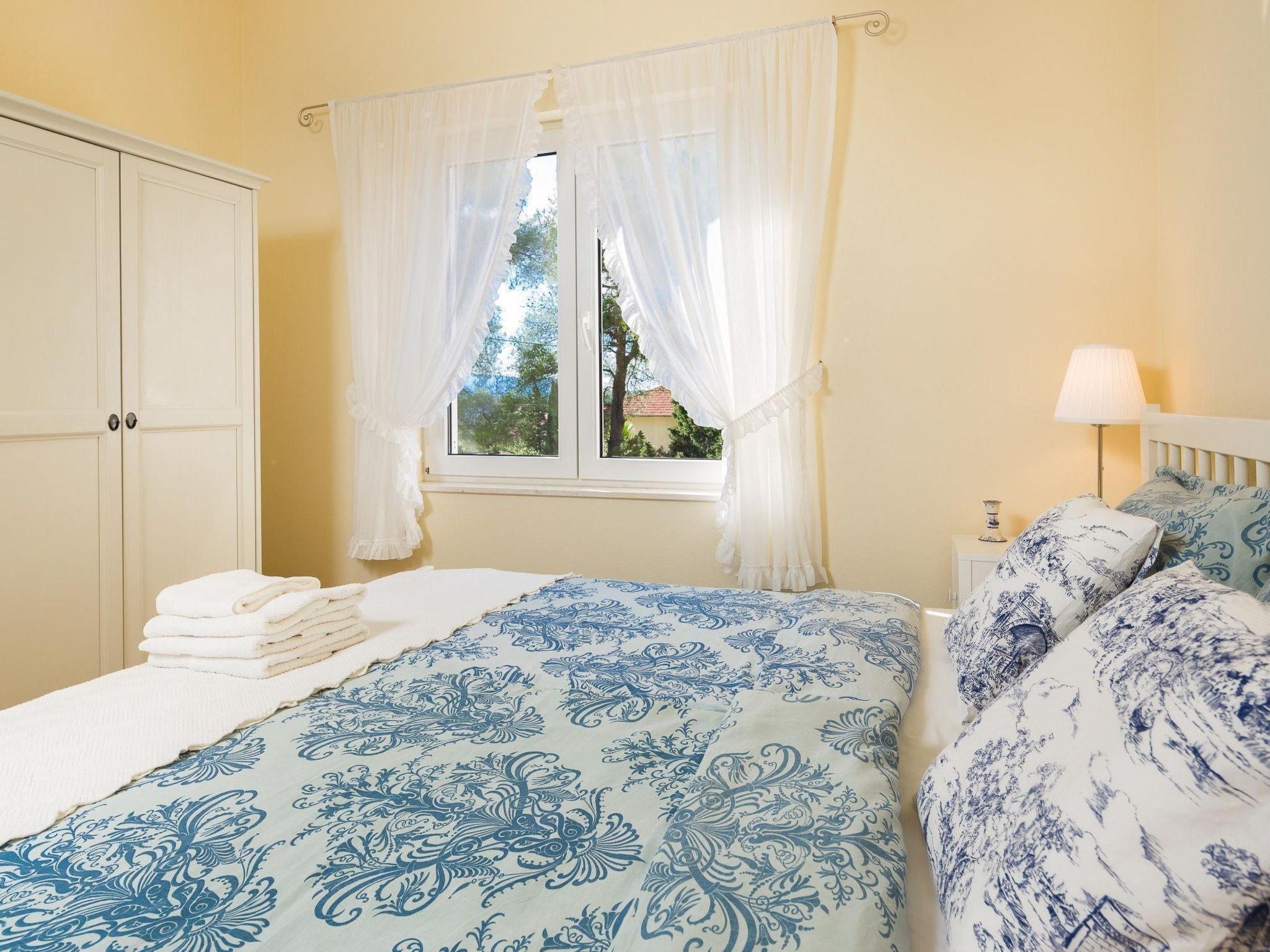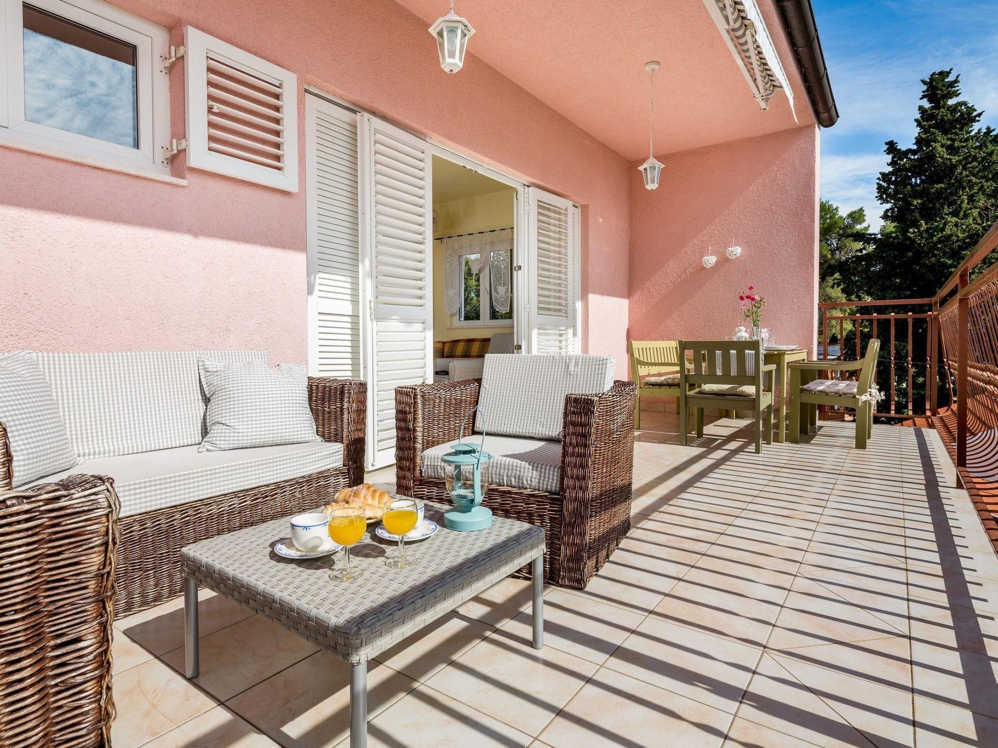 The flat occupies the entire top floor of the villa, so you can fully enjoy your privacy as you are the only guests in the house. The spacious flat has a separate entrance and is suitable for 2 - 4 people. The comfortable flat consists of two double bedrooms, a spacious, airy living room with a sea view and a view of the pine forest, a large, fully equipped kitchen with a cosy dining area, a bathroom with a bathtub and a guest WC. One of the bedrooms and the living room lead directly onto the beautiful terrace. The flat also has a small library with a book for every taste in German, English and Croatian. As the hosts of the villa are authors themselves, you will also find their books in the library. Enjoy an undisturbed and unforgettable holiday in paradise.