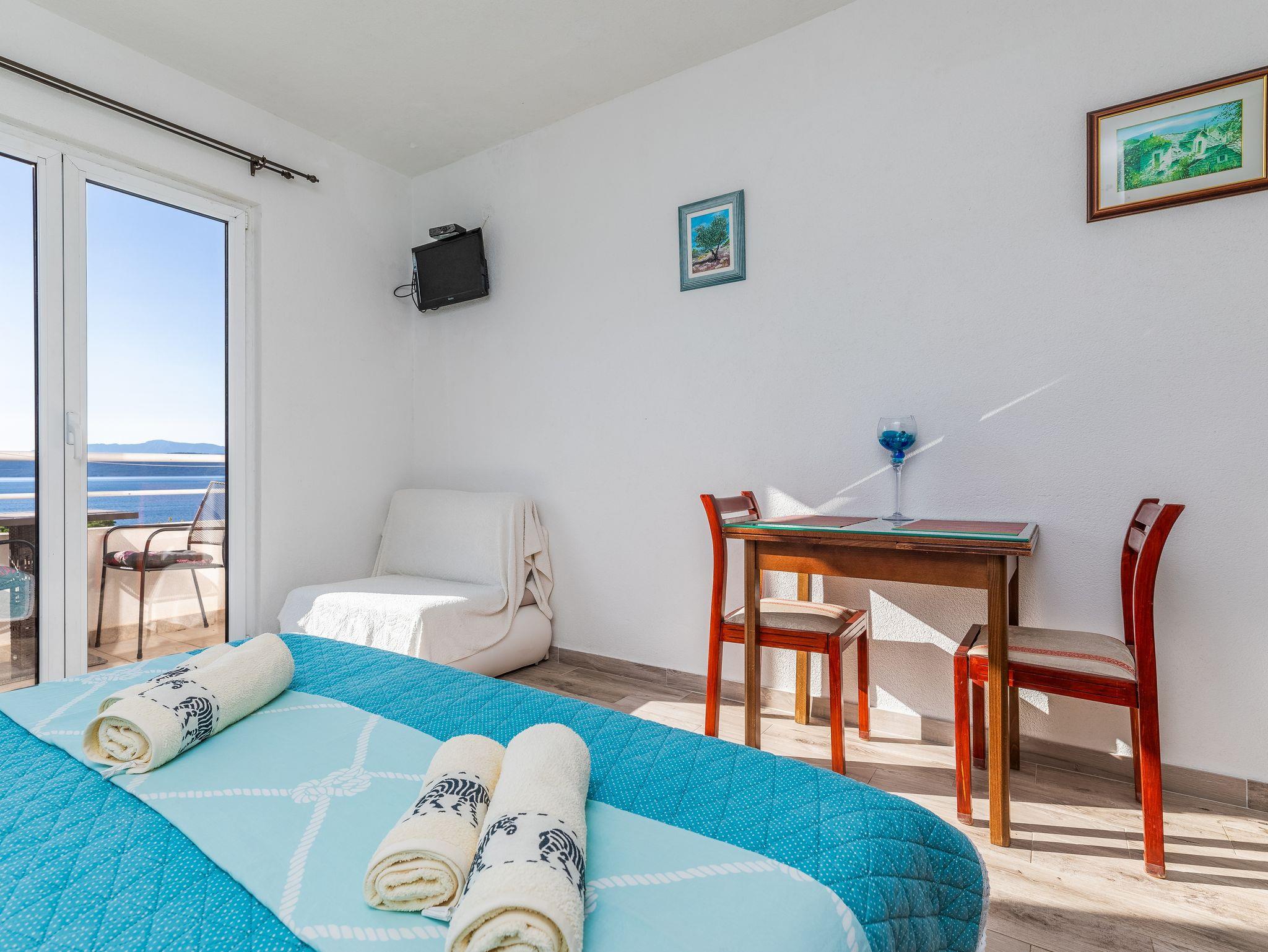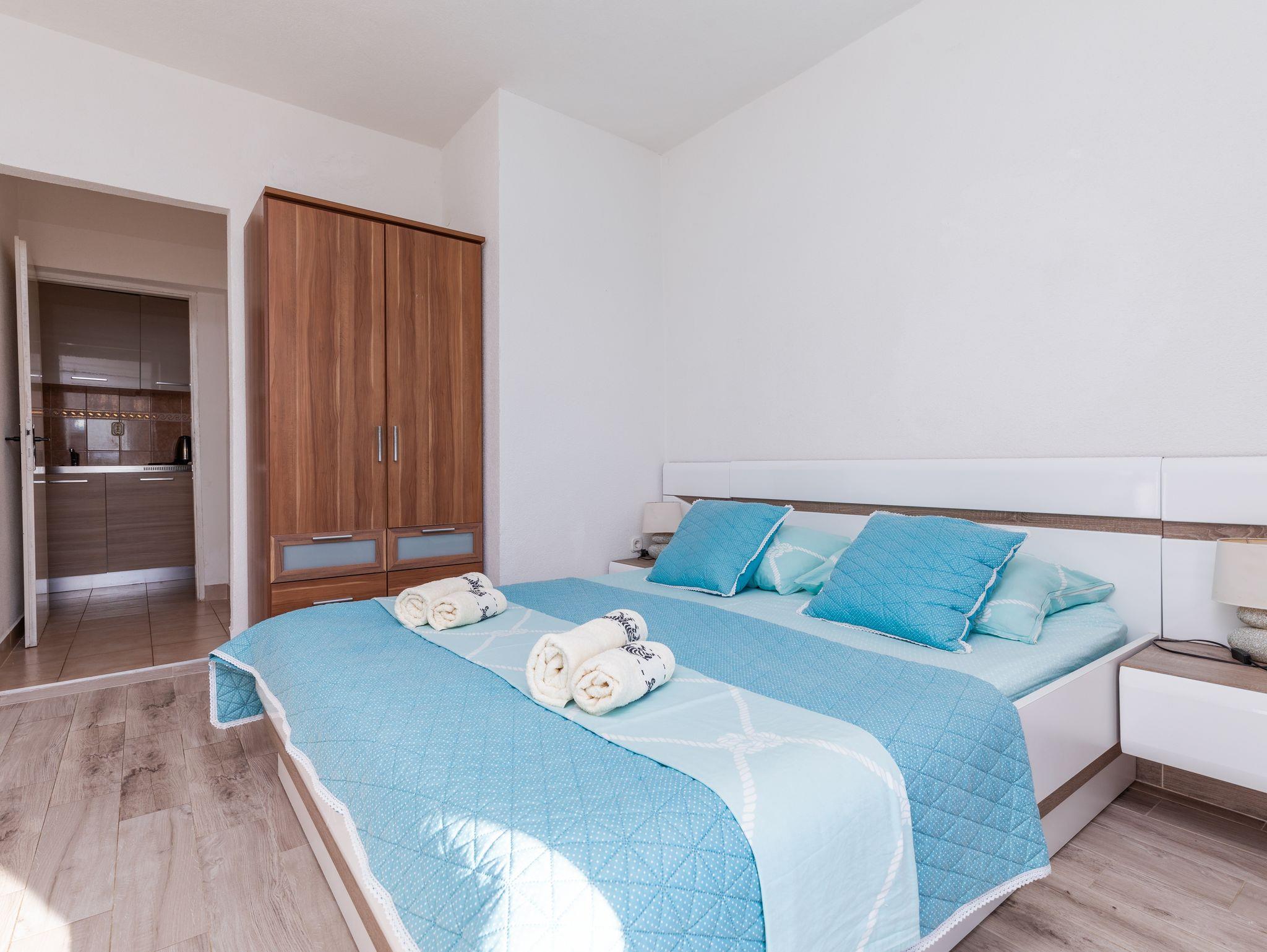 Studio bietet Platz für 2 Gäste. Die Betten sind in Schlafzimmern, die es 1 gibt, innerhalb einer Gesamtfläche von 20m2, angeordnet. Die Gäste haben einen eigenen Balkon zur Verfügung, auf der sie in warmen Sommernächten genießen können. Das Studio-Apartment bietet Meerblick. Es ist erlaubt, Speisen auf dem Gemeinschafts-Grill vorzubereiten. In der Unterkunftseinheit besteht die Möglichkeit des Mitbringens von Haustieren gegen Aufpreis. IM PREIS INBEGRIFFEN: Kurtaxe, Endreinigung, Klimatisierung, Parkplatz, Internet, Kinderbett, tragbarer Grill. VERBINDLICHE ZUSÄTZLICHE KOSTEN: Aufzahlung für Kurzaufenthalte (prozentualer Zuschlag pro Nächtigungsanzahl: 30% - 1, 20% - 2, 10% - 3). UNVERBINDLICHE ZUSÄTZLICHE KOSTEN: Haustiere (5,00 € pro Nacht). Die Verfügbarkeit zusätzlicher Dienstleistungen in Ihrem reservierten Termin und die Preise derselben (falls nicht aufgeführt) müssen im Voraus überprüft werden. Zusätzliche Dienstleistungen die in der Zahlungsaufforderung nicht aufgeführt sind werden direkt beim Vermieter bezahlt, angenommen der Gast nutzt auch diese. Ermäßigung auf den Grundpreis: Gratistag 14=13 (bei einem Aufenthalt von 14 Tagen oder mehr erhalten Sie einen Gratistag für den Aufenthalt bis 31.12.26).