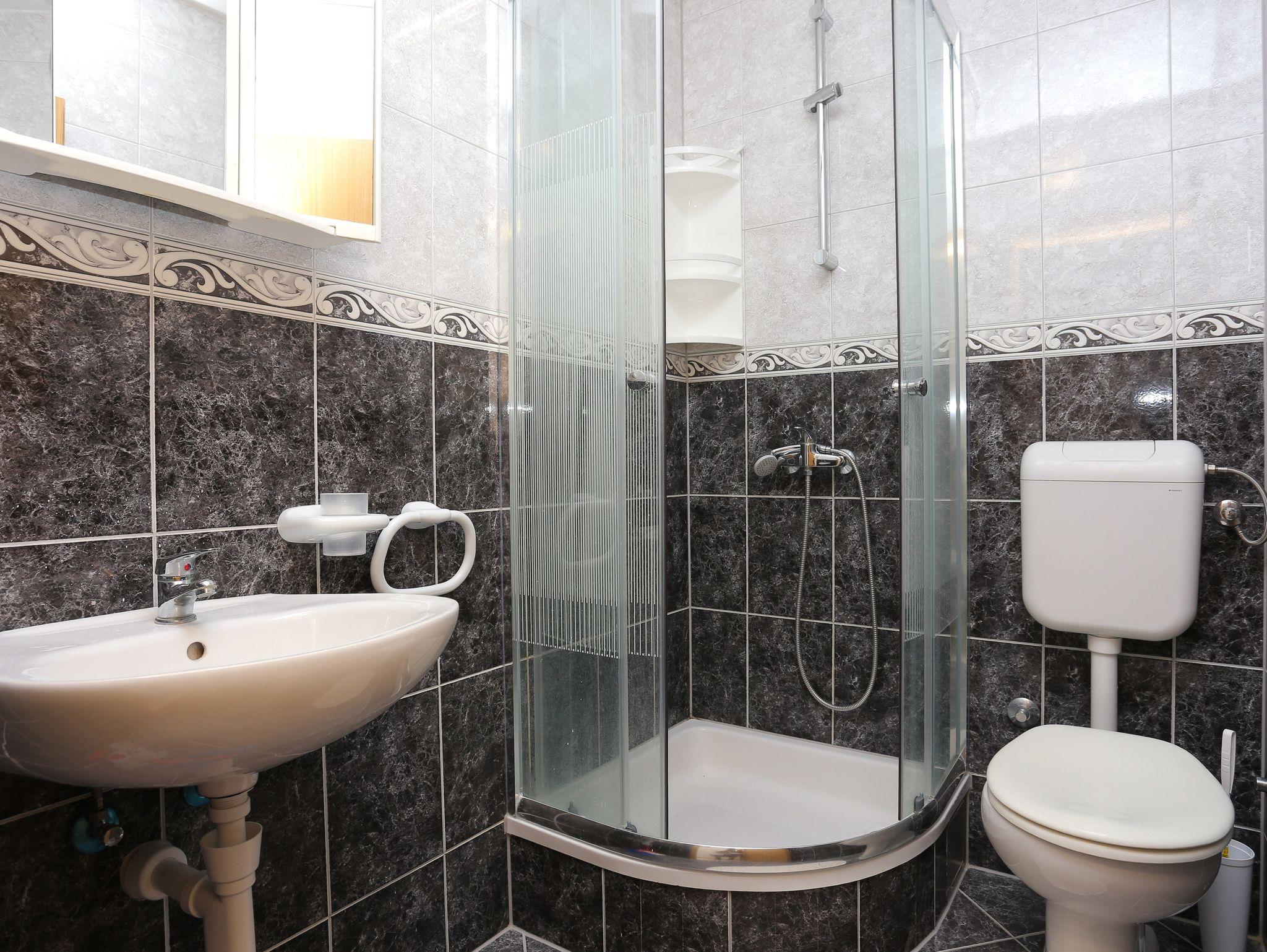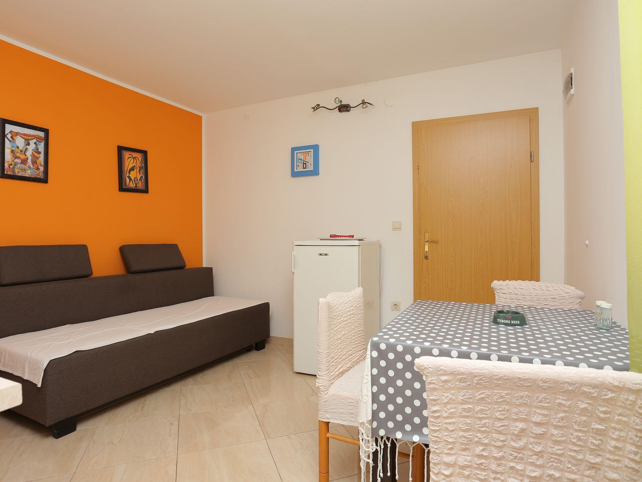 Ferienwohnung bietet Platz für 4 Gäste. Die Betten sind in Schlafzimmern, die es 1 gibt, innerhalb einer Gesamtfläche von 29m2, angeordnet. Die Gäste haben einen eigenen Balkon zur Verfügung, auf der sie in warmen Sommernächten genießen können. Das Apartment bietet Meerblick. Es ist erlaubt, Speisen auf dem Gemeinschafts-Grill vorzubereiten. IM PREIS INBEGRIFFEN: Kurtaxe, Endreinigung, Klimatisierung, Parkplatz, Internet, Föhn, 1 Bett für Kinder (im Preis enthalten). VERBINDLICHE ZUSÄTZLICHE KOSTEN: Aufzahlung für Kurzaufenthalte (prozentualer Zuschlag pro Nächtigungsanzahl: 30% - 1, 20% - 2, 10% - 3). Die Verfügbarkeit zusätzlicher Dienstleistungen in Ihrem reservierten Termin und die Preise derselben (falls nicht aufgeführt) müssen im Voraus überprüft werden. Zusätzliche Dienstleistungen die in der Zahlungsaufforderung nicht aufgeführt sind werden direkt beim Vermieter bezahlt, angenommen der Gast nutzt auch diese. Ermäßigung auf den Grundpreis: Gratistag 14=13 (bei einem Aufenthalt von 14 Tagen oder mehr erhalten Sie einen Gratistag für den Aufenthalt bis 31.12.26).