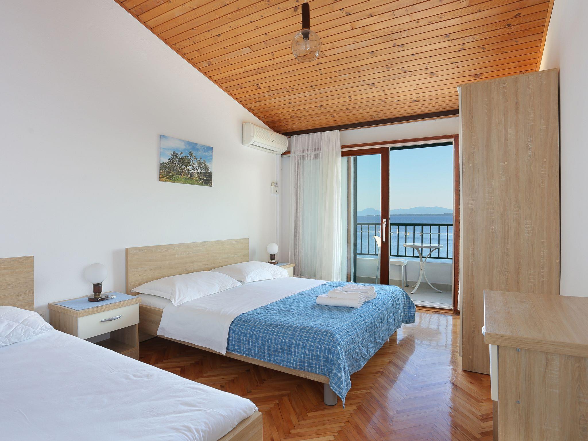 Ferienwohnung bietet Platz für 9 Gäste. Die Betten sind in Schlafzimmern, die es 3 gibt, innerhalb einer Gesamtfläche von 77m2, angeordnet. Die Gäste haben einen eigenen Balkon zur Verfügung, auf der sie in warmen Sommernächten genießen können. Das Apartment bietet Meerblick. Es ist erlaubt, Speisen auf dem Gemeinschafts-Grill vorzubereiten. IM PREIS INBEGRIFFEN: Kurtaxe, Endreinigung, Klimatisierung, Parkplatz, Internet, Kinderbett. VERBINDLICHE ZUSÄTZLICHE KOSTEN: Aufzahlung für Kurzaufenthalte (prozentualer Zuschlag pro Nächtigungsanzahl: 30% - 1, 20% - 2, 10% - 3). UNVERBINDLICHE ZUSÄTZLICHE KOSTEN: Zusatzbett (8,00 € pro Nacht). Die Verfügbarkeit zusätzlicher Dienstleistungen in Ihrem reservierten Termin und die Preise derselben (falls nicht aufgeführt) müssen im Voraus überprüft werden. Zusätzliche Dienstleistungen die in der Zahlungsaufforderung nicht aufgeführt sind werden direkt beim Vermieter bezahlt, angenommen der Gast nutzt auch diese.