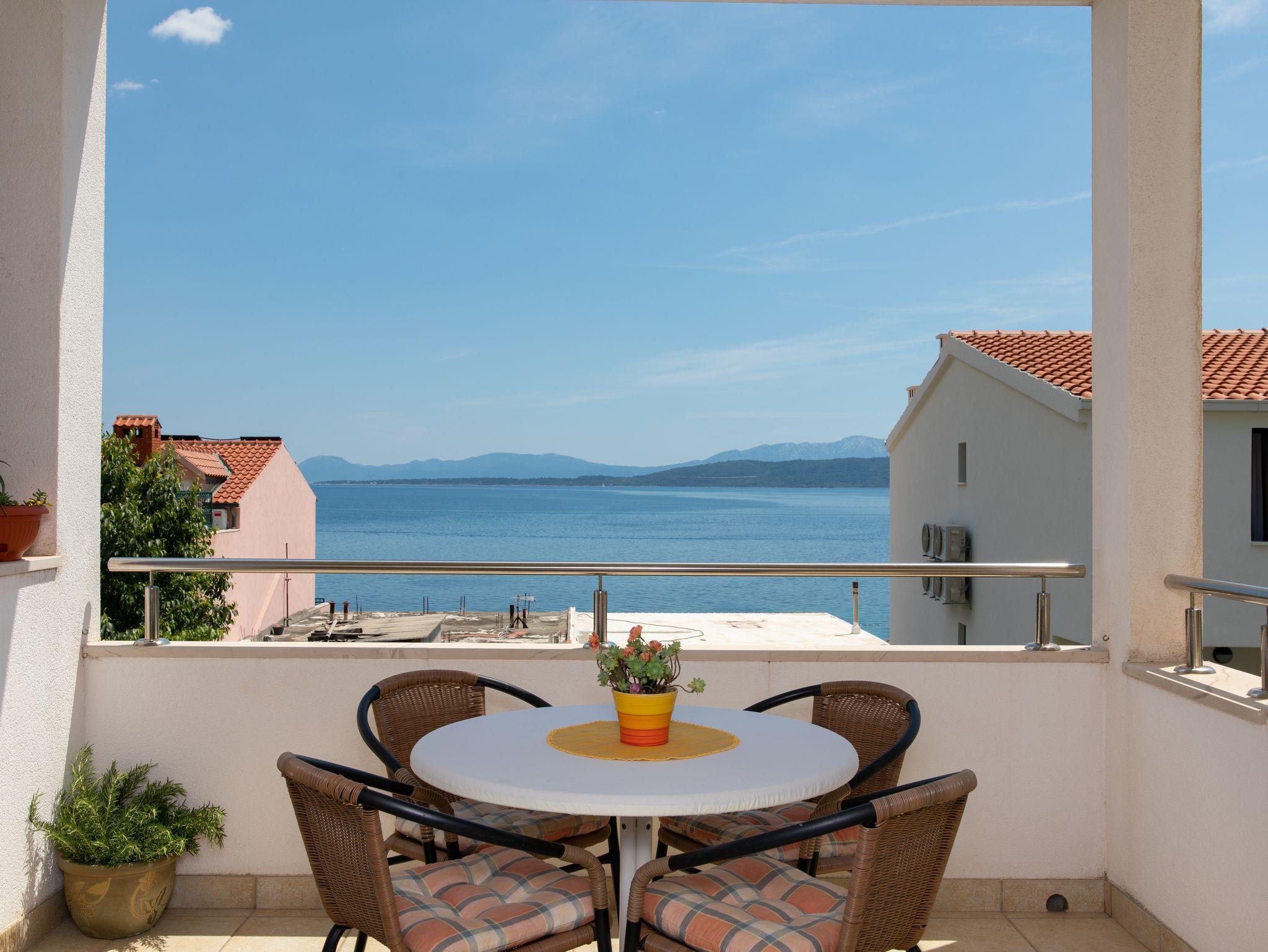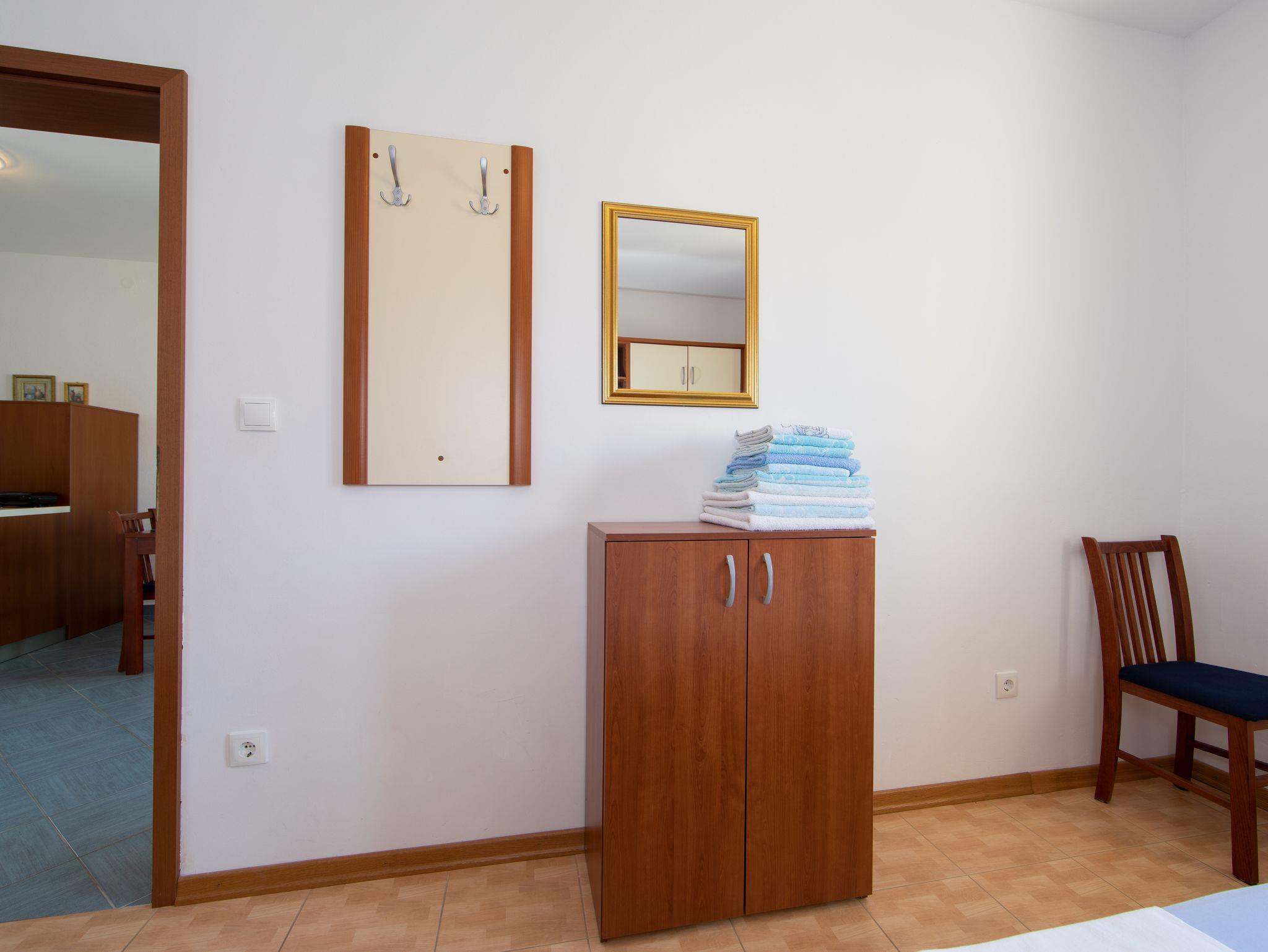 Ferienwohnung bietet Platz für 5 Gäste. Die Betten sind in Schlafzimmern, die es 1 gibt, und in Wohnzimmer, innerhalb einer Gesamtfläche von 42m2, angeordnet. Die Gäste haben eine eigene Terrasse zur Verfügung, auf der sie in warmen Sommernächten genießen können. Das Apartment bietet Meerblick. IM PREIS INBEGRIFFEN: Kurtaxe, Endreinigung, Klimatisierung, Parkplatz, Internet, Kinderbett. VERBINDLICHE ZUSÄTZLICHE KOSTEN: Aufzahlung für Kurzaufenthalte (prozentualer Zuschlag pro Nächtigungsanzahl: 30% - 1, 20% - 2, 10% - 3). Die Verfügbarkeit zusätzlicher Dienstleistungen in Ihrem reservierten Termin und die Preise derselben (falls nicht aufgeführt) müssen im Voraus überprüft werden. Zusätzliche Dienstleistungen die in der Zahlungsaufforderung nicht aufgeführt sind werden direkt beim Vermieter bezahlt, angenommen der Gast nutzt auch diese.