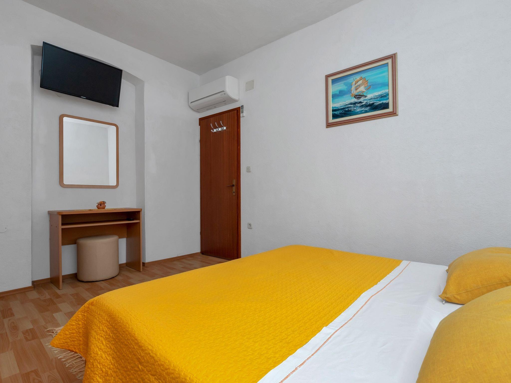 Ferienwohnung bietet Platz für 6 Gäste. Die Betten sind in Schlafzimmern, die es 3 gibt, innerhalb einer Gesamtfläche von 53m2, angeordnet. Die Gäste haben einen eigenen Balkon zur Verfügung, auf der sie in warmen Sommernächten genießen können. Das Apartment bietet Meerblick. Es ist erlaubt, Speisen auf dem Gemeinschafts-Grill vorzubereiten. Räume der gebuchten Unterkunftseinheit werden nicht in eine Ganze verbunden. Unterkunftseinheit hat Räume, die von dem Rest der Einheit abgetrennt werden. In der gebuchten Unterkunftseinheit zahlt man am Ort ein Depositum ( der Preis ist an der Internetseite angeführt ). IM PREIS INBEGRIFFEN: Kurtaxe, Endreinigung, Klimatisierung, Parkplatz, Internet, Bügeleisen, Bügelbrett, Liegestühle. VERBINDLICHE ZUSÄTZLICHE KOSTEN: Kaution (150,00 € Einmalzahlung). UNVERBINDLICHE ZUSÄTZLICHE KOSTEN: Zusatzbett (15,00 € pro Nacht). Die Verfügbarkeit zusätzlicher Dienstleistungen in Ihrem reservierten Termin und die Preise derselben (falls nicht aufgeführt) müssen im Voraus überprüft werden. Zusätzliche Dienstleistungen die in der Zahlungsaufforderung nicht aufgeführt sind werden direkt beim Vermieter bezahlt, angenommen der Gast nutzt auch diese.