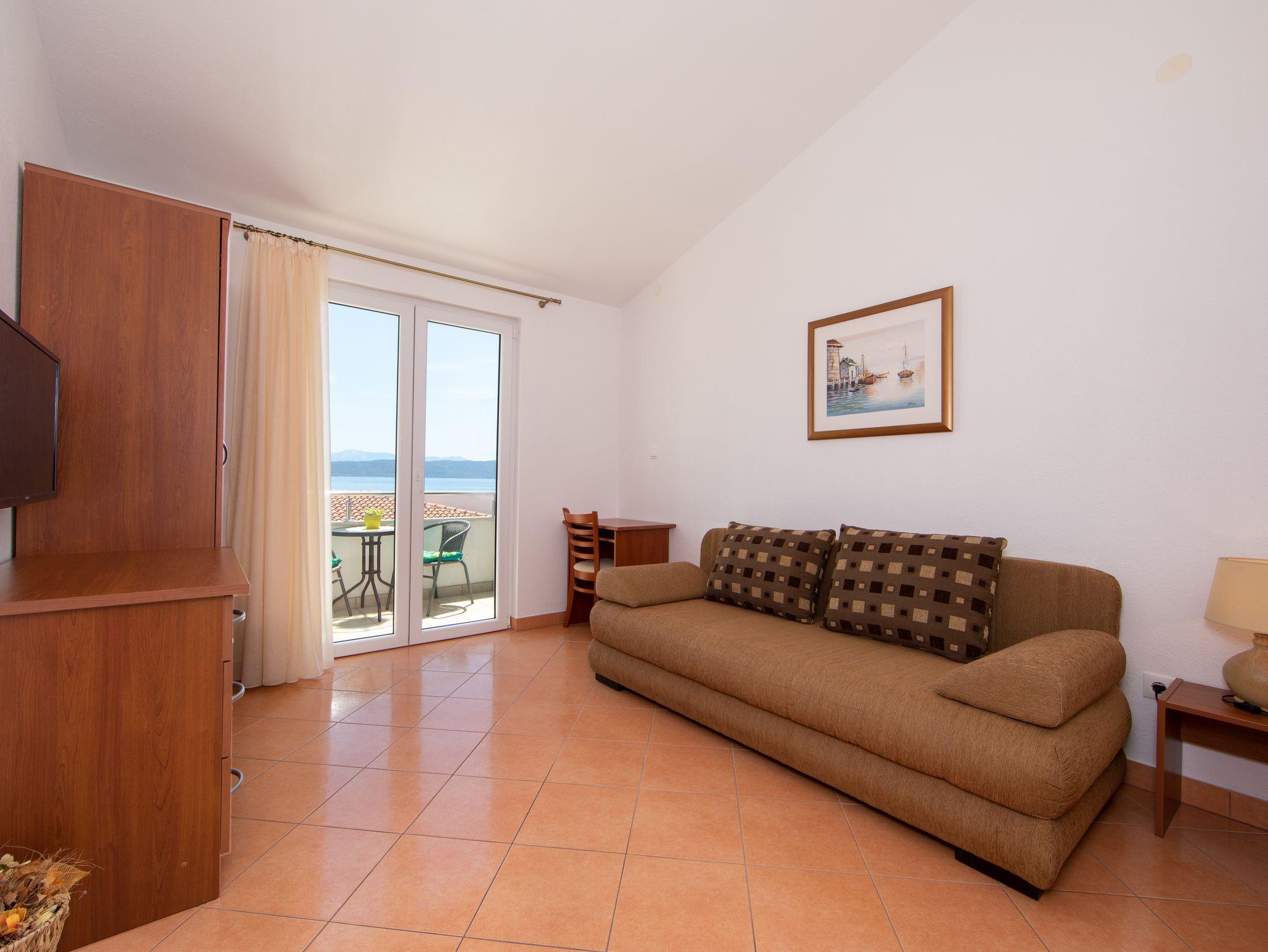 Ferienwohnung bietet Platz für 4 Gäste. Die Betten sind in Schlafzimmern, die es 1 gibt, und in Wohnzimmer, innerhalb einer Gesamtfläche von 50m2, angeordnet. Die Gäste haben eine eigene Terrasse zur Verfügung, auf der sie in warmen Sommernächten genießen können. Das Apartment bietet Meerblick. IM PREIS INBEGRIFFEN: Kurtaxe, Endreinigung, Klimatisierung, Parkplatz, Internet, Kinderbett. VERBINDLICHE ZUSÄTZLICHE KOSTEN: Aufzahlung für Kurzaufenthalte (prozentualer Zuschlag pro Nächtigungsanzahl: 30% - 1, 20% - 2, 10% - 3). Die Verfügbarkeit zusätzlicher Dienstleistungen in Ihrem reservierten Termin und die Preise derselben (falls nicht aufgeführt) müssen im Voraus überprüft werden. Zusätzliche Dienstleistungen die in der Zahlungsaufforderung nicht aufgeführt sind werden direkt beim Vermieter bezahlt, angenommen der Gast nutzt auch diese.