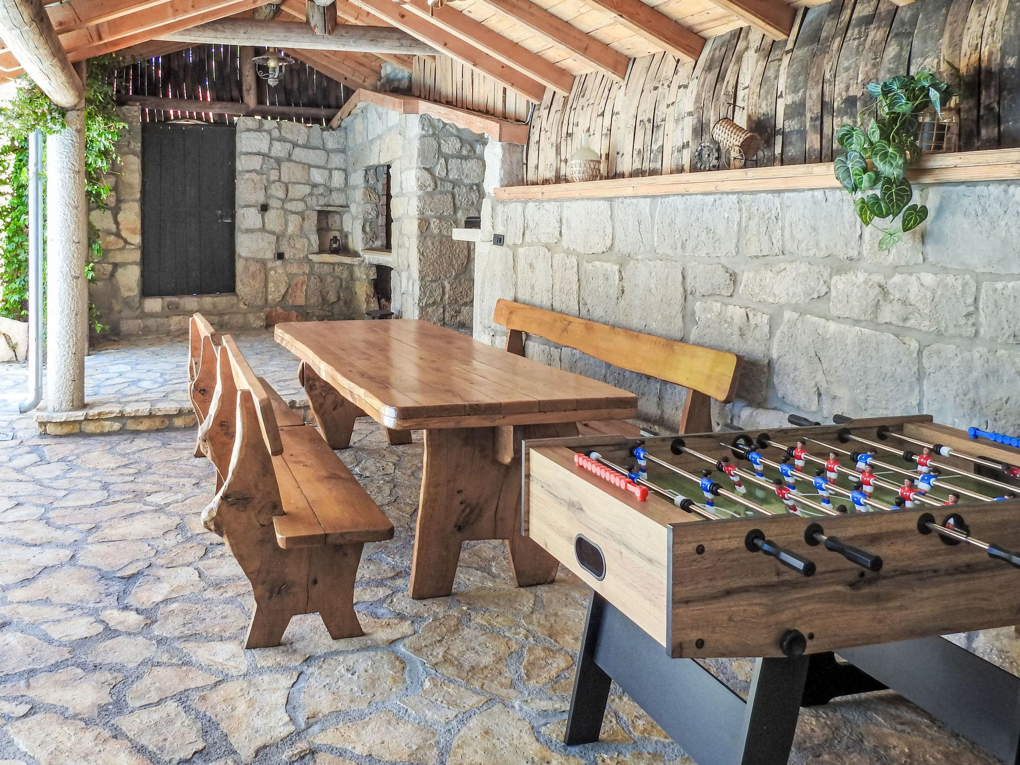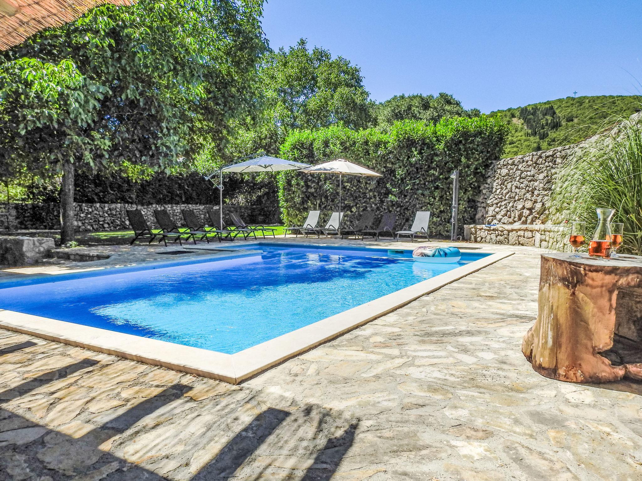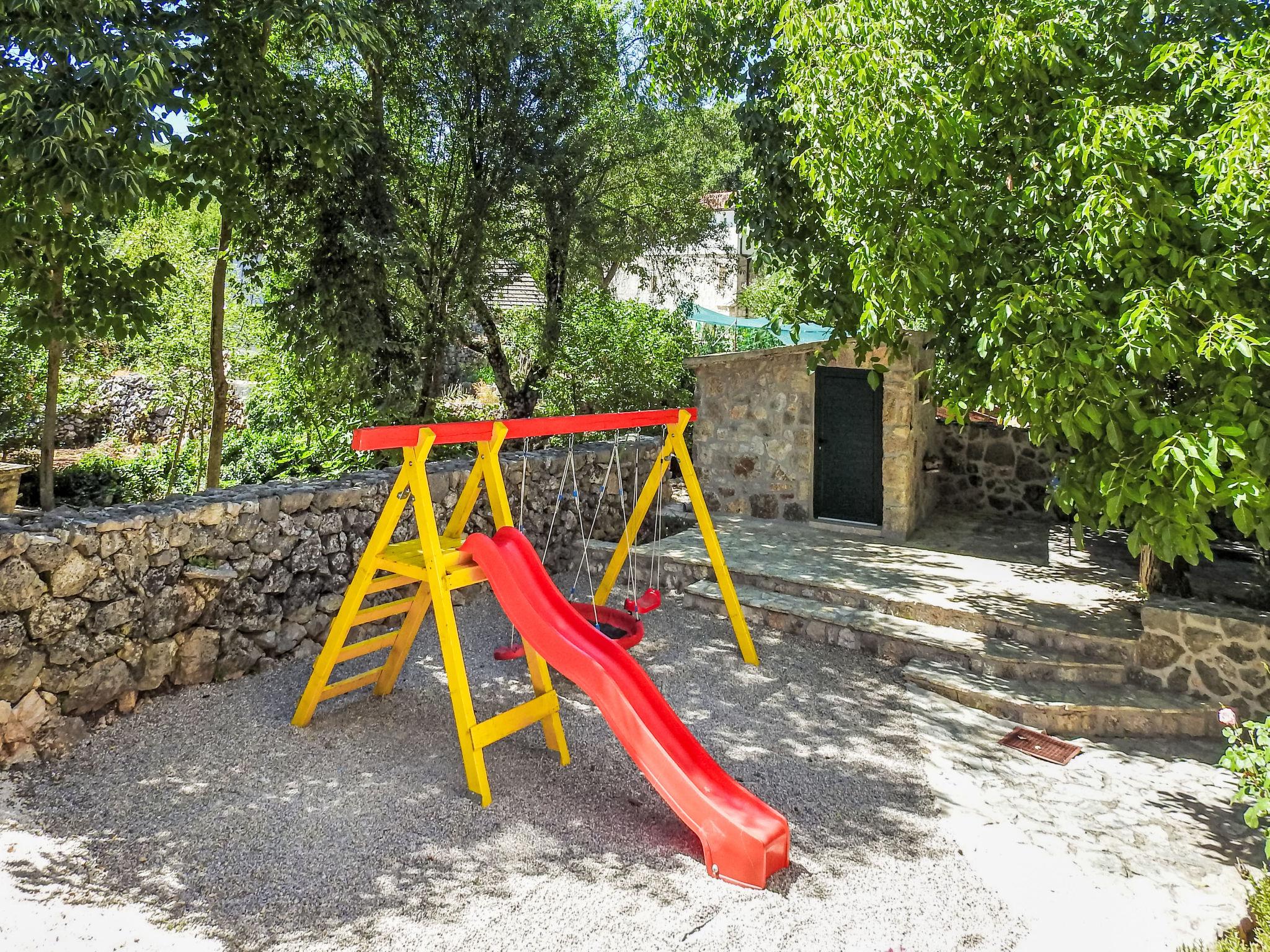 Single-family house "Markanovi Dvori", renovated in 2024. 8 km from the centre of Imotski, in a quiet position, 35 km from the sea, in the countryside. Private: property 1'500 m2 (fenced), garden with lawn and trees, swimming pool angular (8 x 5 m, depth 150 cm, seasonal availability: 01.Jun. - 01.Oct.) with internal staircase. Outdoor shower, table tennis, terrace (30 m2), garden furniture, barbecue, children's playground. In the house: internet access, table football. Parking (for 5 cars) at the house on the premises. Shop 800 m, restaurant 1 km, bus stop 7.2 km, pebble beach 35 km. Nearby attractions: Modro jezero 10 km.