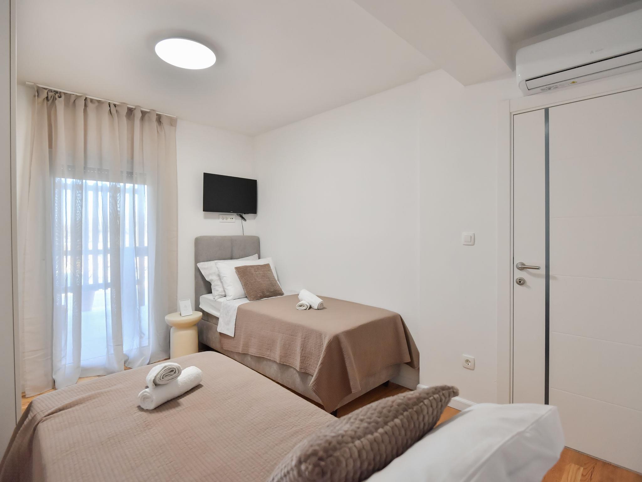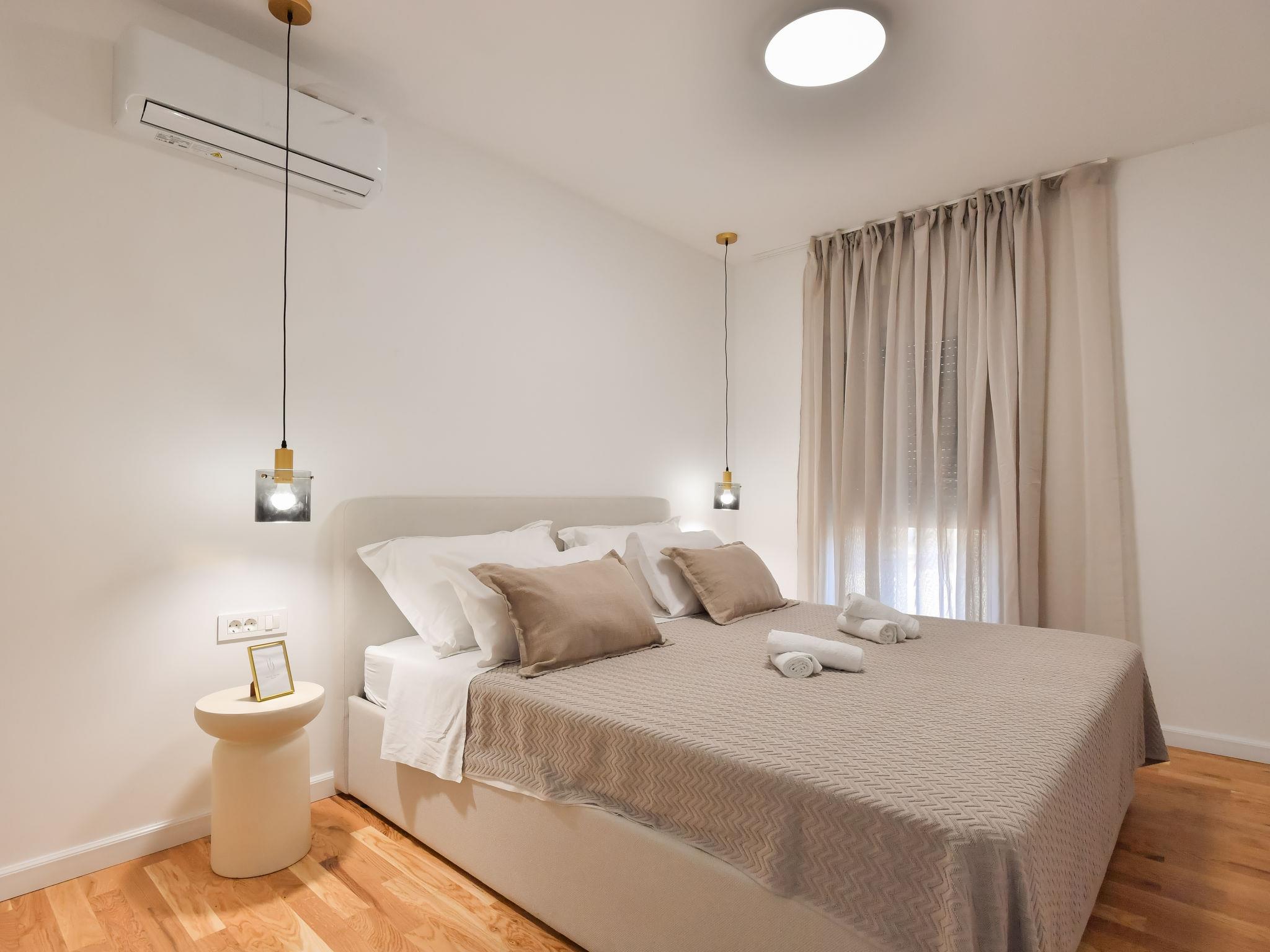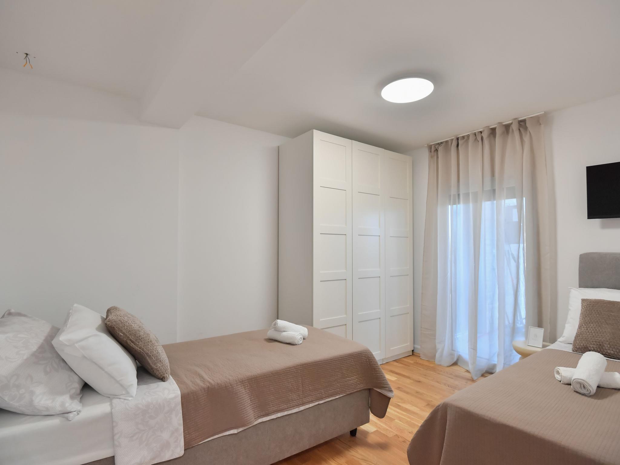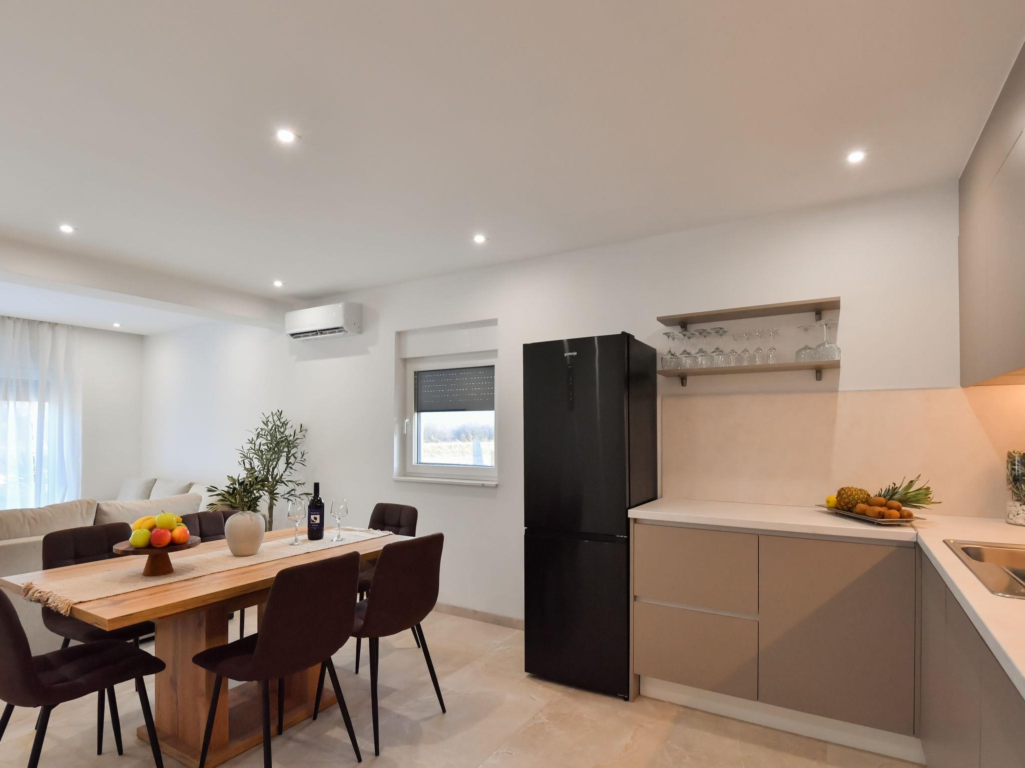 5-room house 150 m2, on the ground floor. Living/dining room with satellite TV (flat screen), air conditioning. Exit to the terrace. 3 rooms, each room with 1 french bed (160 cm, length 200 cm), shower/WC and satellite TV (flat screen), air conditioning. 1 room with 2 beds (90 cm, length 200 cm), satellite TV (flat screen). Open kitchen (oven, dishwasher, 4 ceramic glass hob hotplates, toaster, kettle, microwave, freezer, electric coffee machine). No heating option. Terrace 8 m2, roofed. Terrace furniture. View of the swimming pool.