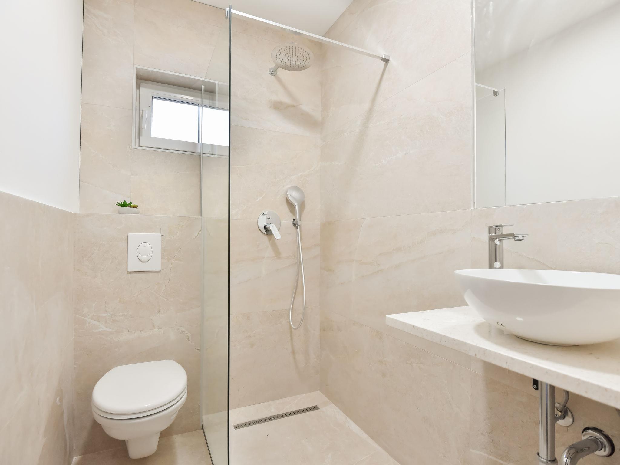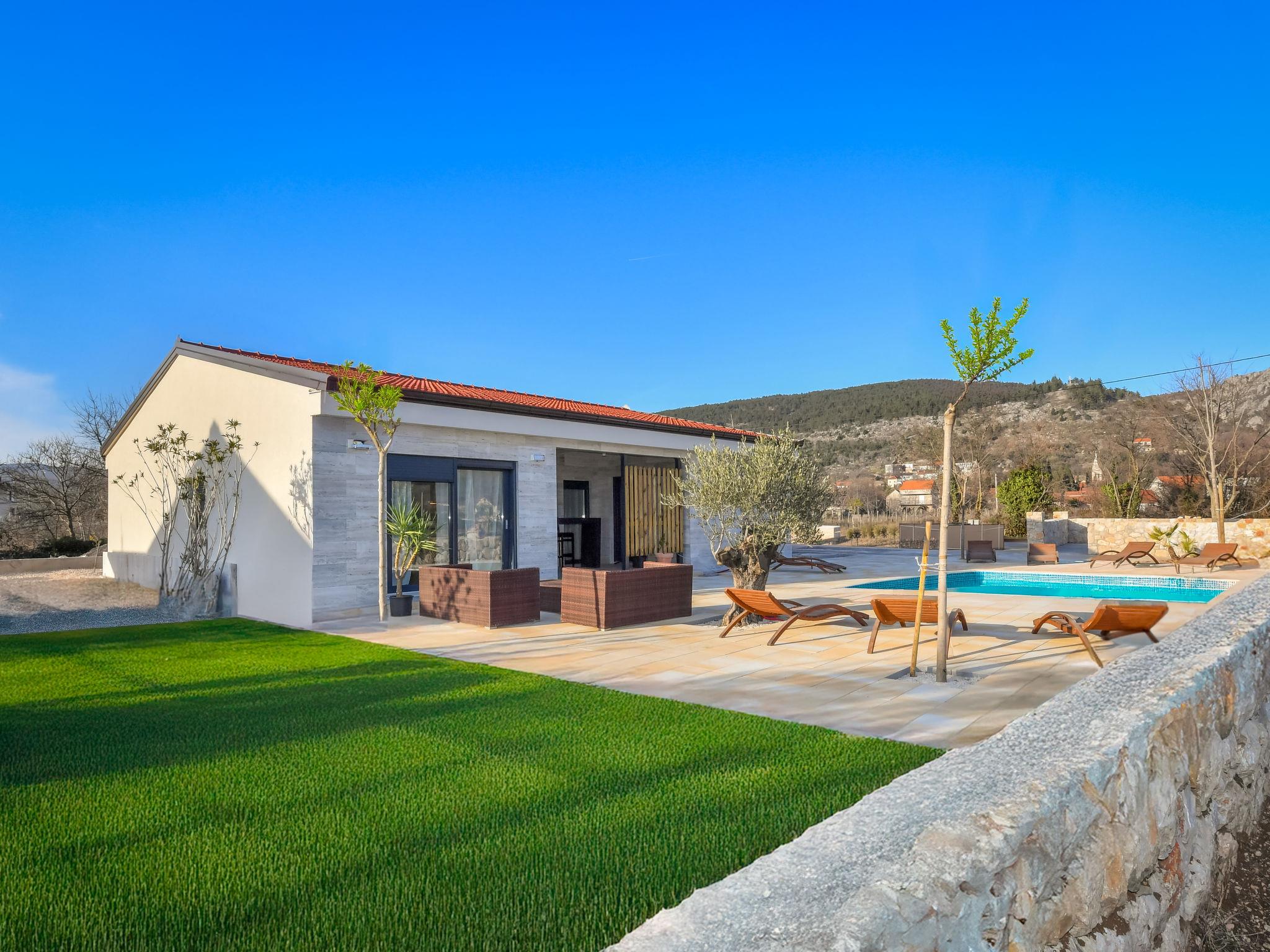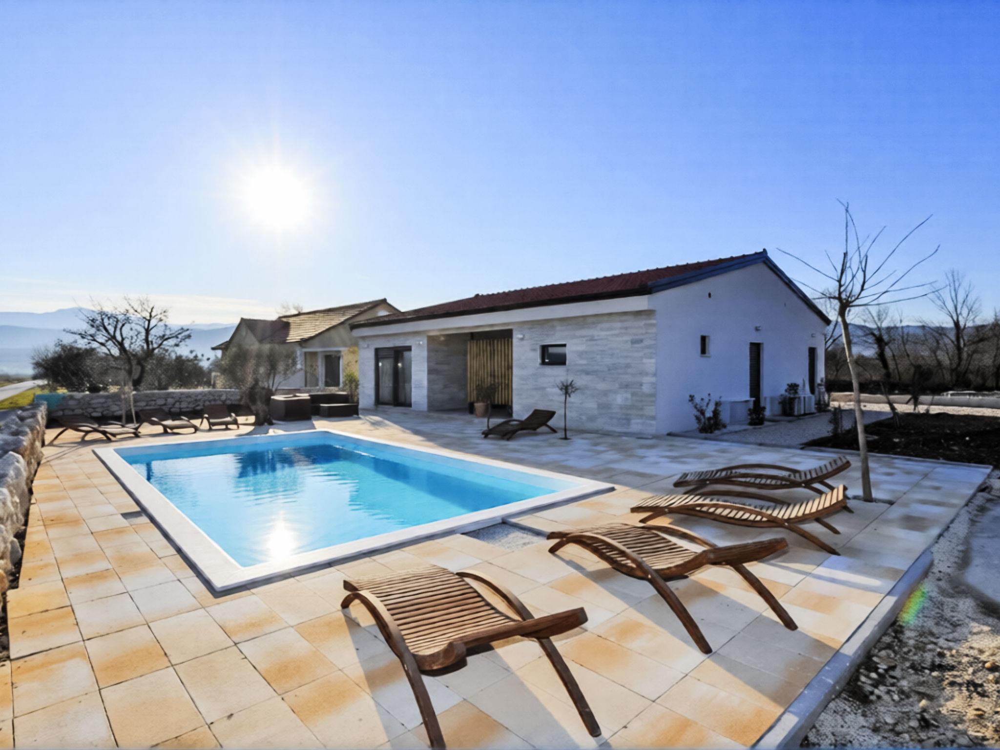 Donji Proložac 10 km from Imotski: Single-family house "Ivy". 2 km from the centre of Donji Proložac, in a quiet, sunny position, 30 km from the sea. Private: property 1'000 m2 with lawn 100 m2, swimming pool angular, heated (8 x 4 m, depth 150 cm, seasonal availability: 01.May. - 01.Oct.). Shower/WC in the pool area, outdoor shower, barbecue, pool maintenance by the owner/gardener. In the house: internet access, washing machine. Parking (for 3 cars) at the house on the premises. Shop 500 m, supermarket 8 km, restaurant 2 km, bus stop 3.6 km, pebble beach 30 km. Well-known lakes can easily be reached: Modro jezero 5 km. Please note: airfield 100 km from the property. Swimming pool with hydromassage.