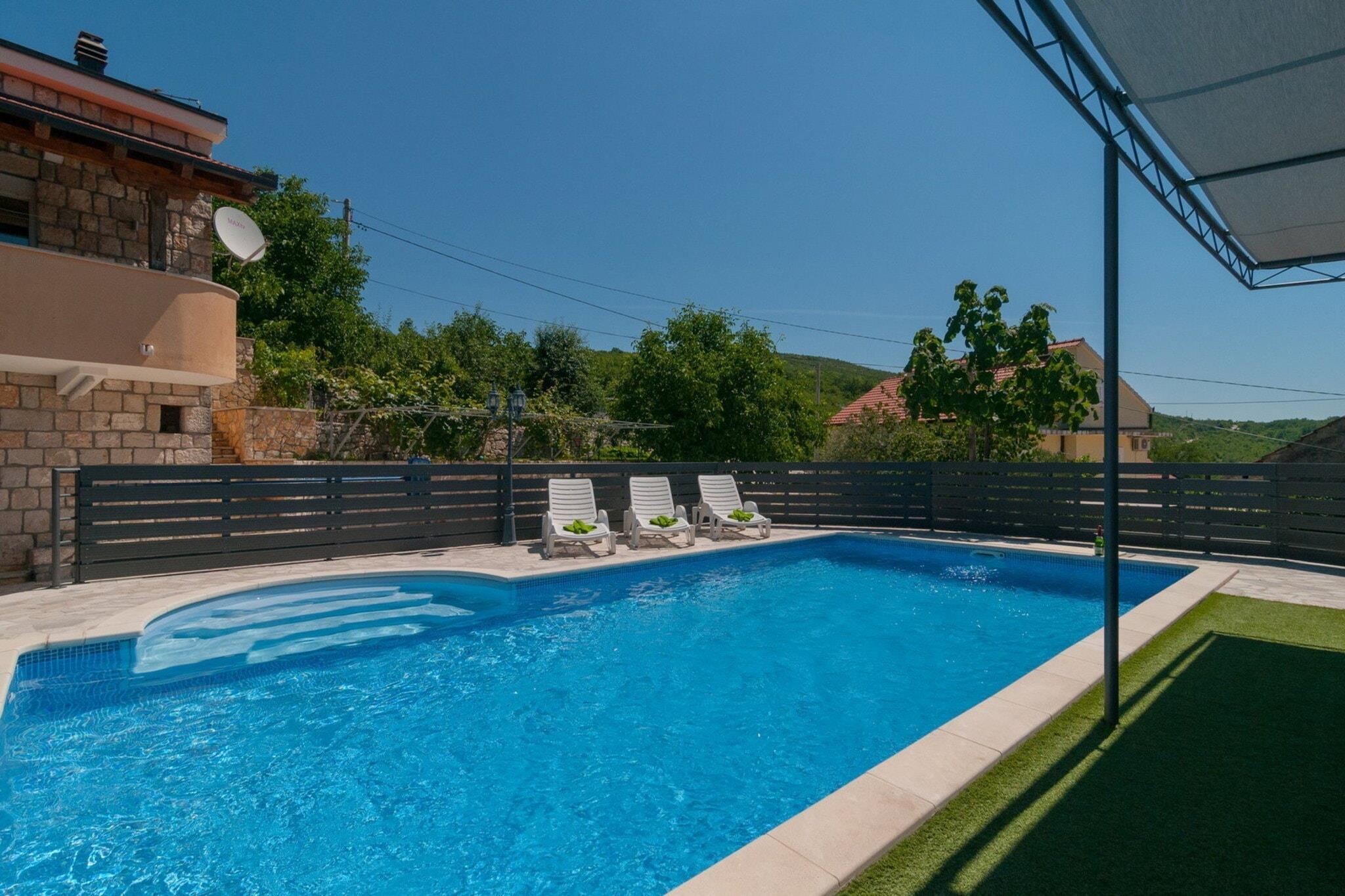 Villa Homeland in the Split-Dalmatia County, near the town of Imotski, Croatia, offers a luxurious stay in a scenic, secluded setting. This villa is well-suited for families or groups, with spacious rooms, a private pool, and outdoor lounge areas for relaxation. Villa Homeland provides easy access to attractions like the Blue and Red Lakes, two popular natural landmarks in the region. The villa typically includes amenities like air conditioning, free Wi-Fi, a full kitchen, and sometimes extras such as a BBQ area and a garden. Note: Pets are allowed with notice. Private parking, reservation is not required. Wi-Fi is available throughout the property. Baby cot is available on request. This five -bedroom can accommodate up to ten guests. It features a Internet enabled TV and is combined with a living room and kitchen. The private bathroom is equipped with a shower and toilet. Thanks to its excellent location, everything you'll need for your vacation is just a short walk away from the property. restaurants—15.00 km. The beach is 2.00 km away from the property. The airport is 100 km away from the property.