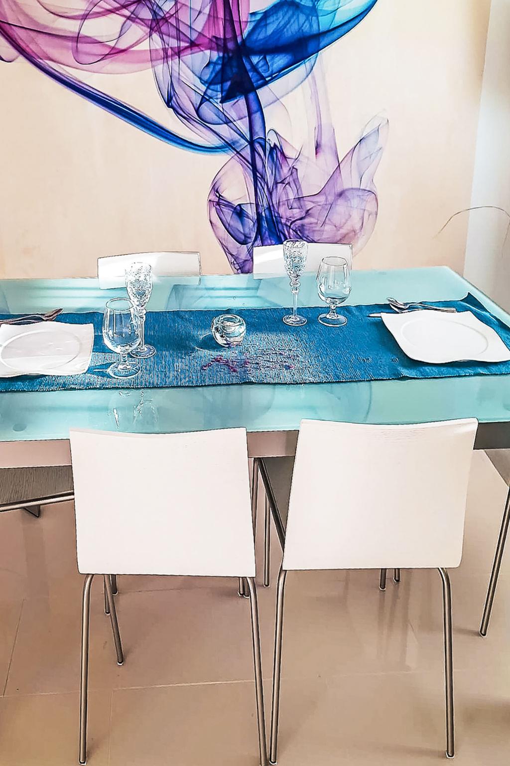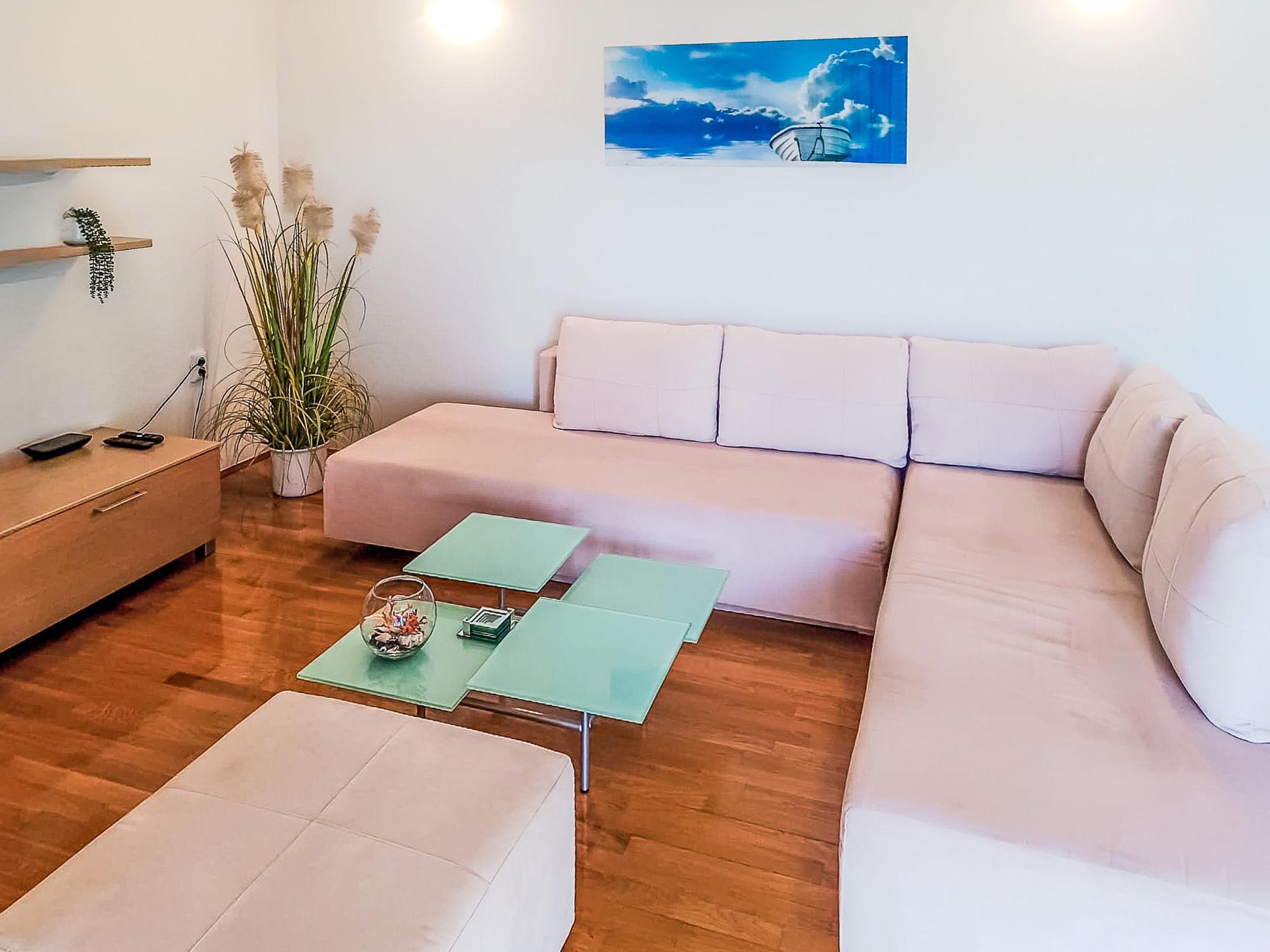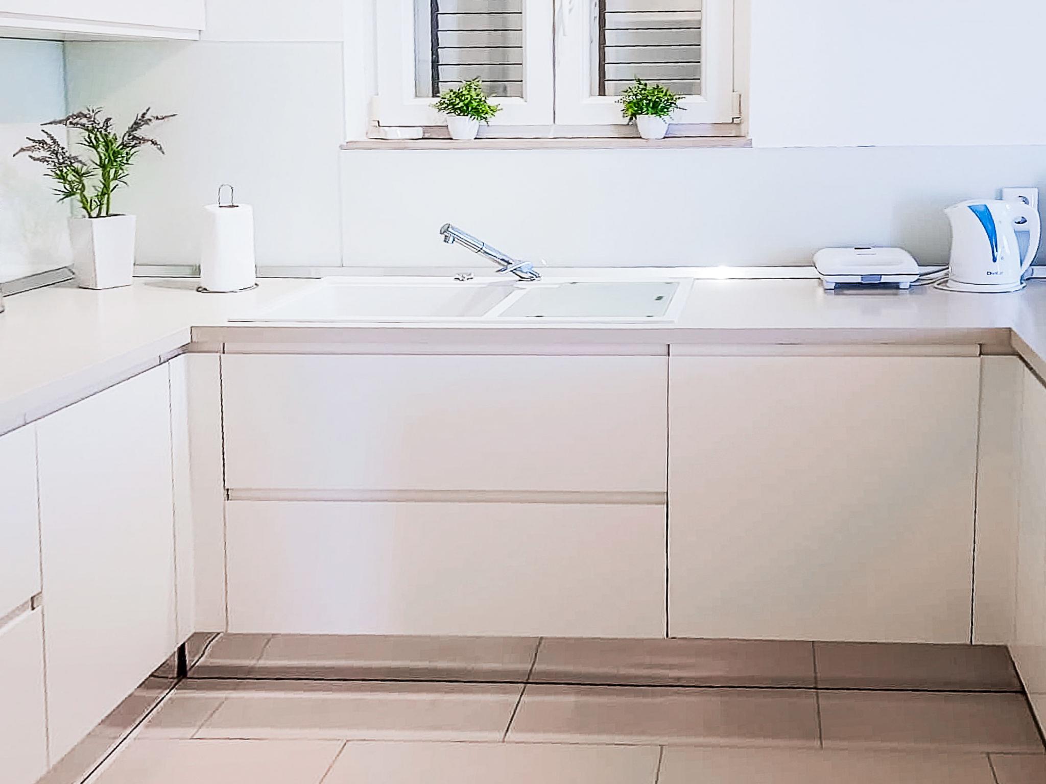 3-room apartment 140 m2 on 1st floor. Beautiful and tasteful furnishings: living/dining room with 1 sofabed (150 cm, length 200 cm), satellite TV and air conditioning. Exit to the balcony. 2 rooms, each room with 1 french bed (160 cm, length 200 cm). 1 room with 1 french bed (140 cm, length 200 cm), shower/WC. Open kitchen (oven, dishwasher, 4 ceramic glass hob hotplates, freezer, electric coffee machine). Shower/WC. Terrace furniture. Beautiful view of the sea.