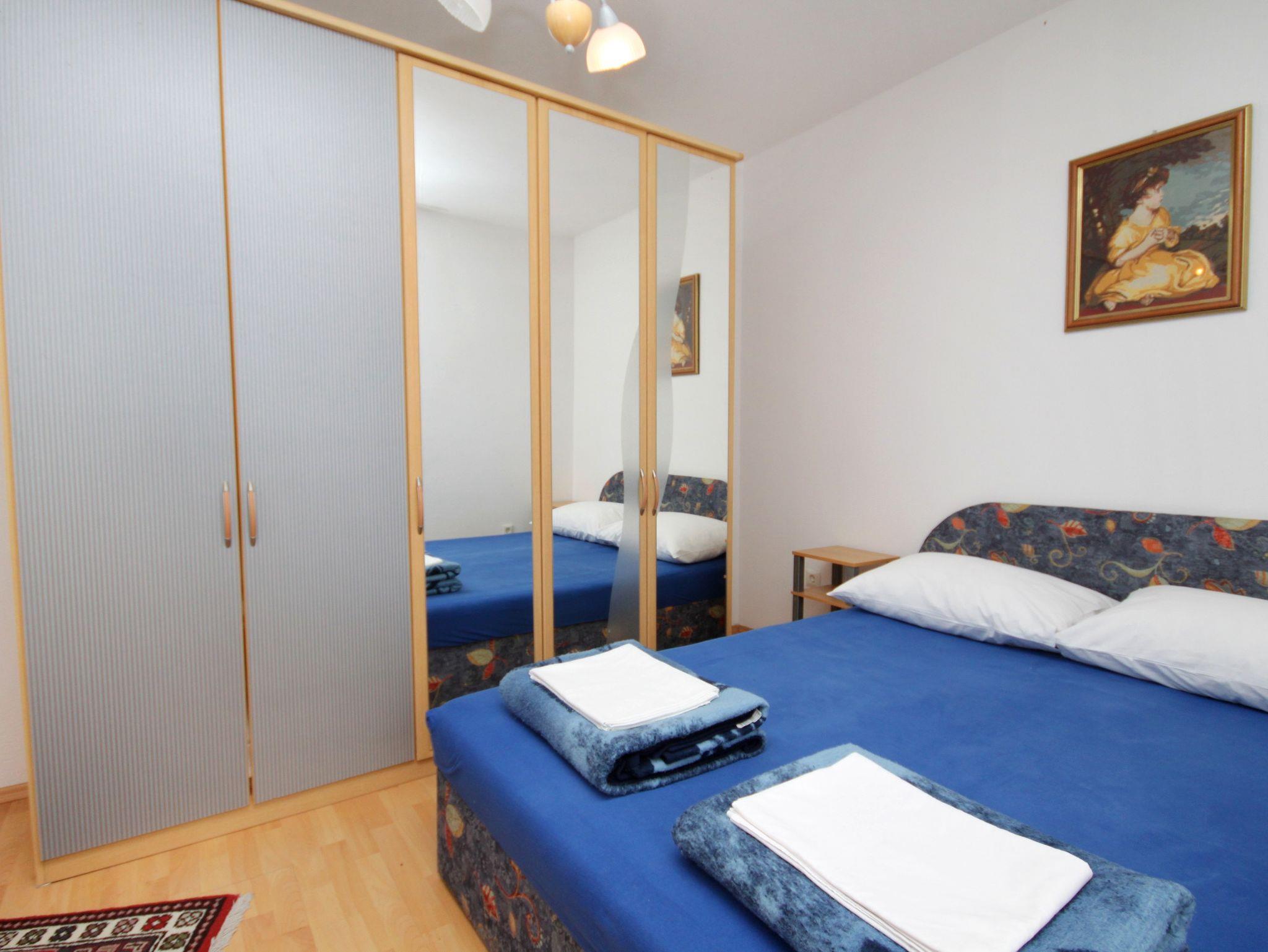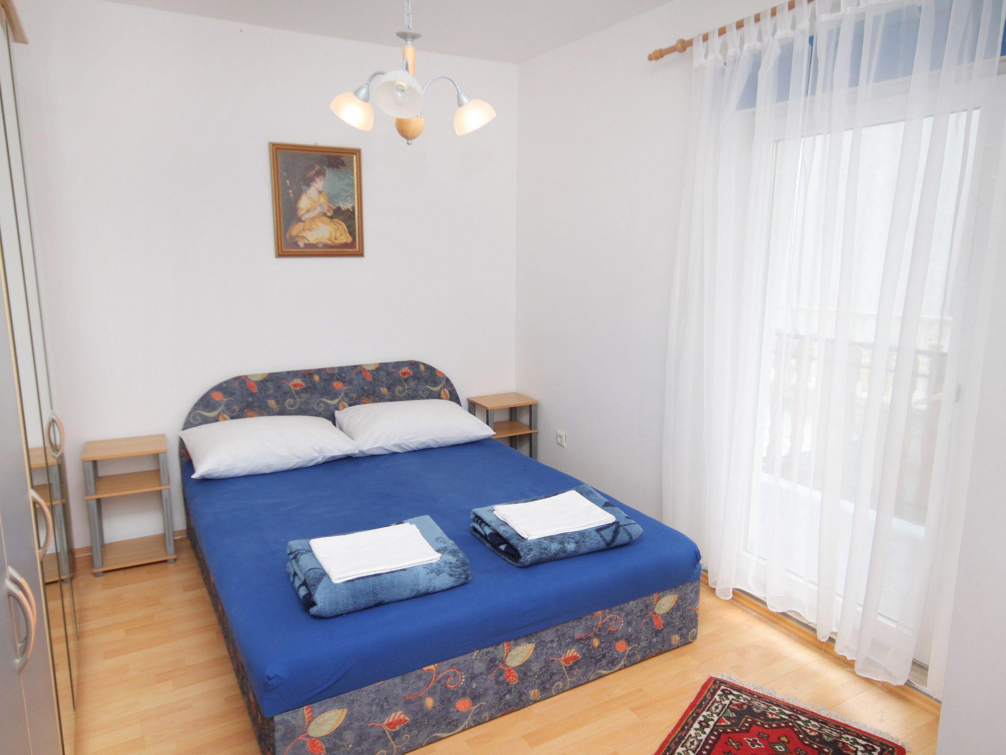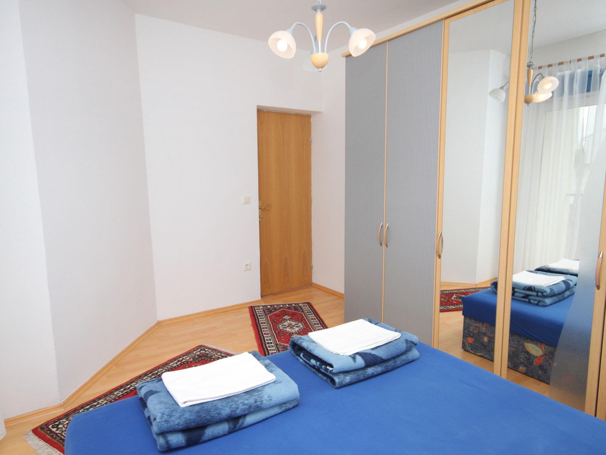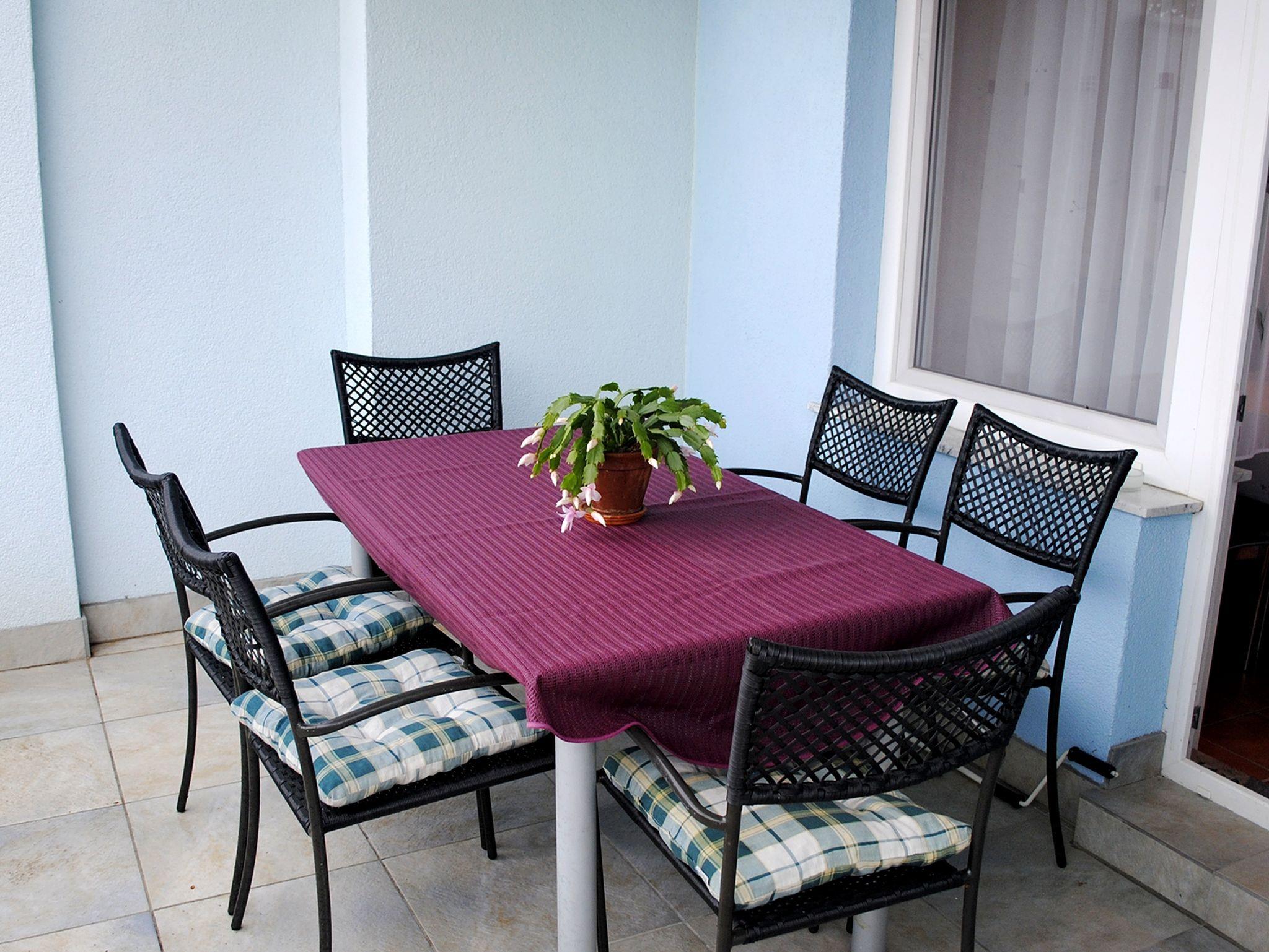 Ferienwohnung bietet Platz für 5 Gäste. Die Betten sind in Schlafzimmern, die es 2 gibt, innerhalb einer Gesamtfläche von 54m2, angeordnet. Die Gäste haben eine eigene Terrasse zur Verfügung, auf der sie in warmen Sommernächten genießen können. Das Apartment bietet Meerblick. Es ist erlaubt, Speisen auf dem Gemeinschafts-Grill vorzubereiten. IM PREIS INBEGRIFFEN: Kurtaxe, Endreinigung, Klimatisierung, Parkplatz, Internet, Fahrrad, Kinderbett, Bügeleisen, Bügelbrett, tragbarer Grill, 1 Bett für Kinder (im Preis enthalten). VERBINDLICHE ZUSÄTZLICHE KOSTEN: Aufzahlung für Kurzaufenthalte (prozentualer Zuschlag pro Nächtigungsanzahl: 30% - 1, 20% - 2, 10% - 3). UNVERBINDLICHE ZUSÄTZLICHE KOSTEN: Wäschewaschen (5,00 € Waschen). Die Verfügbarkeit zusätzlicher Dienstleistungen in Ihrem reservierten Termin und die Preise derselben (falls nicht aufgeführt) müssen im Voraus überprüft werden. Zusätzliche Dienstleistungen die in der Zahlungsaufforderung nicht aufgeführt sind werden direkt beim Vermieter bezahlt, angenommen der Gast nutzt auch diese.