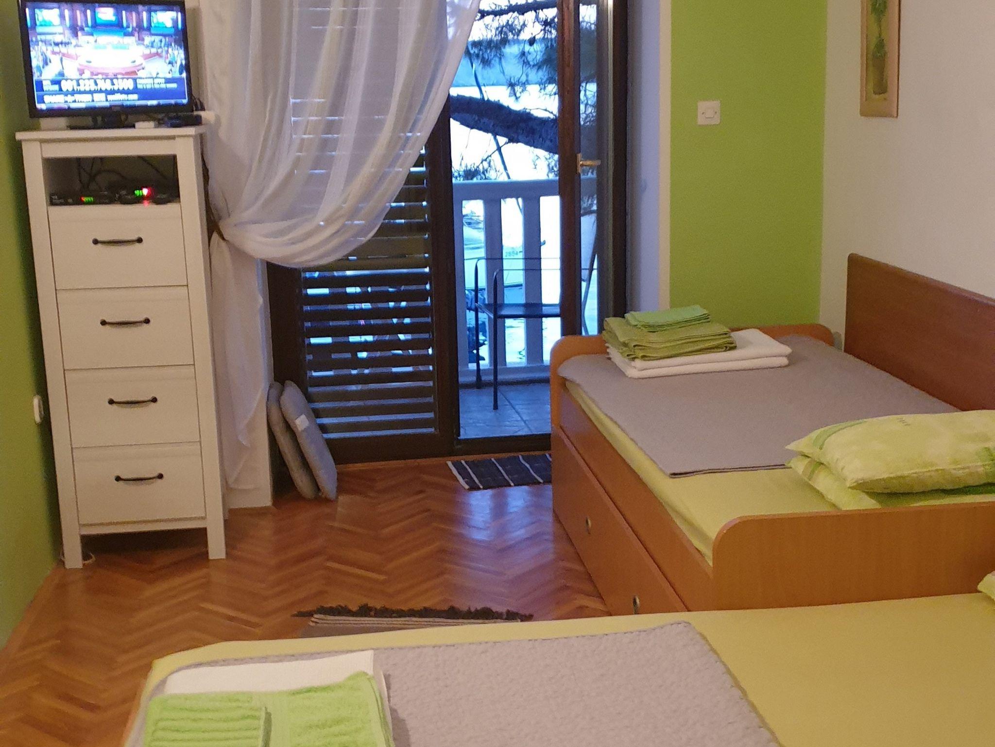 Ferienwohnung bietet Platz für 3 Gäste. Die Betten sind in Schlafzimmern, die es 1 gibt, innerhalb einer Gesamtfläche von 24m2, angeordnet. Die Gäste haben einen eigenen Balkon zur Verfügung, auf der sie in warmen Sommernächten genießen können. Das Apartment bietet Meerblick. Es ist erlaubt, Speisen auf dem Gemeinschafts-Grill vorzubereiten. IM PREIS INBEGRIFFEN: Kurtaxe, Endreinigung, Klimatisierung, Parkplatz, Internet, Bügeleisen, Bügelbrett, Föhn. VERBINDLICHE ZUSÄTZLICHE KOSTEN: Aufzahlung für Kurzaufenthalte (prozentualer Zuschlag pro Nächtigungsanzahl: 30% - 1, 20% - 2, 10% - 3). Die Verfügbarkeit zusätzlicher Dienstleistungen in Ihrem reservierten Termin und die Preise derselben (falls nicht aufgeführt) müssen im Voraus überprüft werden. Zusätzliche Dienstleistungen die in der Zahlungsaufforderung nicht aufgeführt sind werden direkt beim Vermieter bezahlt, angenommen der Gast nutzt auch diese.