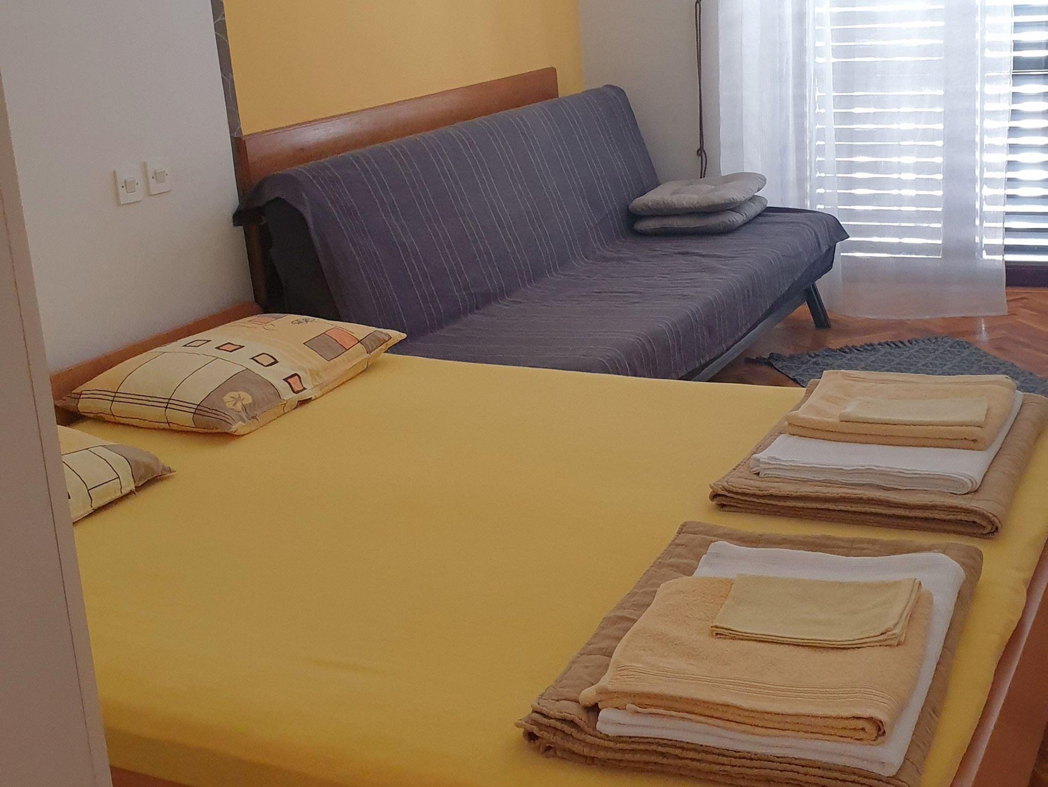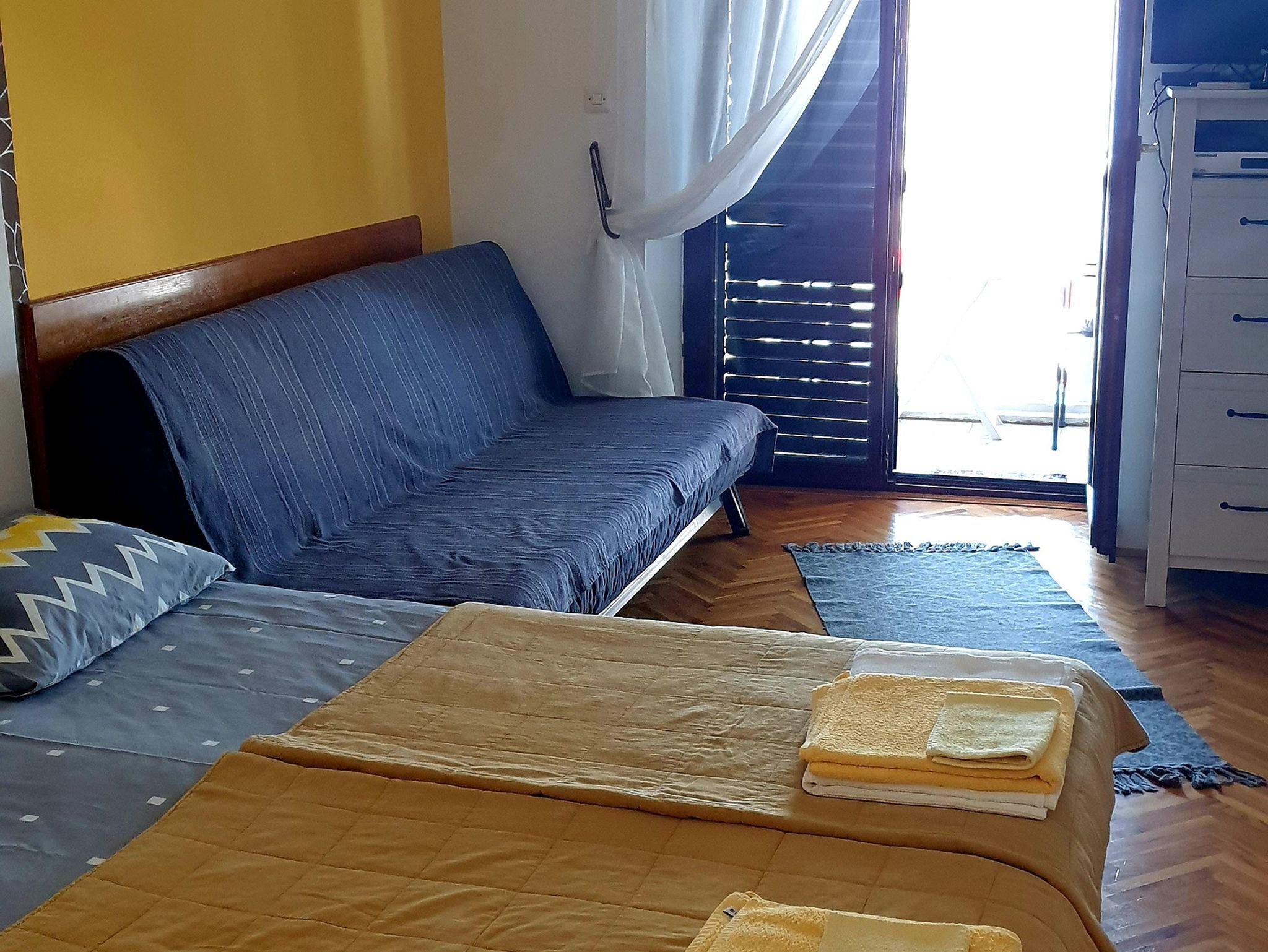Ferienwohnung bietet Platz für 3 Gäste. Die Betten sind in Schlafzimmern, die es 1 gibt, innerhalb einer Gesamtfläche von 24m2, angeordnet. Die Gäste haben einen eigenen Balkon zur Verfügung, auf der sie in warmen Sommernächten genießen können. Das Apartment bietet Meerblick. Es ist erlaubt, Speisen auf dem Gemeinschafts-Grill vorzubereiten. IM PREIS INBEGRIFFEN: Kurtaxe, Endreinigung, Klimatisierung, Parkplatz, Internet, Bügeleisen, Bügelbrett, Föhn. VERBINDLICHE ZUSÄTZLICHE KOSTEN: Aufzahlung für Kurzaufenthalte (prozentualer Zuschlag pro Nächtigungsanzahl: 30% - 1, 20% - 2, 10% - 3). Die Verfügbarkeit zusätzlicher Dienstleistungen in Ihrem reservierten Termin und die Preise derselben (falls nicht aufgeführt) müssen im Voraus überprüft werden. Zusätzliche Dienstleistungen die in der Zahlungsaufforderung nicht aufgeführt sind werden direkt beim Vermieter bezahlt, angenommen der Gast nutzt auch diese.