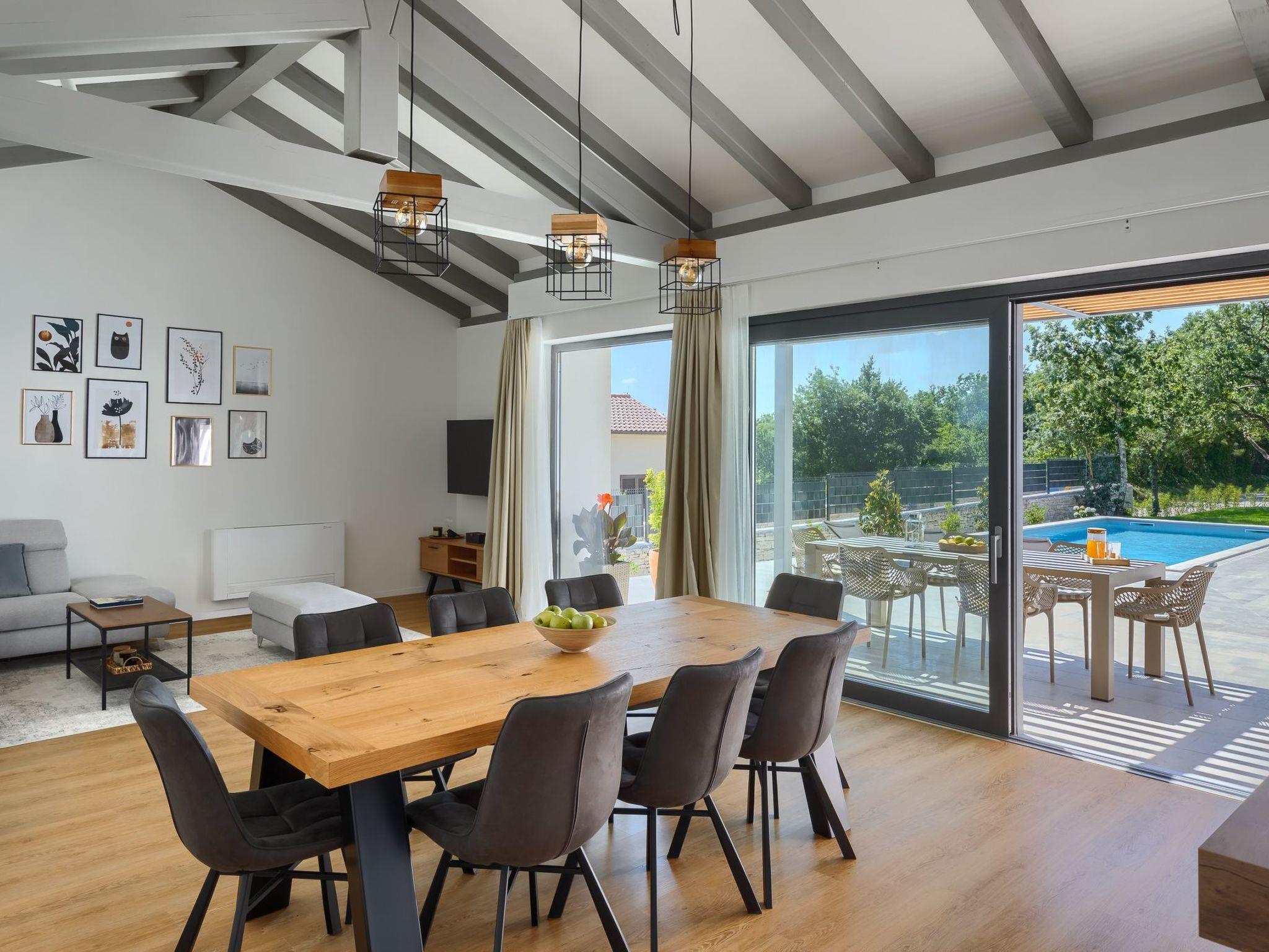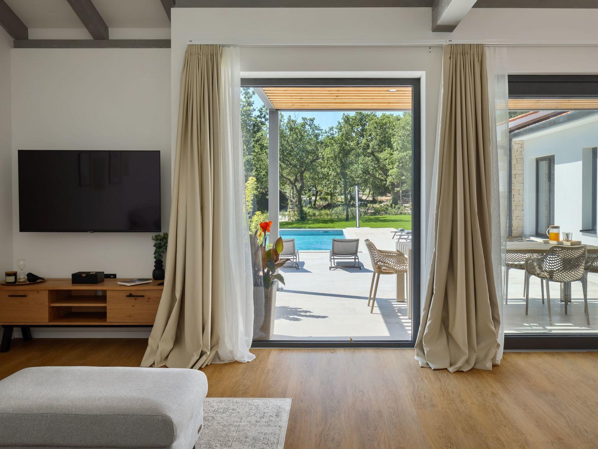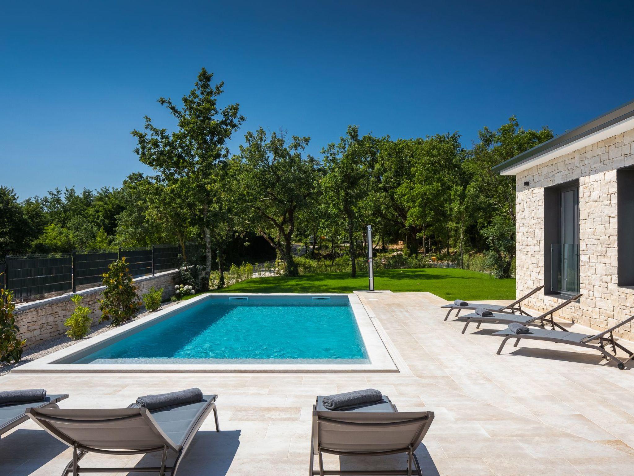 Villa Gala is surrounded by a forest, offering a beautiful lawn that invites guests to unwind and enjoy the fresh air. The villa boasts a spacious 36m² pool, providing the perfect place to cool off and soak up the sun. Relax on the lounge chairs, or gather around the barbecue facilities for a delightful al fresco dining experience.