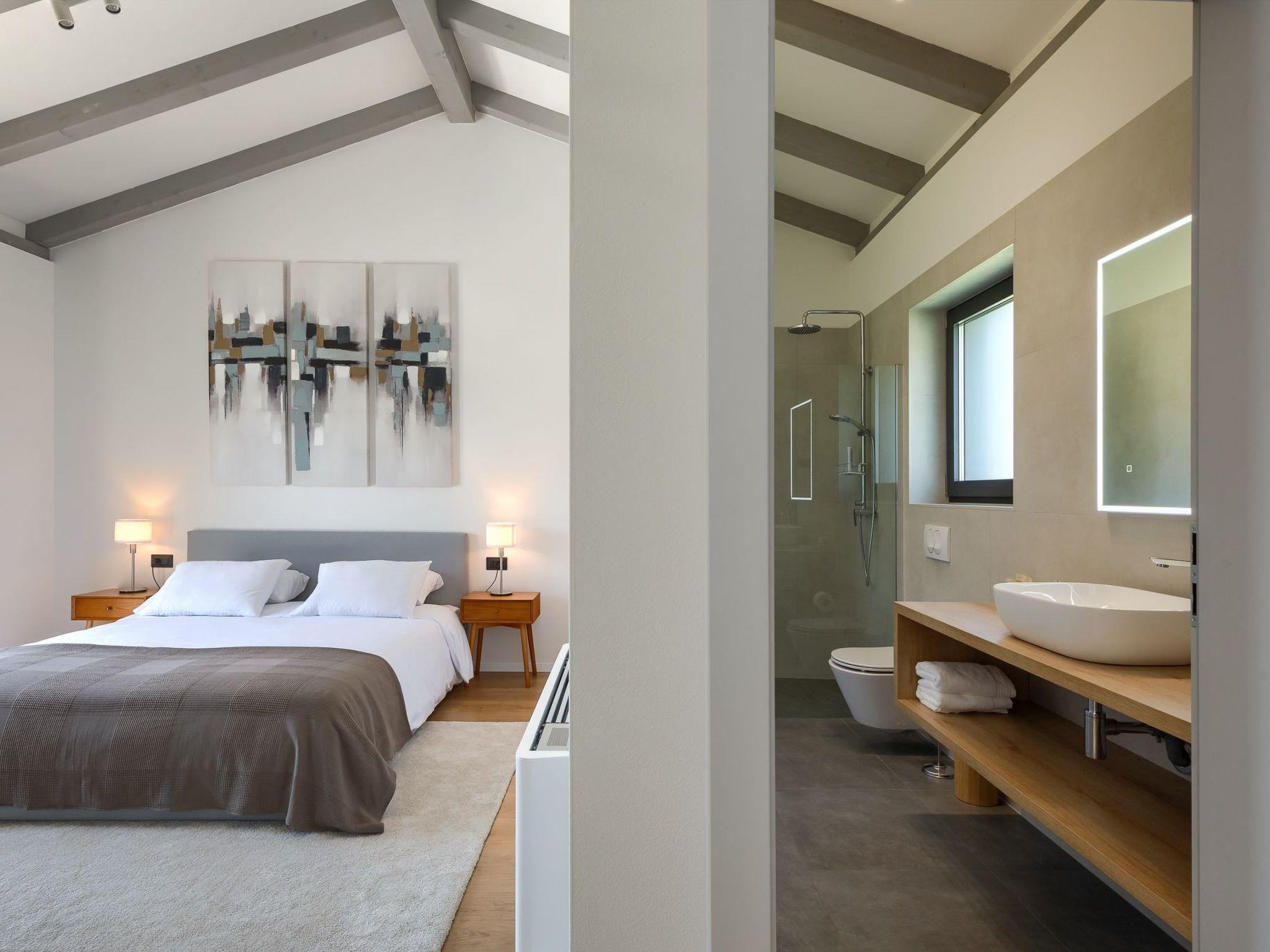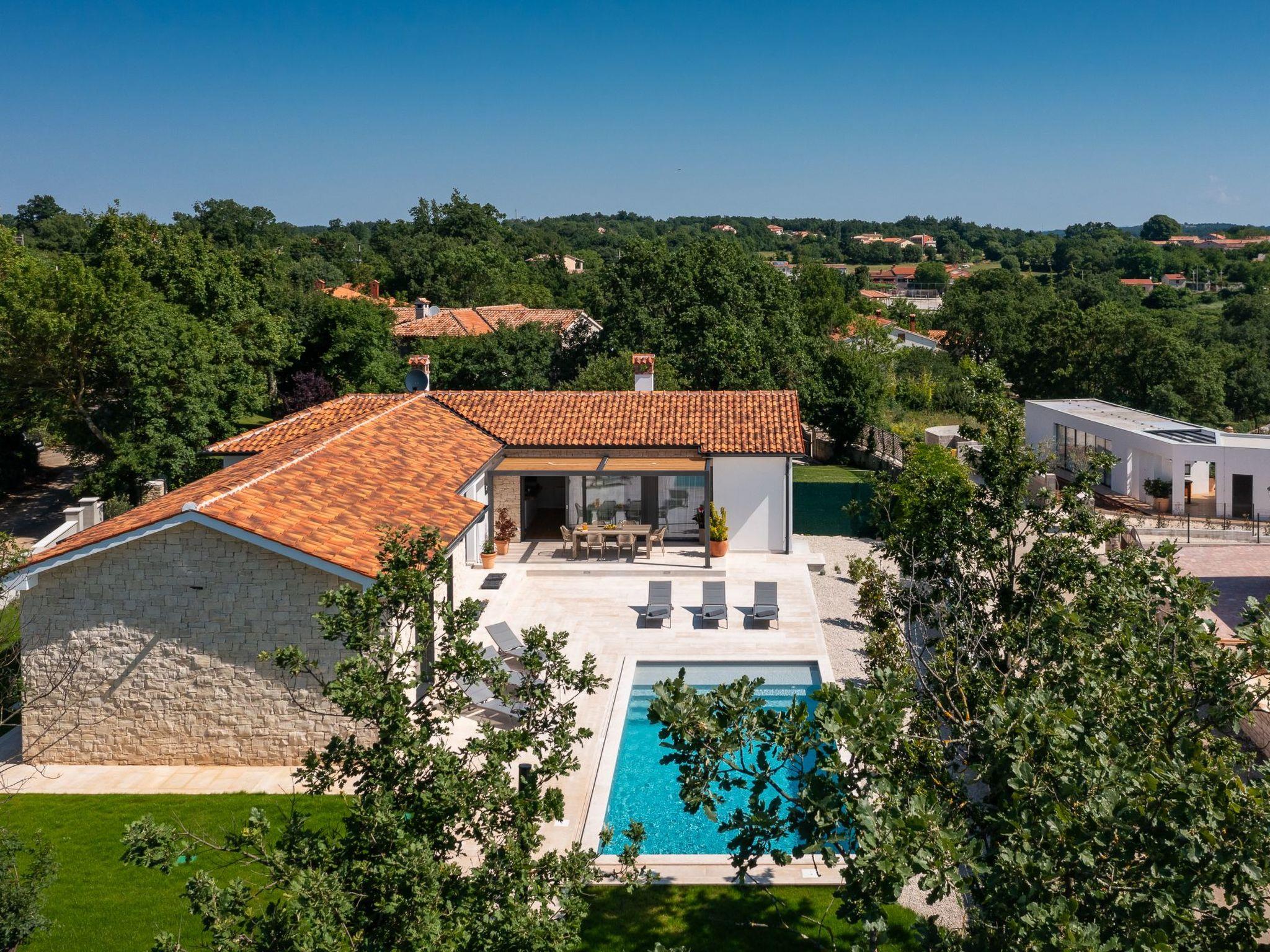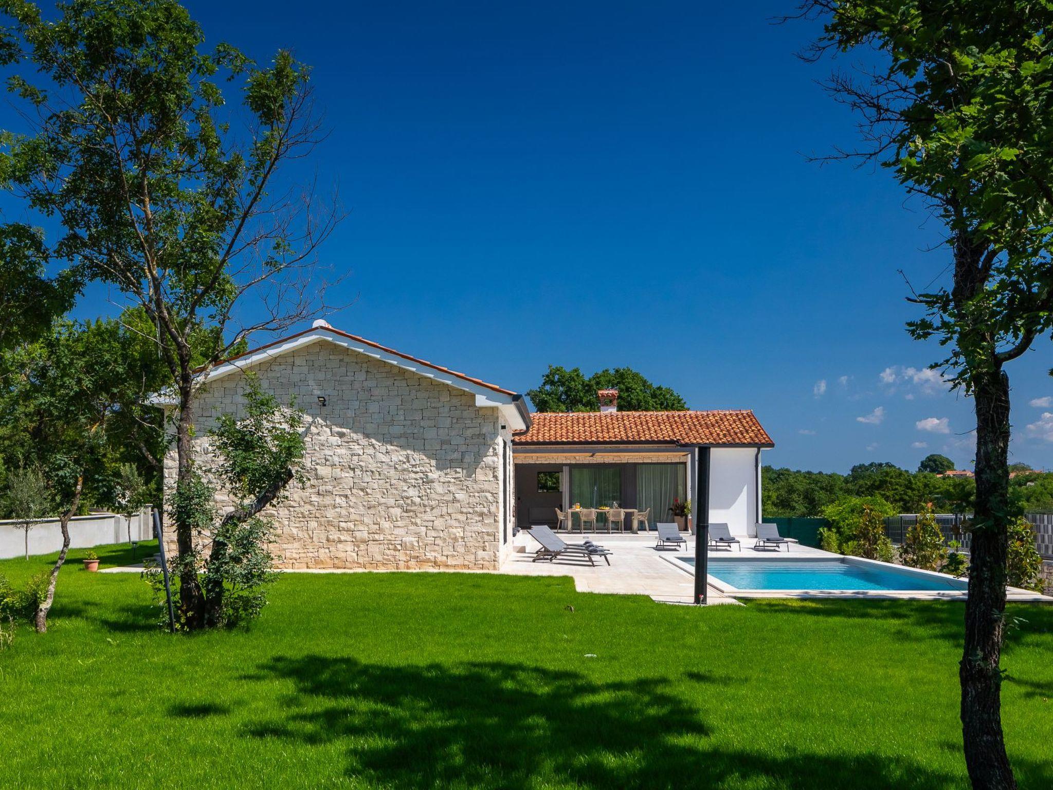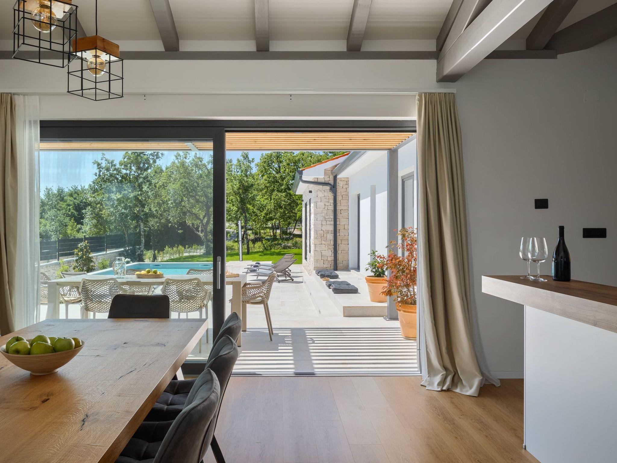 Villa Gala is surrounded by a forest, offering a beautiful lawn that invites guests to unwind and enjoy the fresh air. The villa boasts a spacious 36m² pool, providing the perfect place to cool off and soak up the sun. Relax on the lounge chairs, or gather around the barbecue facilities for a delightful al fresco dining experience.