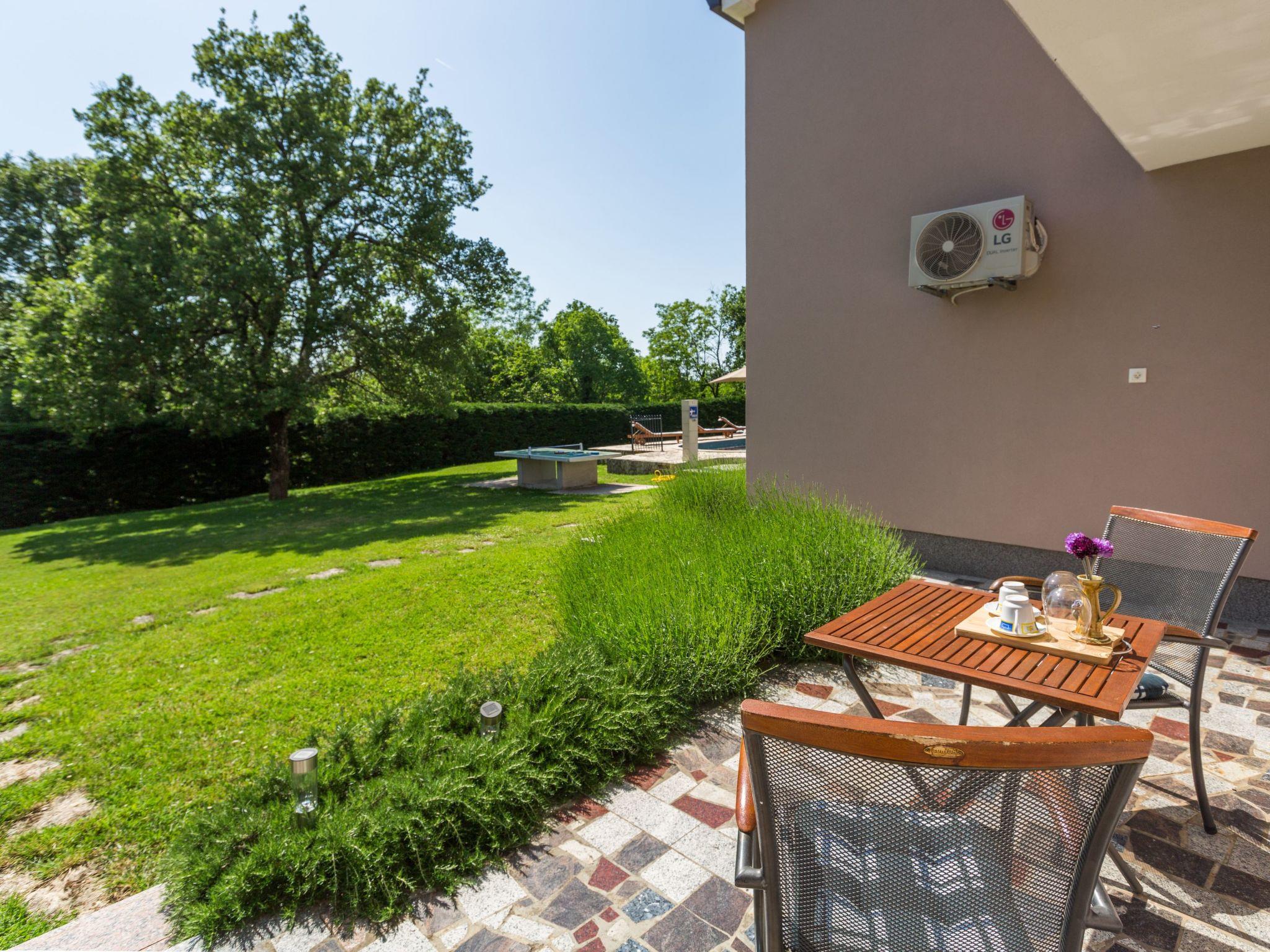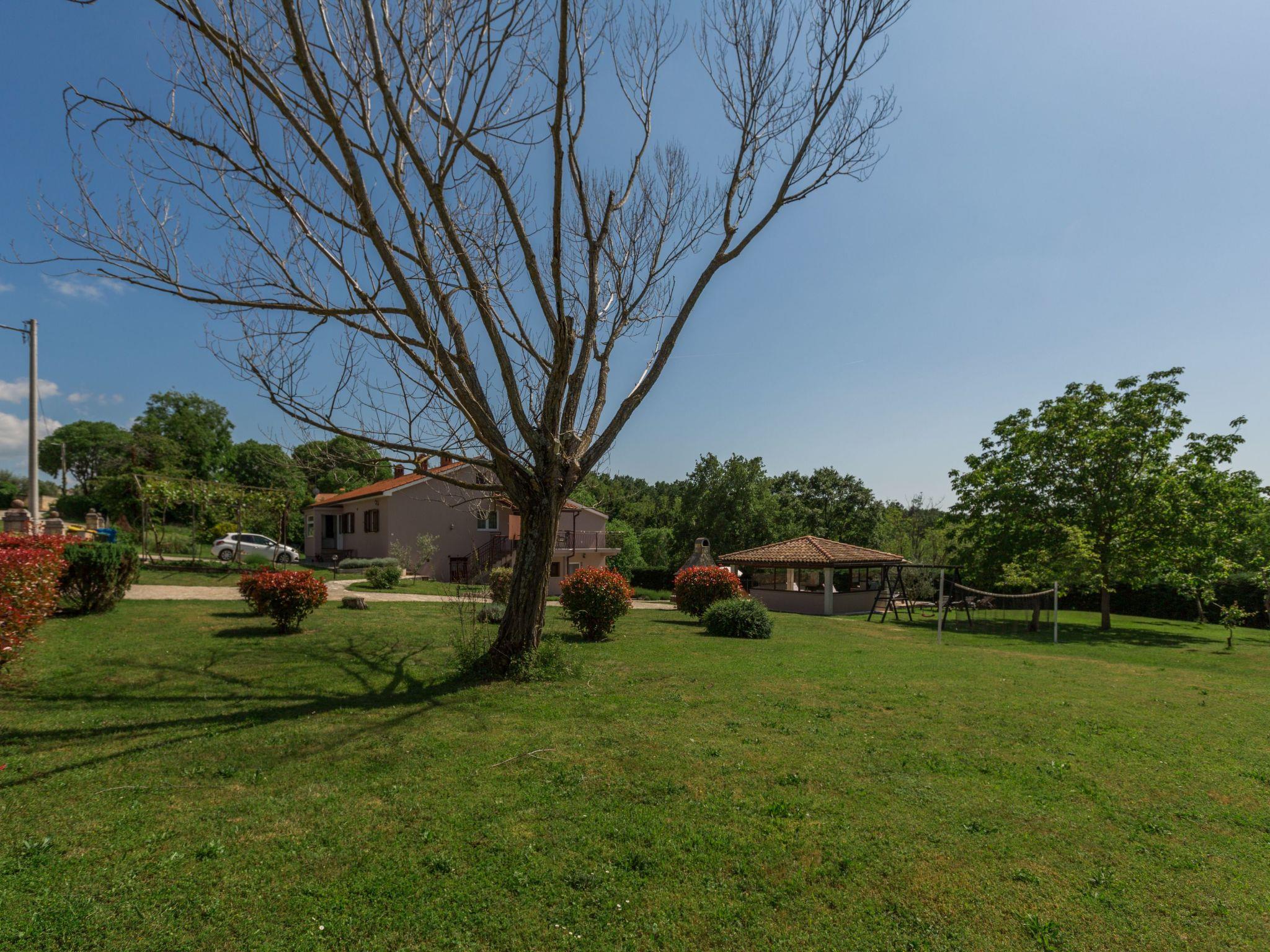 Holiday house Morena with pool is located in the small village of Butori in the green Istrian inland, 2km from the town of Tinjan and 15km from Porec and its beaches. The semi-detached house is situated on its own 3800m2 plot of land with paved lawn and offers its guests exclusive use of parking for several vehicles, private 28m2 pool with sun loungers, shower, covered summer kitchen with dining table and a barbecue fireplace. There is also a table tennis, swing and badminton court. The landlord lives next door in a separate part of the house, which has 160m2 of living space on two floors and consists of a ground floor flat for 4-5 people and a separate double bedroom with its own shower. The flat on the ground floor has a living room with open fireplace, fully equipped kitchen with dining area, 2 bedrooms and bathroom with shower/WC.The separate bedroom with double bed and private bathroom with shower/WC is also on the ground floor by the pool.The second flat for 4-5 persons is located on the 1st floor and offers a living room with fully equipped kitchen and dining area, two bedrooms and bathroom with shower/WC and washing machine. All rooms are air-conditioned and wifi is available and the holiday home will be completely renovated in 2023!