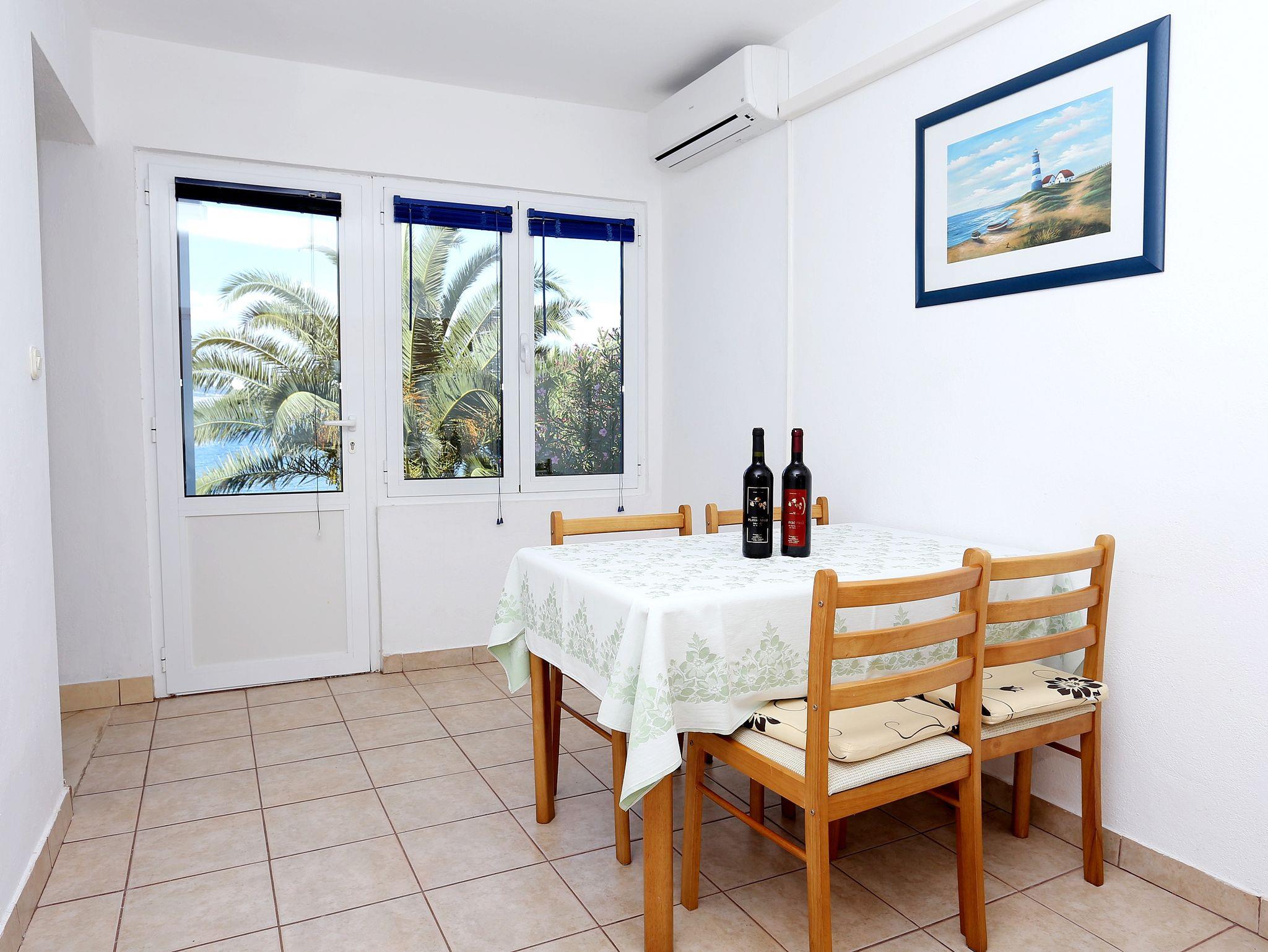 Ferienwohnung bietet Platz für 4 Gäste. Die Betten sind in Schlafzimmern, die es 2 gibt, innerhalb einer Gesamtfläche von 38m2, angeordnet. Die Gäste haben einen eigenen Balkon zur Verfügung, auf der sie in warmen Sommernächten genießen können. Das Apartment bietet Meerblick. Es ist erlaubt, Speisen auf dem Gemeinschafts-Grill vorzubereiten. IM PREIS INBEGRIFFEN: Kurtaxe, Endreinigung, Klimatisierung, Parkplatz, Internet, Bootsanlegeplatz, Bügeleisen, Bügelbrett, Föhn, Liegestühle. VERBINDLICHE ZUSÄTZLICHE KOSTEN: Aufzahlung für Kurzaufenthalte (prozentualer Zuschlag pro Nächtigungsanzahl: 30% - 1, 20% - 2, 10% - 3). Die Verfügbarkeit zusätzlicher Dienstleistungen in Ihrem reservierten Termin und die Preise derselben (falls nicht aufgeführt) müssen im Voraus überprüft werden. Zusätzliche Dienstleistungen die in der Zahlungsaufforderung nicht aufgeführt sind werden direkt beim Vermieter bezahlt, angenommen der Gast nutzt auch diese.