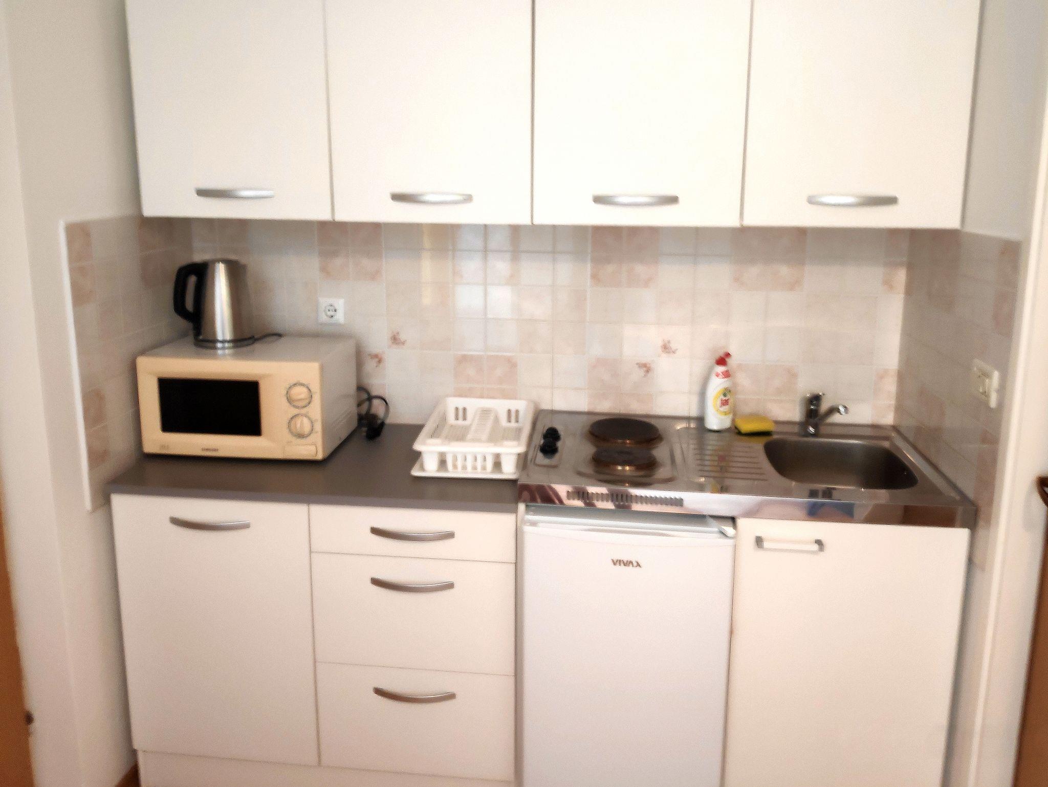 Ferienwohnung bietet Platz für 5 Gäste. Die Betten sind in Schlafzimmern, die es 1 gibt, und in Wohnzimmer, innerhalb einer Gesamtfläche von 37m2, angeordnet. Die Gäste haben eine eigene Terrasse zur Verfügung, auf der sie in warmen Sommernächten genießen können. Das Apartment bietet Meerblick. Für vollen Genuss und Entspannung gibt es einen privaten Grill für Gäste dieser Unterkunft. IM PREIS INBEGRIFFEN: Kurtaxe, Endreinigung, Klimatisierung, Parkplatz, Internet, Bügeleisen, Bügelbrett, Föhn, Liegestühle. Die Verfügbarkeit zusätzlicher Dienstleistungen in Ihrem reservierten Termin und die Preise derselben (falls nicht aufgeführt) müssen im Voraus überprüft werden. Zusätzliche Dienstleistungen die in der Zahlungsaufforderung nicht aufgeführt sind werden direkt beim Vermieter bezahlt, angenommen der Gast nutzt auch diese.