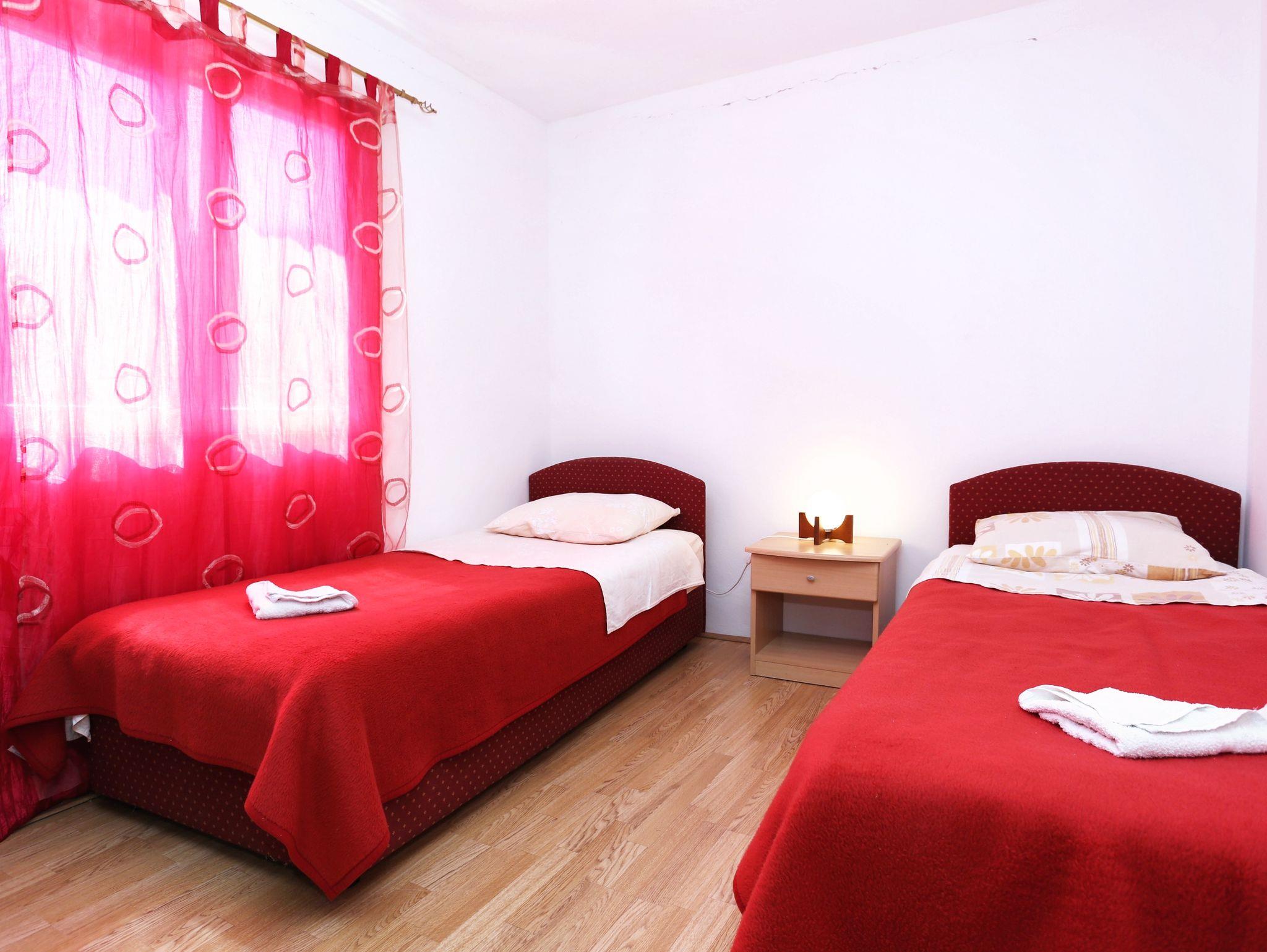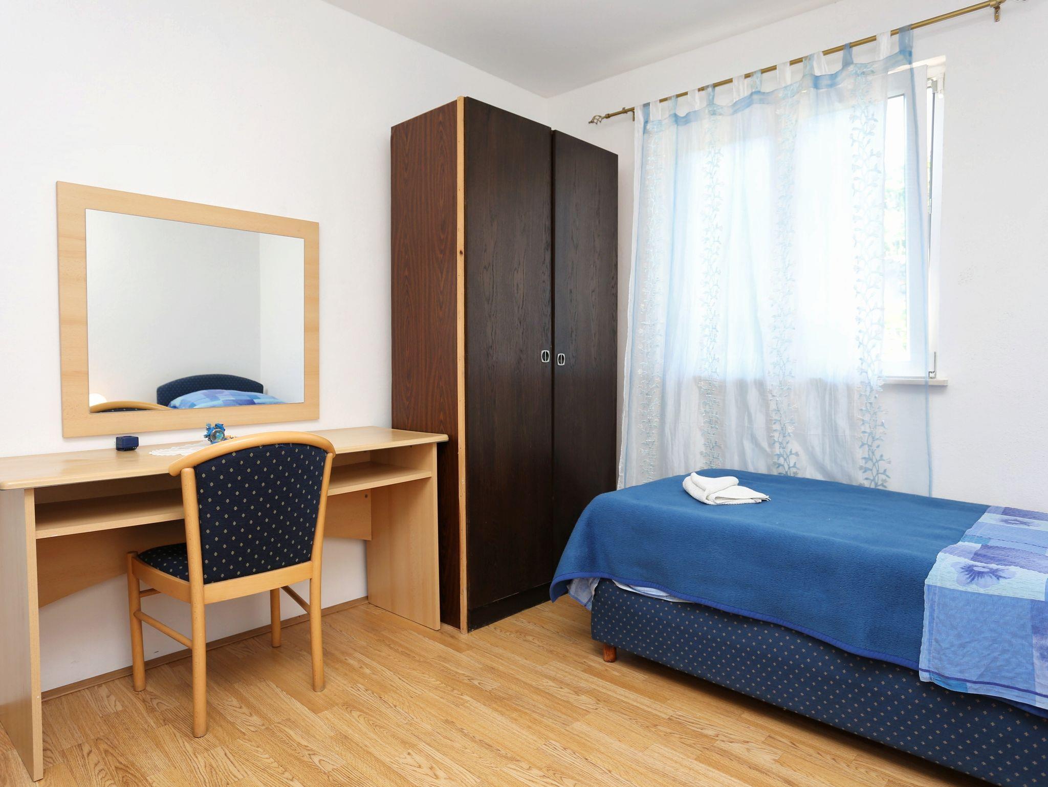 Ferienwohnung bietet Platz für 6 Gäste. Die Betten sind in Schlafzimmern, die es 2 gibt, und in Esszimmer, innerhalb einer Gesamtfläche von 49m2, angeordnet. Das Apartment bietet Meerblick. Es ist erlaubt, Speisen auf dem Gemeinschafts-Grill vorzubereiten. Die reservierte Unterkunftseinheit verfügt über einen gemeinsame Terrasse. IM PREIS INBEGRIFFEN: Kurtaxe, Endreinigung, Klimatisierung, Parkplatz, Internet, Bootsanlegeplatz, Kinderbett, Liegestühle. VERBINDLICHE ZUSÄTZLICHE KOSTEN: Aufzahlung für Kurzaufenthalte (prozentualer Zuschlag pro Nächtigungsanzahl: 30% - 1, 20% - 2, 10% - 3). Die Verfügbarkeit zusätzlicher Dienstleistungen in Ihrem reservierten Termin und die Preise derselben (falls nicht aufgeführt) müssen im Voraus überprüft werden. Zusätzliche Dienstleistungen die in der Zahlungsaufforderung nicht aufgeführt sind werden direkt beim Vermieter bezahlt, angenommen der Gast nutzt auch diese.