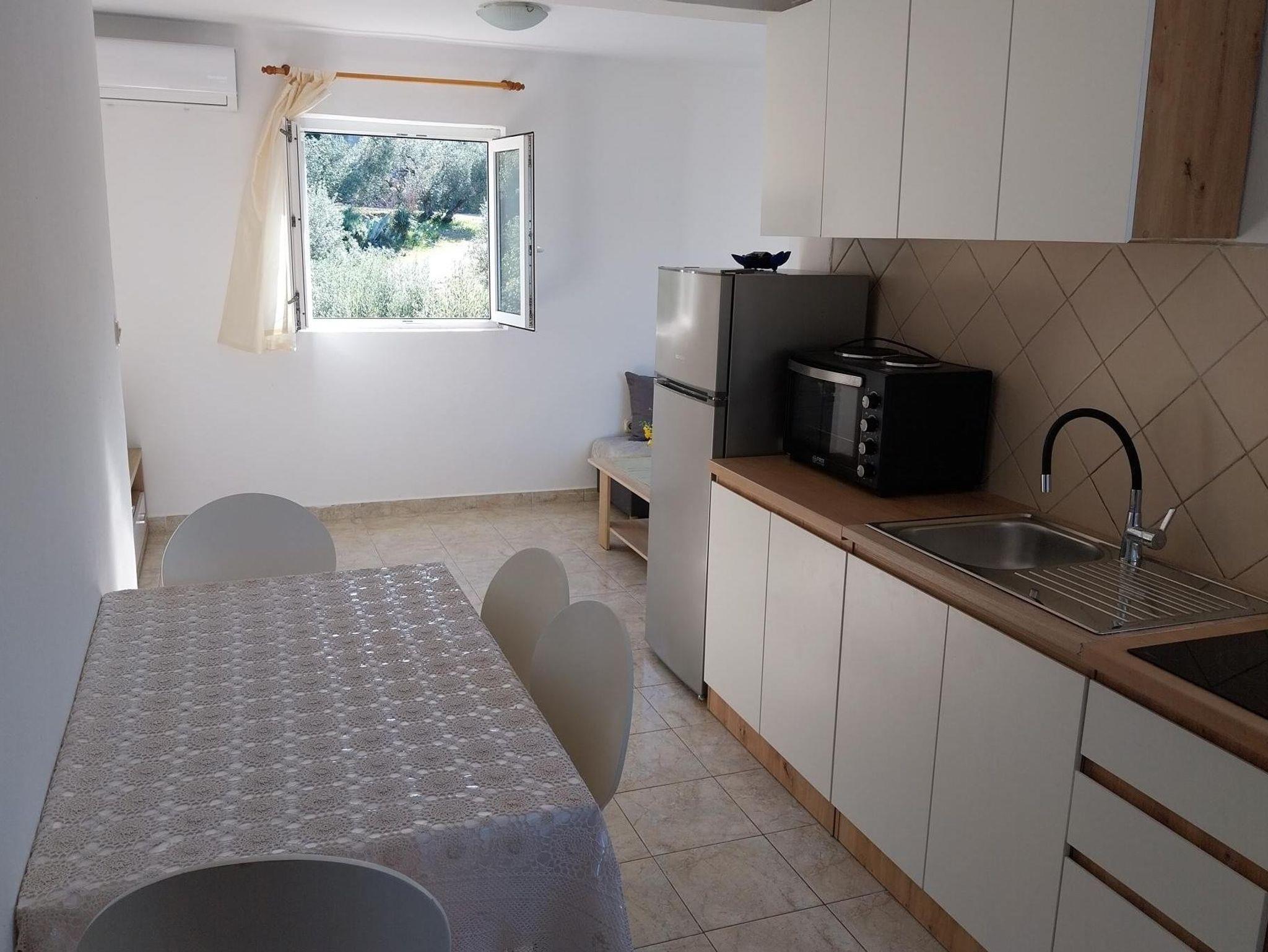 Ferienwohnung bietet Platz für 3 Gäste. Die Betten sind in Schlafzimmern, die es 1 gibt, innerhalb einer Gesamtfläche von 30m2, angeordnet. Die Gäste haben einen eigenen Balkon zur Verfügung, auf der sie in warmen Sommernächten genießen können. Das Apartment bietet Meerblick. Es ist erlaubt, Speisen auf dem Gemeinschafts-Grill vorzubereiten. IM PREIS INBEGRIFFEN: Kurtaxe, Endreinigung, Klimatisierung, Parkplatz, Internet, Wäschewaschen, Bootsanlegeplatz, Bügeleisen, Bügelbrett, Föhn, Liegestühle. VERBINDLICHE ZUSÄTZLICHE KOSTEN: Aufzahlung für Kurzaufenthalte (prozentualer Zuschlag pro Nächtigungsanzahl: 30% - 1, 20% - 2, 10% - 3). Die Verfügbarkeit zusätzlicher Dienstleistungen in Ihrem reservierten Termin und die Preise derselben (falls nicht aufgeführt) müssen im Voraus überprüft werden. Zusätzliche Dienstleistungen die in der Zahlungsaufforderung nicht aufgeführt sind werden direkt beim Vermieter bezahlt, angenommen der Gast nutzt auch diese. Ermäßigung auf den Grundpreis: Gratistag 14=13 (bei einem Aufenthalt von 14 Tagen oder mehr erhalten Sie einen Gratistag für den Aufenthalt bis 31.12.26).