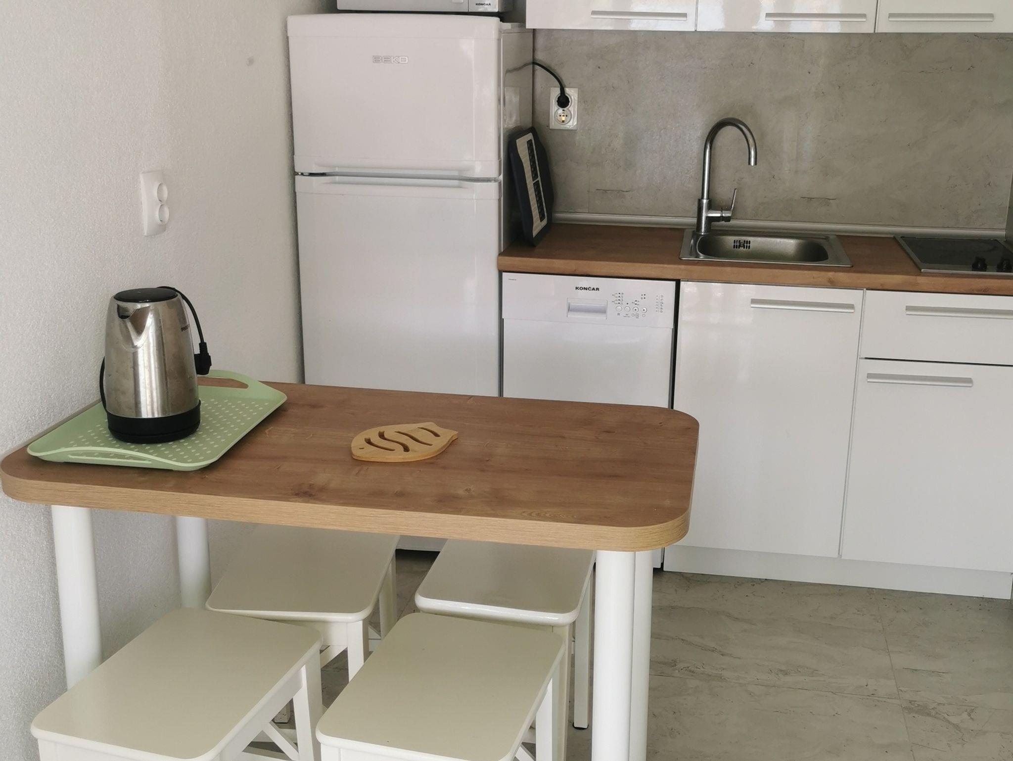 Ferienwohnung bietet Platz für 5 Gäste. Die Betten sind in Schlafzimmern, die es 2 gibt, innerhalb einer Gesamtfläche von 49m2, angeordnet. Die Gäste haben eine eigene Terrasse zur Verfügung, auf der sie in warmen Sommernächten genießen können. Das Apartment bietet Meerblick. Es ist erlaubt, Speisen auf dem Gemeinschafts-Grill vorzubereiten. IM PREIS INBEGRIFFEN: Kurtaxe, Endreinigung, Klimatisierung, Parkplatz, Internet, Bootsanlegeplatz, Kinderbett, Liegestühle. Die Verfügbarkeit zusätzlicher Dienstleistungen in Ihrem reservierten Termin und die Preise derselben (falls nicht aufgeführt) müssen im Voraus überprüft werden. Zusätzliche Dienstleistungen die in der Zahlungsaufforderung nicht aufgeführt sind werden direkt beim Vermieter bezahlt, angenommen der Gast nutzt auch diese.