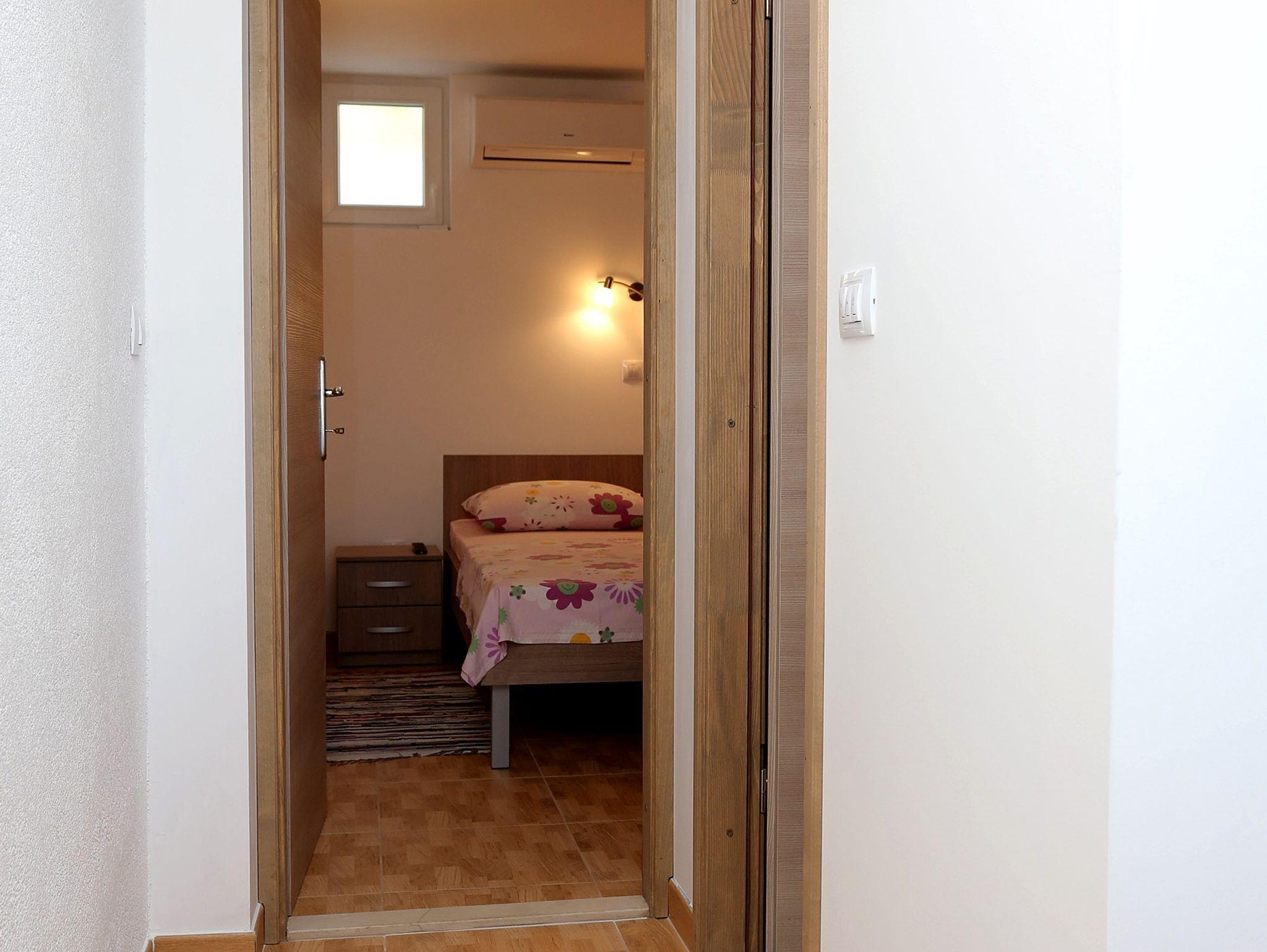 Ferienwohnung bietet Platz für 2 Gäste. Die Betten sind in Schlafzimmern, die es 1 gibt, innerhalb einer Gesamtfläche von 18m2, angeordnet. Das Apartment bietet Meerblick. Es ist erlaubt, Speisen auf dem Gemeinschafts-Grill vorzubereiten. Die reservierte Unterkunftseinheit verfügt über einen gemeinsame Terrasse. IM PREIS INBEGRIFFEN: Kurtaxe, Endreinigung, Klimatisierung, Parkplatz, Internet, Bootsanlegeplatz, Bügeleisen, Bügelbrett, Föhn, Liegestühle. VERBINDLICHE ZUSÄTZLICHE KOSTEN: Aufzahlung für Kurzaufenthalte (prozentualer Zuschlag pro Nächtigungsanzahl: 30% - 1, 20% - 2, 10% - 3). Die Verfügbarkeit zusätzlicher Dienstleistungen in Ihrem reservierten Termin und die Preise derselben (falls nicht aufgeführt) müssen im Voraus überprüft werden. Zusätzliche Dienstleistungen die in der Zahlungsaufforderung nicht aufgeführt sind werden direkt beim Vermieter bezahlt, angenommen der Gast nutzt auch diese.