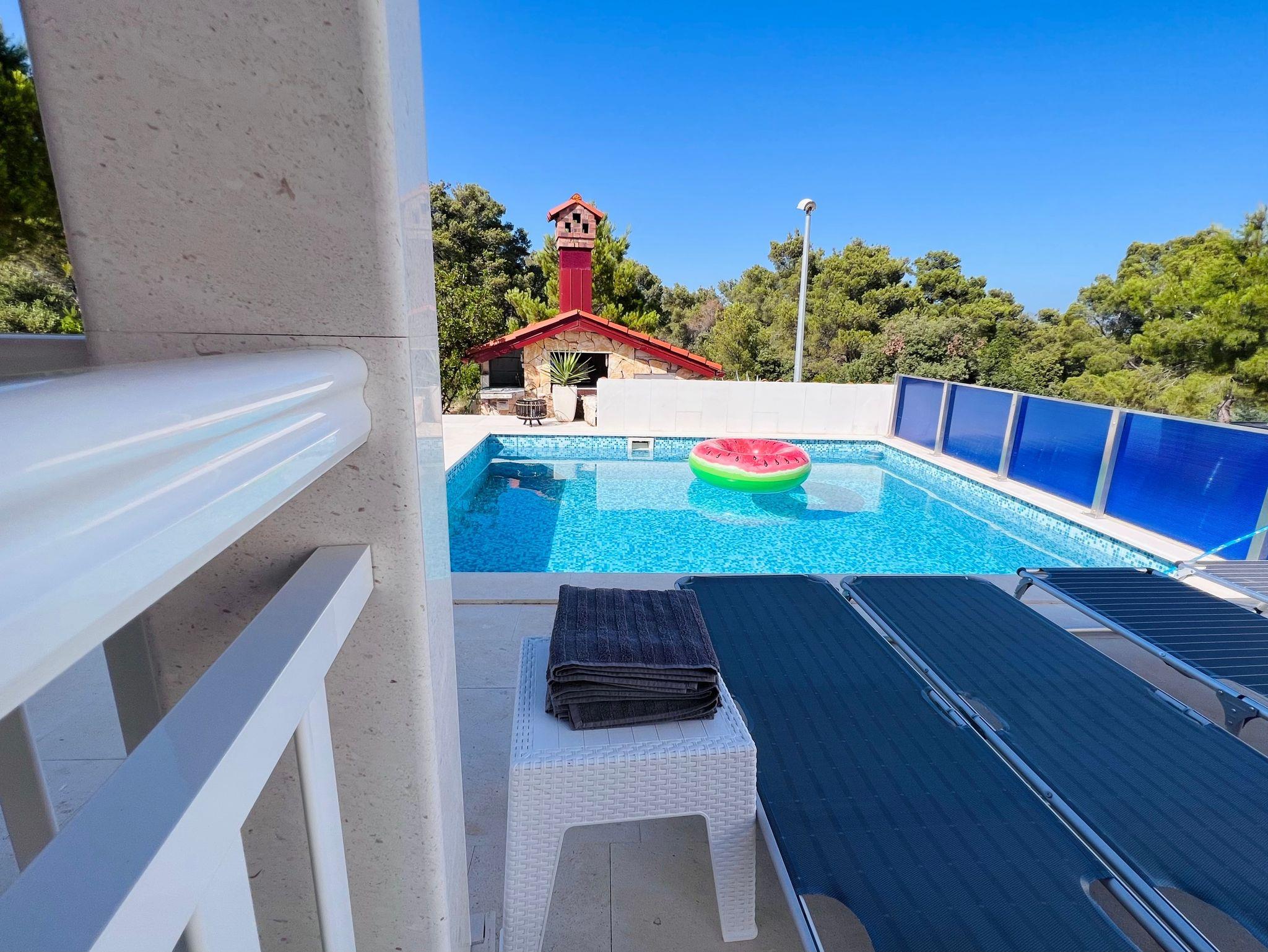 Haus bietet Platz für 6 Gäste. Die Betten sind in Schlafzimmern, die es 1 gibt, und in Wohnzimmer, innerhalb einer Gesamtfläche von 47m2, angeordnet. Die Gäste haben eine eigene Terrasse zur Verfügung, auf der sie in warmen Sommernächten genießen können. Für vollen Genuss und Entspannung gibt es einen privaten Grill für Gäste dieser Unterkunft. Während ihres Aufenthalts können sich Gäste im privaten Schwimmbad entspannen. In der Unterkunftseinheit besteht die Möglichkeit des Mitbringens von Haustieren gegen Aufpreis. IM PREIS INBEGRIFFEN: Kurtaxe, Endreinigung, Klimatisierung, Zentralheizung, Pool, Parkplatz, Internet, Kinderbett, Zusatzbett, Bügeleisen, Bügelbrett, Föhn. UNVERBINDLICHE ZUSÄTZLICHE KOSTEN: Haustiere (5,00 € pro Nacht). Die Verfügbarkeit zusätzlicher Dienstleistungen in Ihrem reservierten Termin und die Preise derselben (falls nicht aufgeführt) müssen im Voraus überprüft werden. Zusätzliche Dienstleistungen die in der Zahlungsaufforderung nicht aufgeführt sind werden direkt beim Vermieter bezahlt, angenommen der Gast nutzt auch diese. Ermäßigung auf den Grundpreis: Gratistag 14=13 (bei einem Aufenthalt von 14 Tagen oder mehr erhalten Sie einen Gratistag für den Aufenthalt bis 31.12.26).