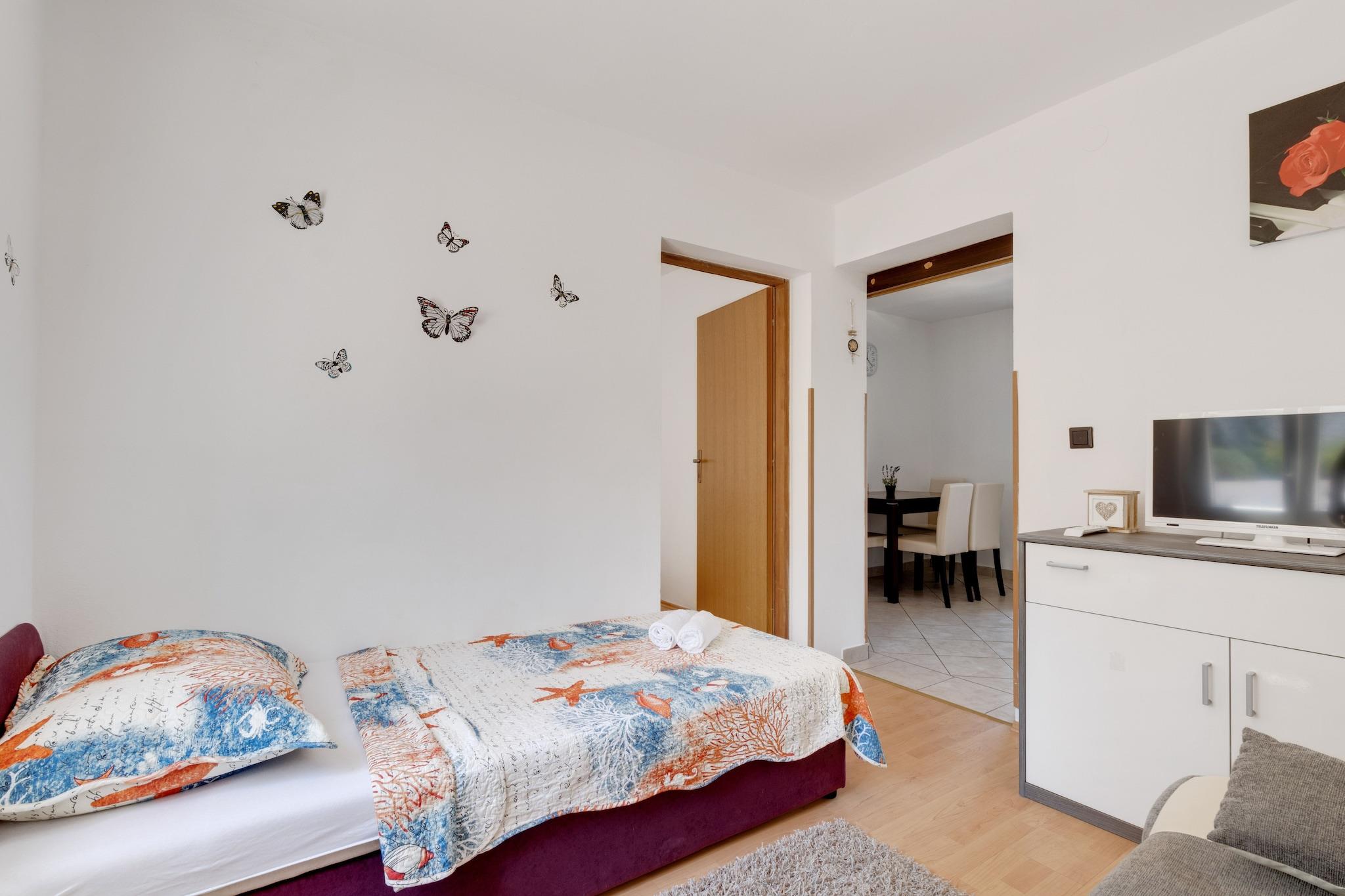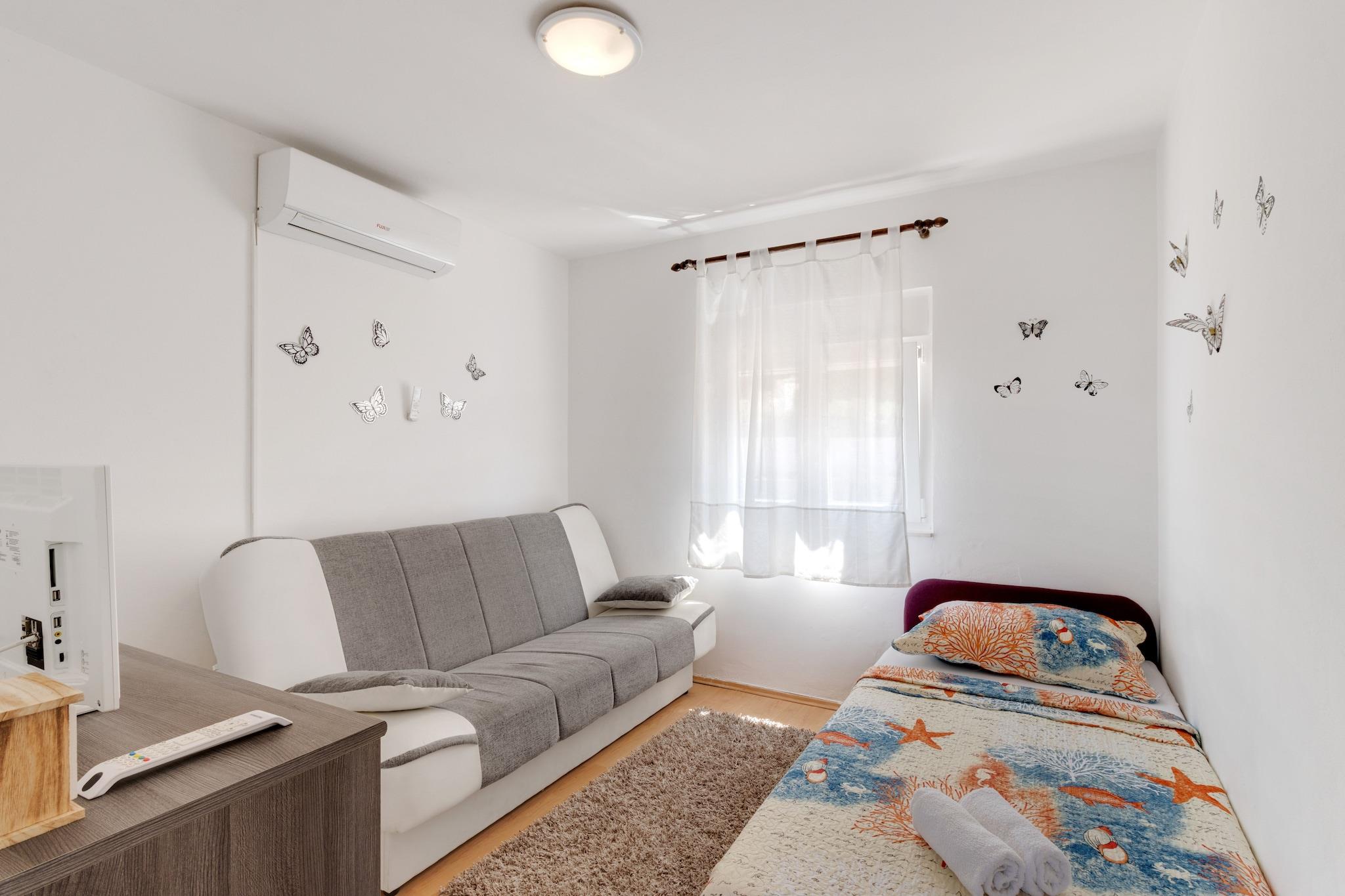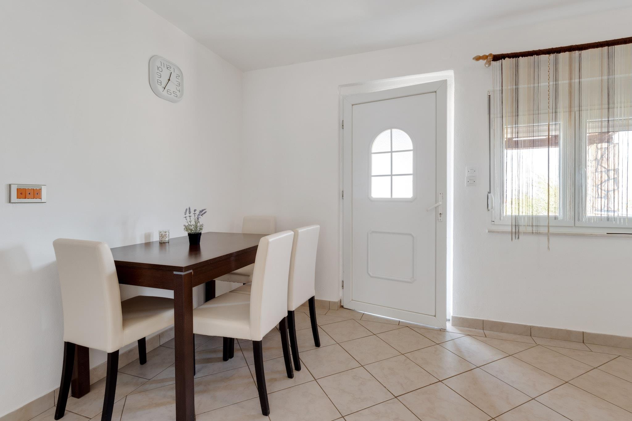 Beliggende i den charmerende by Jasenice Rovanjska tilbyder dette feriehus til fem gæster en fredelig oase kun 750 meter fra havet. Med gratis WiFi, en privat gårdhave og et grillområde kan gæsterne nyde både afslapning og bekvemmelighed. Huset ligger 400 meter fra byens centrum, med almindelige forsyninger inden for 450 meter, hvilket sikrer nem adgang til de vigtigste fornødenheder. Indenfor har ejendommen en hyggelig opholds- og spisestue, et fuldt udstyret køkken og to komfortable soveværelser, et med en dobbeltseng og et andet med to enkeltsenge. Gæsterne kan slappe af i den private gårdhave, nyde udendørs spisning med grill eller drage fordel af praktiske faciliteter som en vaskemaskine og havemøbler til fem personer. Udforsk Modric-hulen, et fascinerende naturvidunder med uberørte klippeformationer, eller besøg St. Jurja Kirke, et fredeligt vartegn, der er perfekt til en afslappende pause. For eventyrlystne tilbyder Rawna Velebit Quad Safari spændende off-road-ture. Når det er tid til at spise, serverer Gasthaus Rovanjska frisk fisk og skaldyr og kroatiske specialiteter, mens Restoran Bartol tilbyder middelhavsretter med en fantastisk udsigt. Uanset om du søger eventyr eller ro, er dette feriehus det perfekte tilflugtssted.