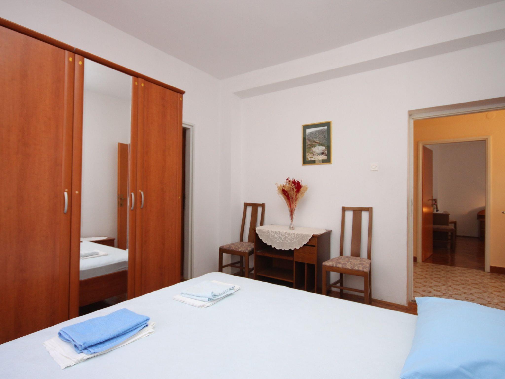 Ferienwohnung bietet Platz für 7 Gäste. Die Betten sind in Schlafzimmern, die es 3 gibt, und in Esszimmer, innerhalb einer Gesamtfläche von 106m2, angeordnet. Die Gäste haben eine eigene Terrasse zur Verfügung, auf der sie in warmen Sommernächten genießen können. Das Apartment bietet Meerblick. Es ist erlaubt, Speisen auf dem Gemeinschafts-Grill vorzubereiten. Durch die Terrasse der gebuchten Unterkunftseinheit gehen auch andere Gäste oder Vermieter. IM PREIS INBEGRIFFEN: Kurtaxe, Endreinigung, Klimatisierung, Parkplatz, Internet, Wäschewaschen. VERBINDLICHE ZUSÄTZLICHE KOSTEN: Aufzahlung für Kurzaufenthalte (prozentualer Zuschlag pro Nächtigungsanzahl: 30% - 1, 20% - 2, 10% - 3). UNVERBINDLICHE ZUSÄTZLICHE KOSTEN: Zusatzbett (10,00 € pro Nacht). Die Verfügbarkeit zusätzlicher Dienstleistungen in Ihrem reservierten Termin und die Preise derselben (falls nicht aufgeführt) müssen im Voraus überprüft werden. Zusätzliche Dienstleistungen die in der Zahlungsaufforderung nicht aufgeführt sind werden direkt beim Vermieter bezahlt, angenommen der Gast nutzt auch diese.