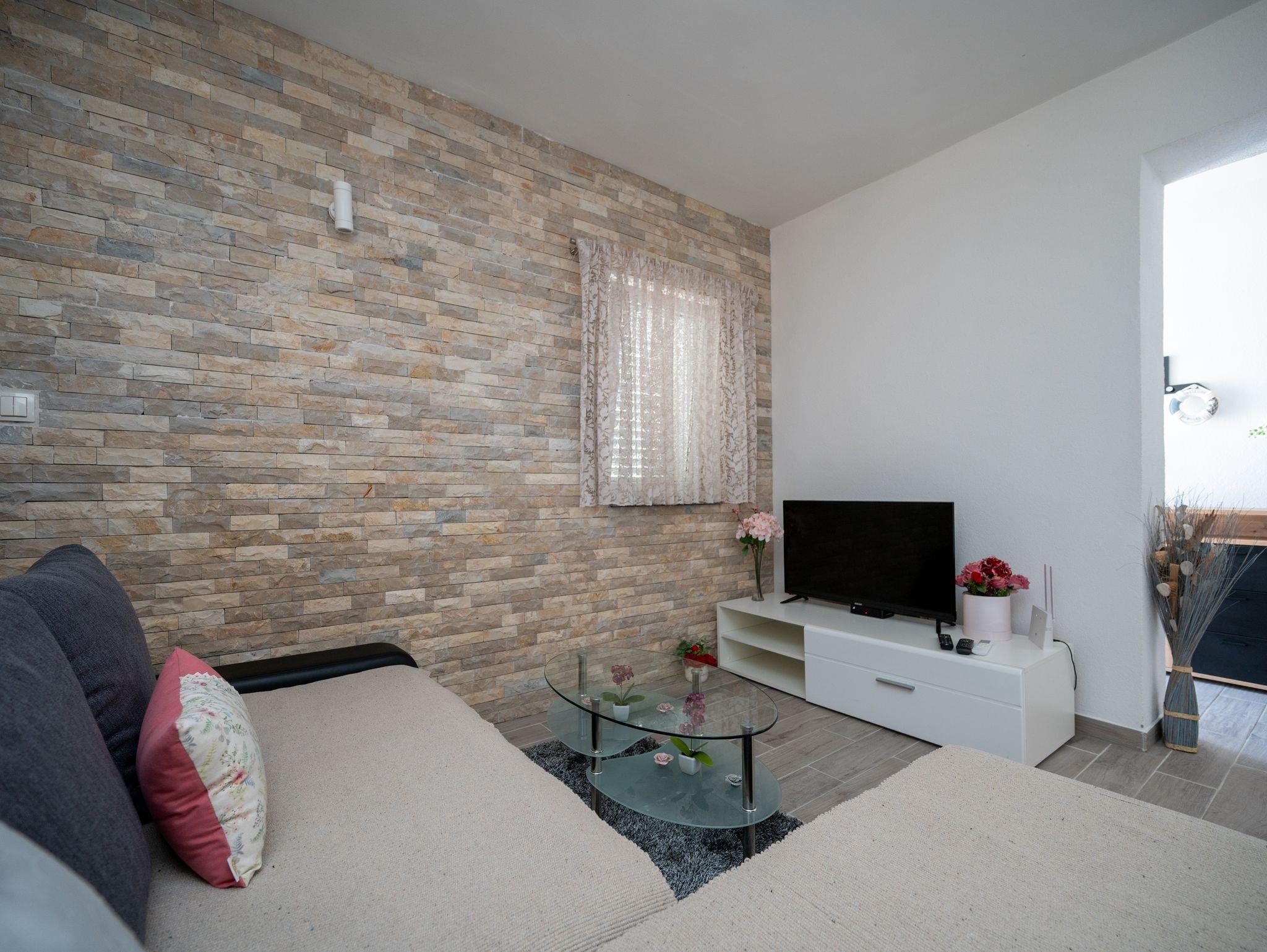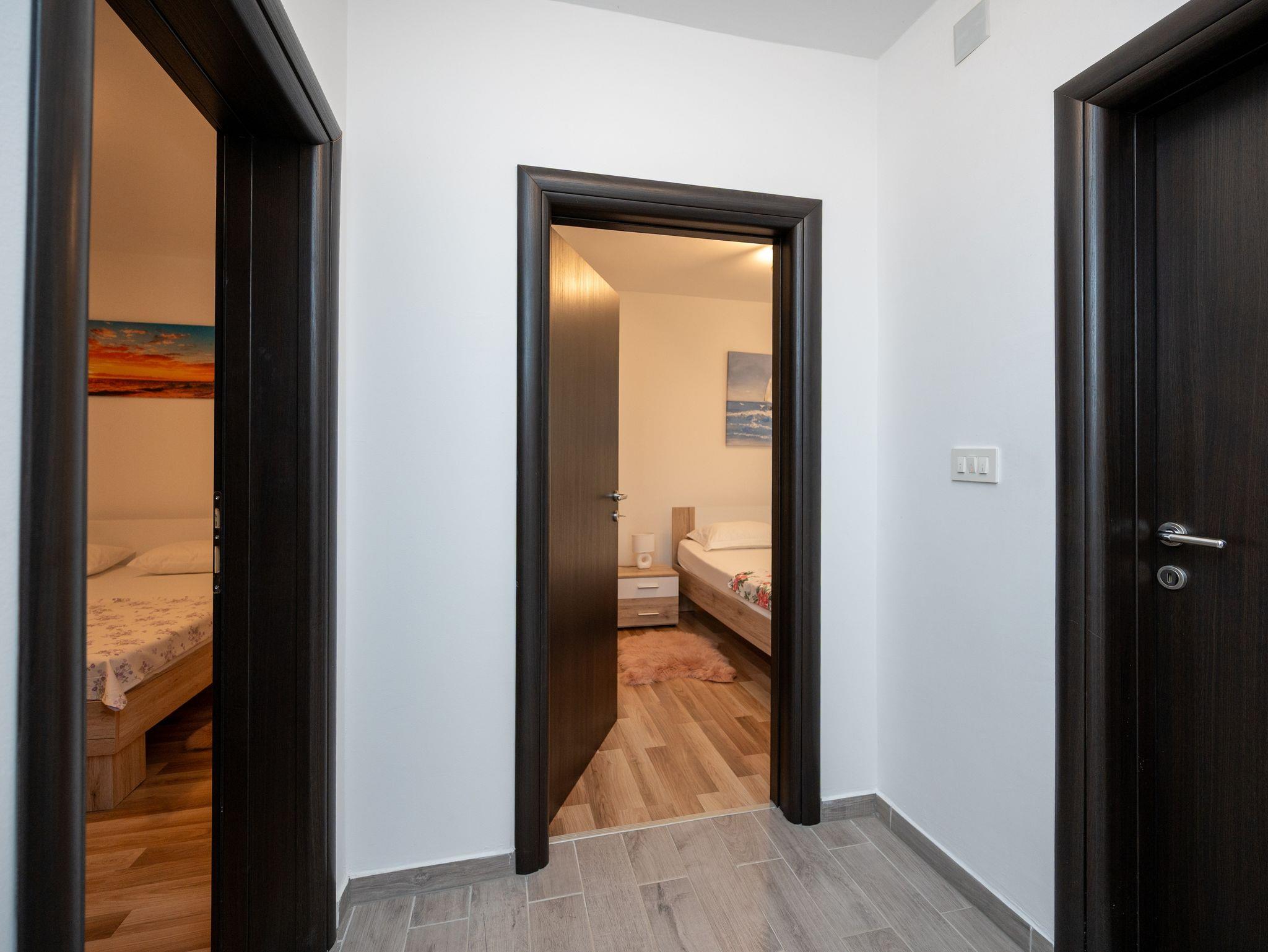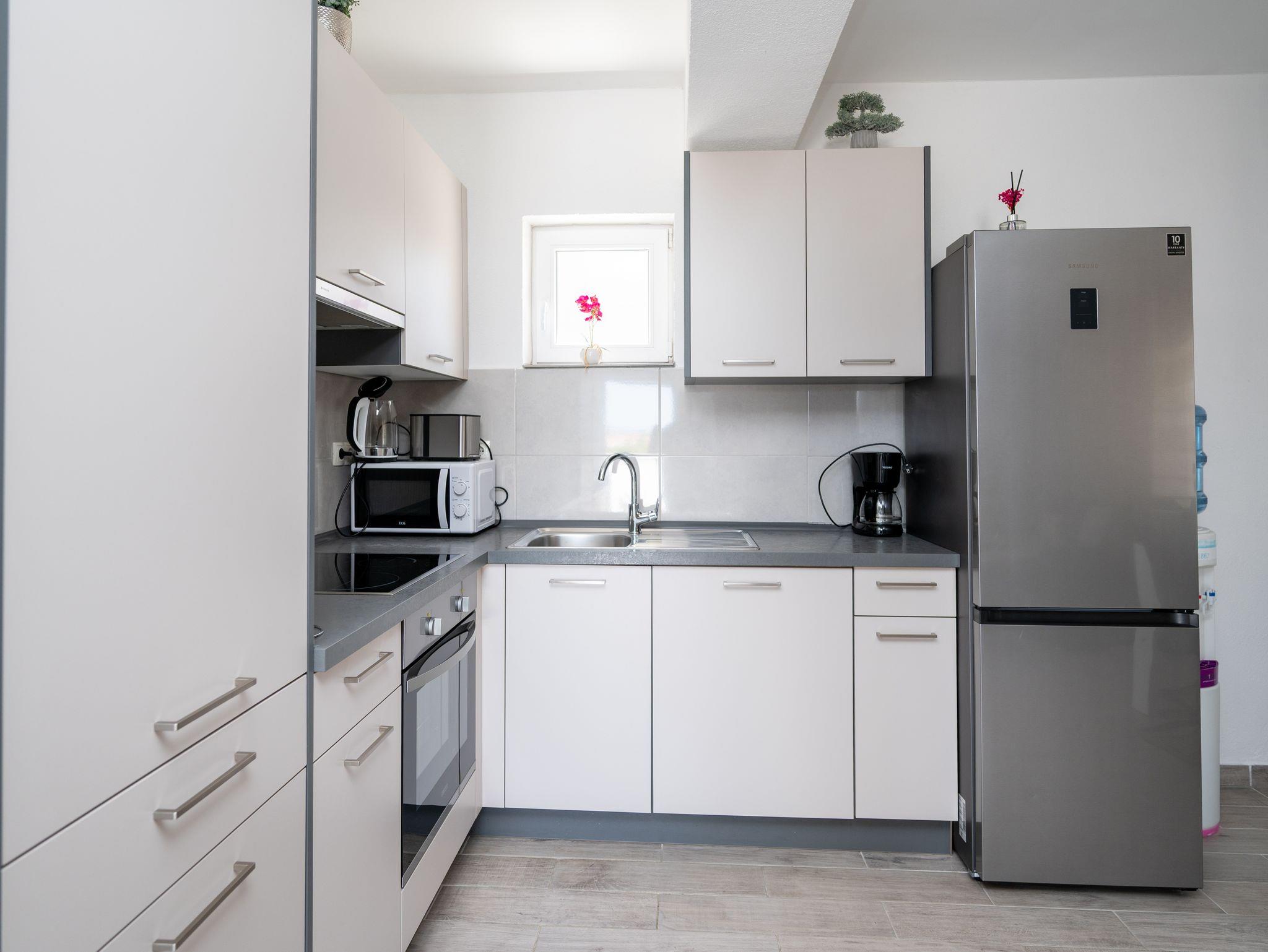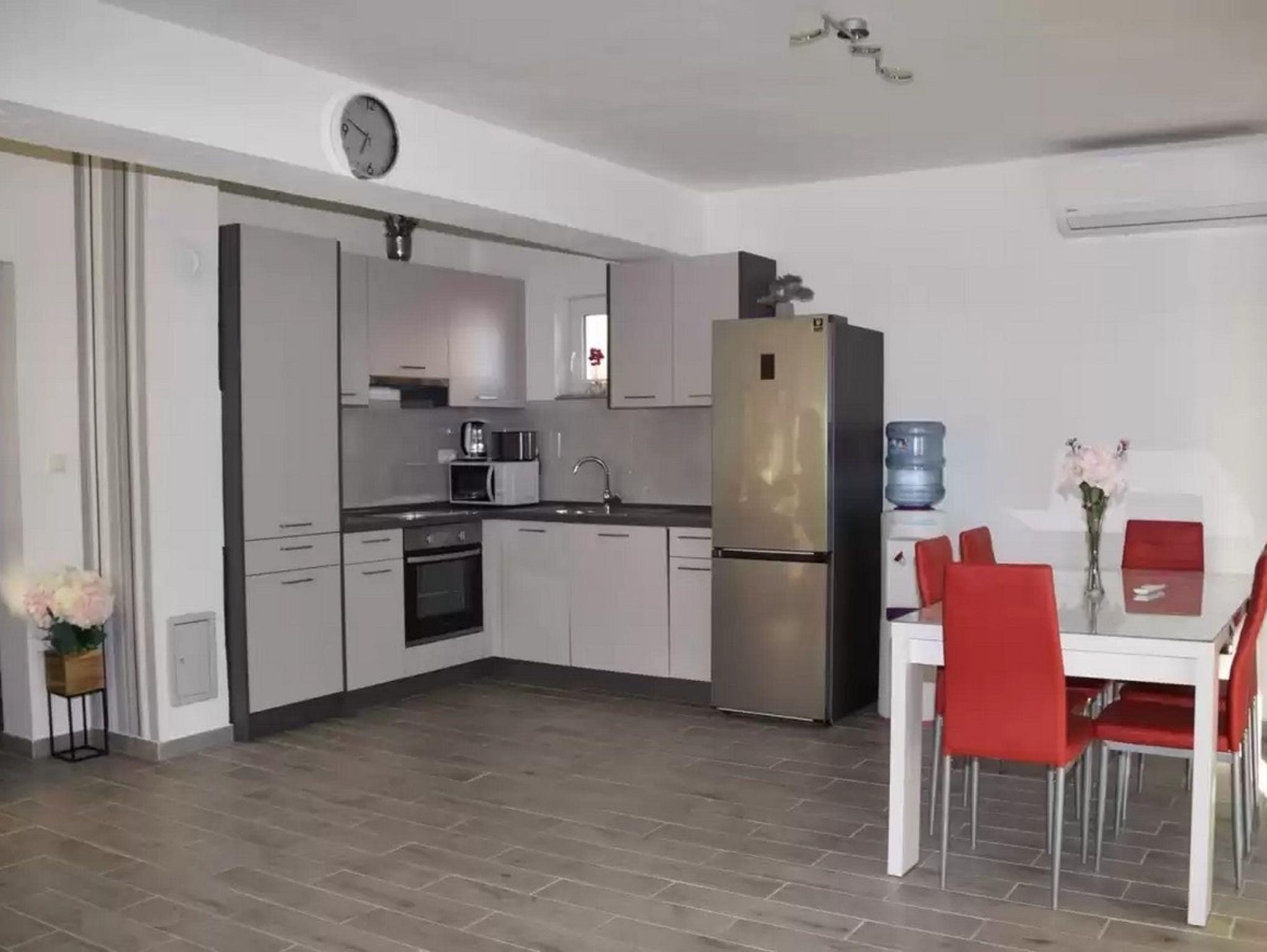 Haus bietet Platz für 6 Gäste. Die Betten sind in Schlafzimmern, die es 2 gibt, und in Wohnzimmer, innerhalb einer Gesamtfläche von 60m2, angeordnet. Die Gäste haben eine eigene Terrasse zur Verfügung, auf der sie in warmen Sommernächten genießen können. Das Haus bietet Meerblick. Für vollen Genuss und Entspannung gibt es einen privaten Grill für Gäste dieser Unterkunft. Während ihres Aufenthalts können Gäste das gemeinsam zur Nutzung stehende Schwimmbad benutzen. In der Unterkunftseinheit besteht die Möglichkeit des Mitbringens von Haustieren gegen Aufpreis. In der gebuchten Unterkunftseinheit zahlt man am Ort ein Depositum ( der Preis ist an der Internetseite angeführt ). IM PREIS INBEGRIFFEN: Kurtaxe, Endreinigung, Klimatisierung, Pool, Parkplatz, Internet, Bügeleisen, Bügelbrett, Föhn. VERBINDLICHE ZUSÄTZLICHE KOSTEN: Kaution (300,00 € Einmalzahlung). UNVERBINDLICHE ZUSÄTZLICHE KOSTEN: Haustiere (10,00 € pro Nacht). Die Verfügbarkeit zusätzlicher Dienstleistungen in Ihrem reservierten Termin und die Preise derselben (falls nicht aufgeführt) müssen im Voraus überprüft werden. Zusätzliche Dienstleistungen die in der Zahlungsaufforderung nicht aufgeführt sind werden direkt beim Vermieter bezahlt, angenommen der Gast nutzt auch diese.
