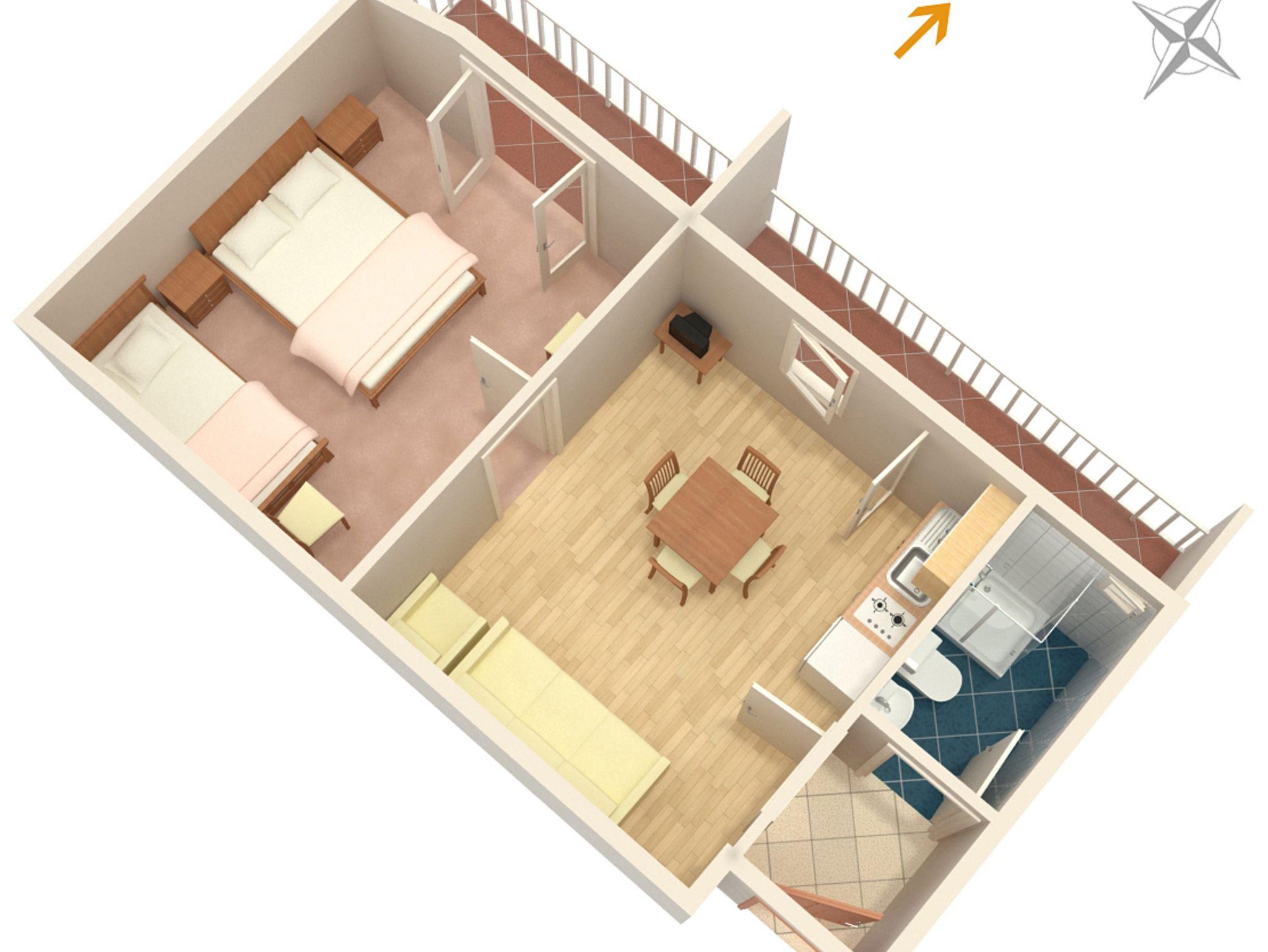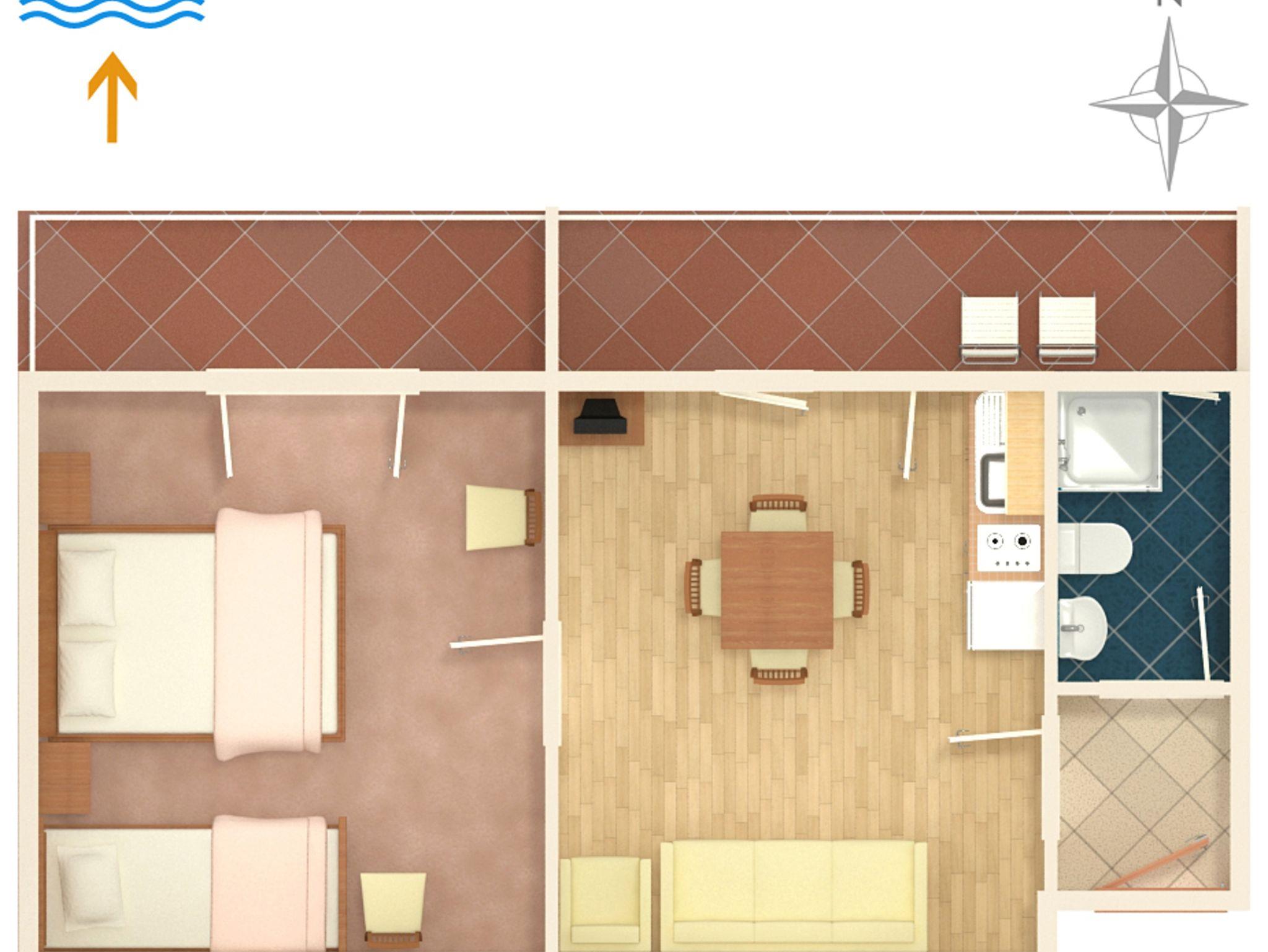 Ferienwohnung bietet Platz für 4 Gäste. Die Betten sind in Schlafzimmern, die es 1 gibt, und in Esszimmer, innerhalb einer Gesamtfläche von 33m2, angeordnet. Die Gäste haben einen eigenen Balkon zur Verfügung, auf der sie in warmen Sommernächten genießen können. Es ist erlaubt, Speisen auf dem Gemeinschafts-Grill vorzubereiten. In der Unterkunftseinheit besteht die Möglichkeit des Mitbringens von Haustieren gegen Aufpreis. IM PREIS INBEGRIFFEN: Kurtaxe, Endreinigung, Parkplatz, Internet, Bügeleisen, Bügelbrett, Föhn. VERBINDLICHE ZUSÄTZLICHE KOSTEN: Aufzahlung für Kurzaufenthalte (prozentualer Zuschlag pro Nächtigungsanzahl: 30% - 1, 20% - 2, 10% - 3). UNVERBINDLICHE ZUSÄTZLICHE KOSTEN: Klimatisierung (5,00 € pro Nacht), Wäschewaschen (5,00 € Waschen), Haustiere (5,00 € pro Nacht). Die Verfügbarkeit zusätzlicher Dienstleistungen in Ihrem reservierten Termin und die Preise derselben (falls nicht aufgeführt) müssen im Voraus überprüft werden. Zusätzliche Dienstleistungen die in der Zahlungsaufforderung nicht aufgeführt sind werden direkt beim Vermieter bezahlt, angenommen der Gast nutzt auch diese.