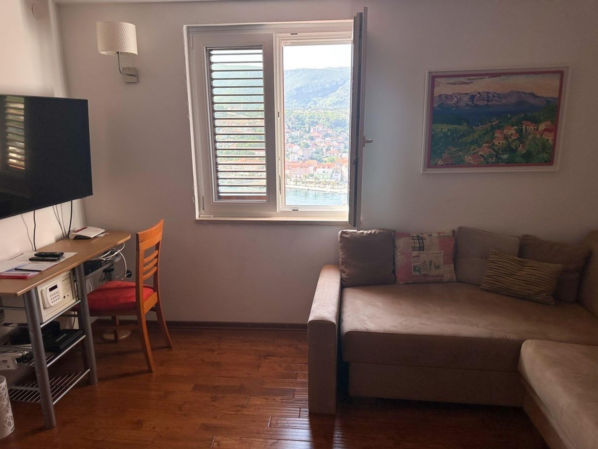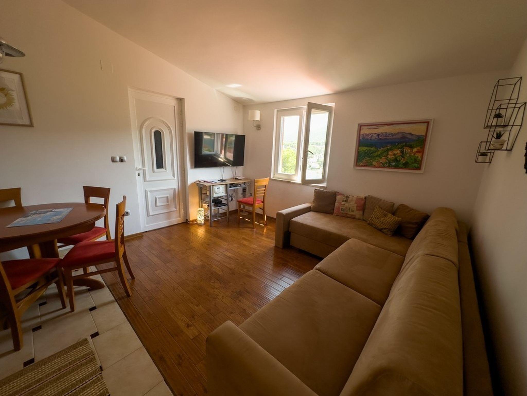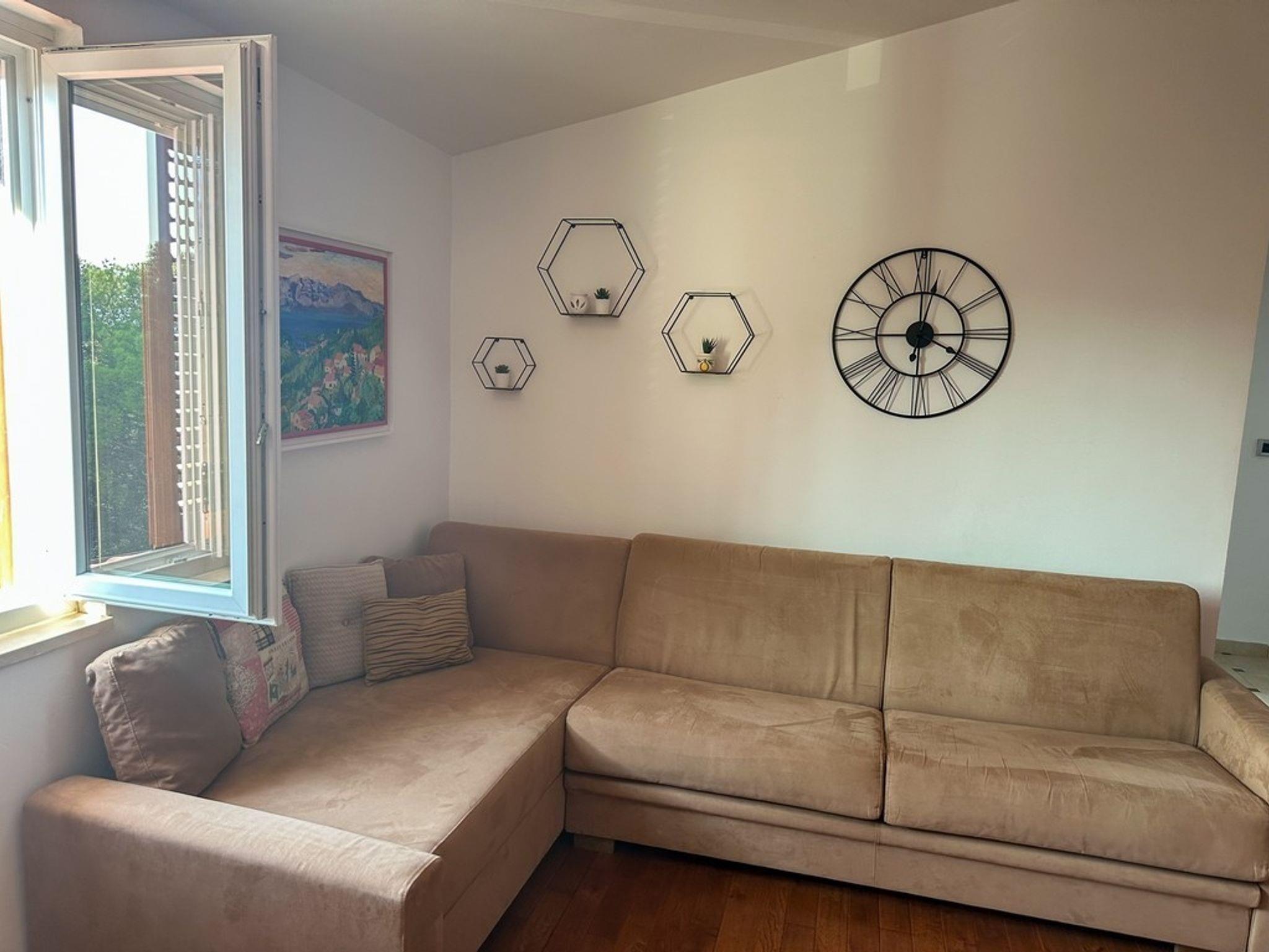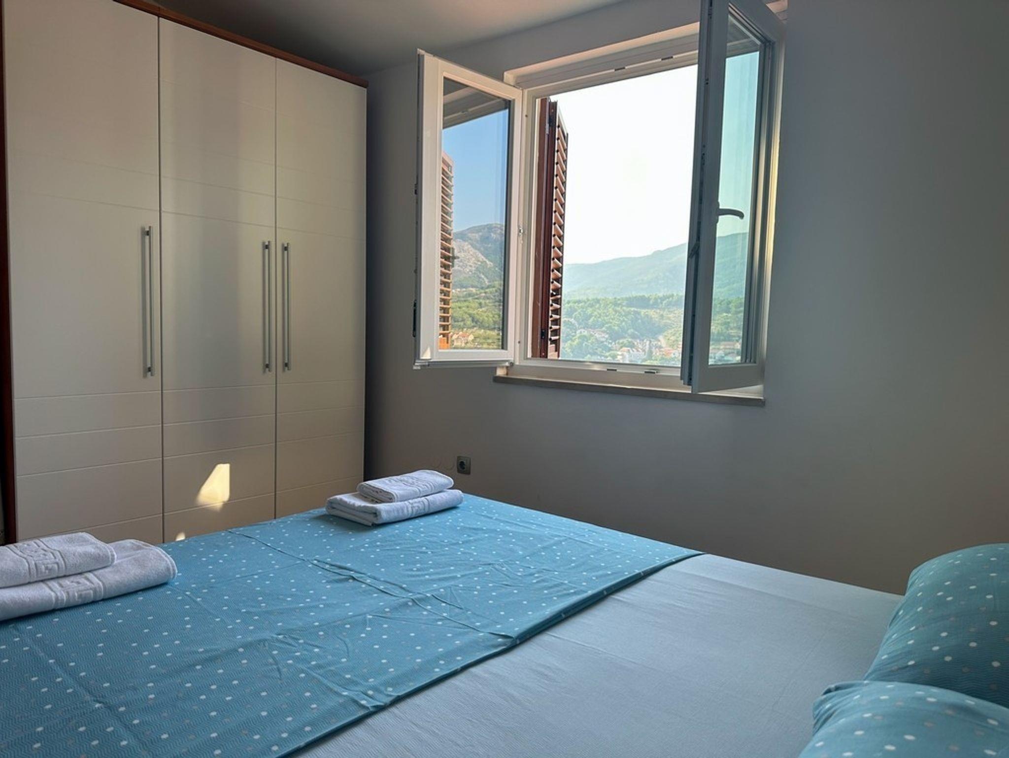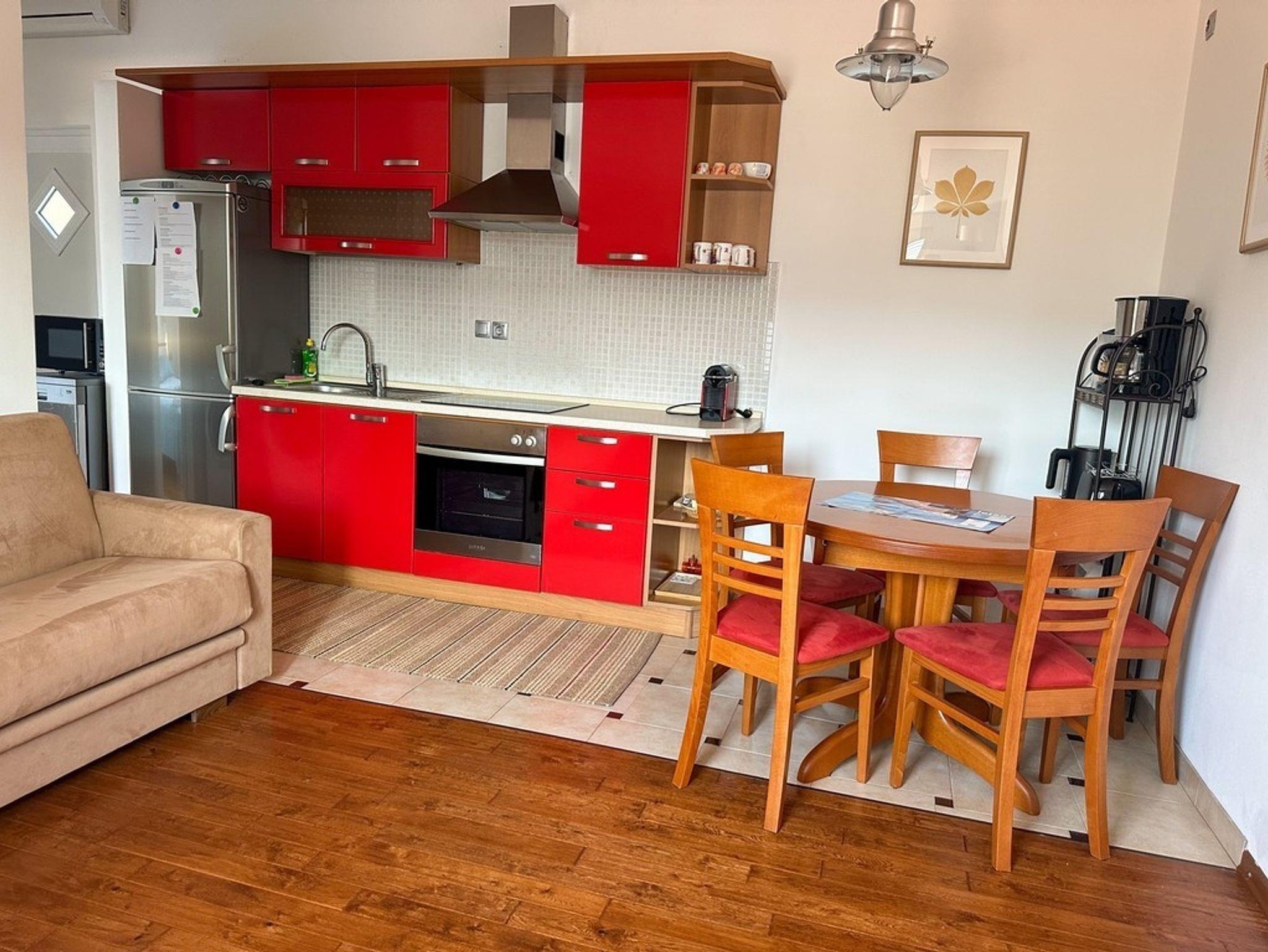 Ferienwohnung bietet Platz für 4 Gäste. Die Betten sind in Schlafzimmern, die es 1 gibt, und in Wohnzimmer, innerhalb einer Gesamtfläche von 47m2, angeordnet. Die Gäste haben eine eigene Terrasse zur Verfügung, auf der sie in warmen Sommernächten genießen können. Das Apartment bietet Meerblick. Für vollen Genuss und Entspannung gibt es einen privaten Grill für Gäste dieser Unterkunft. In der Unterkunftseinheit besteht die Möglichkeit des Mitbringens von Haustieren gegen Aufpreis. IM PREIS INBEGRIFFEN: Kurtaxe, Endreinigung, Klimatisierung, Parkplatz, Internet, Bügeleisen, Bügelbrett, Föhn. UNVERBINDLICHE ZUSÄTZLICHE KOSTEN: Haustiere (10,00 € pro Nacht). Die Verfügbarkeit zusätzlicher Dienstleistungen in Ihrem reservierten Termin und die Preise derselben (falls nicht aufgeführt) müssen im Voraus überprüft werden. Zusätzliche Dienstleistungen die in der Zahlungsaufforderung nicht aufgeführt sind werden direkt beim Vermieter bezahlt, angenommen der Gast nutzt auch diese. Ermäßigung auf den Grundpreis: Gratistag 14=13 (bei einem Aufenthalt von 14 Tagen oder mehr erhalten Sie einen Gratistag für den Aufenthalt bis 31.12.26).
