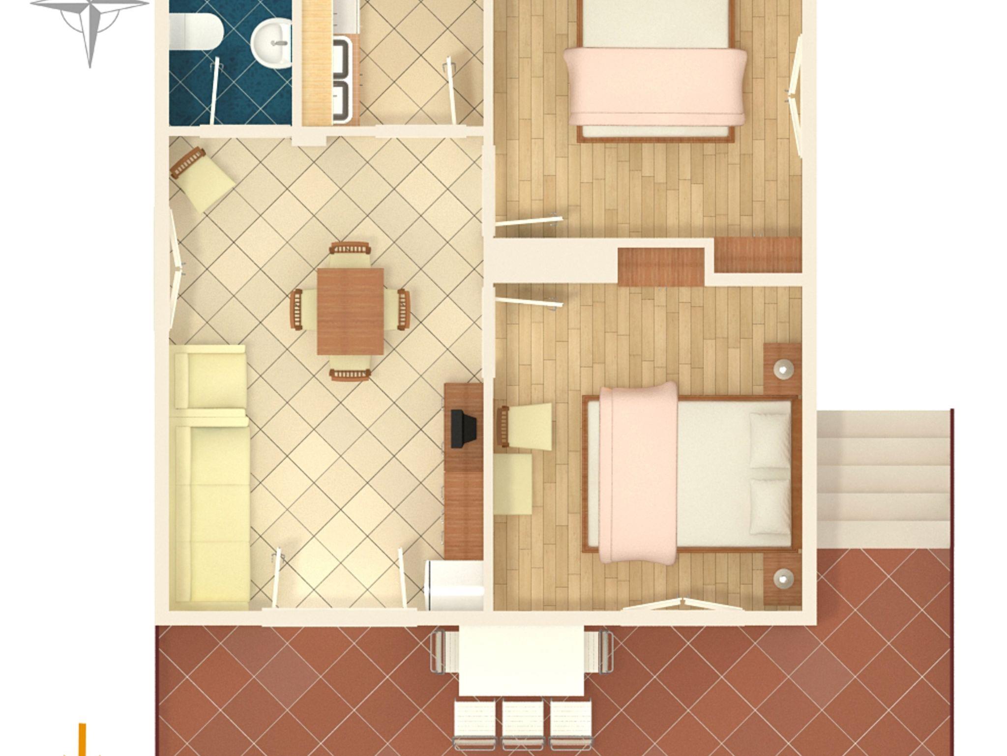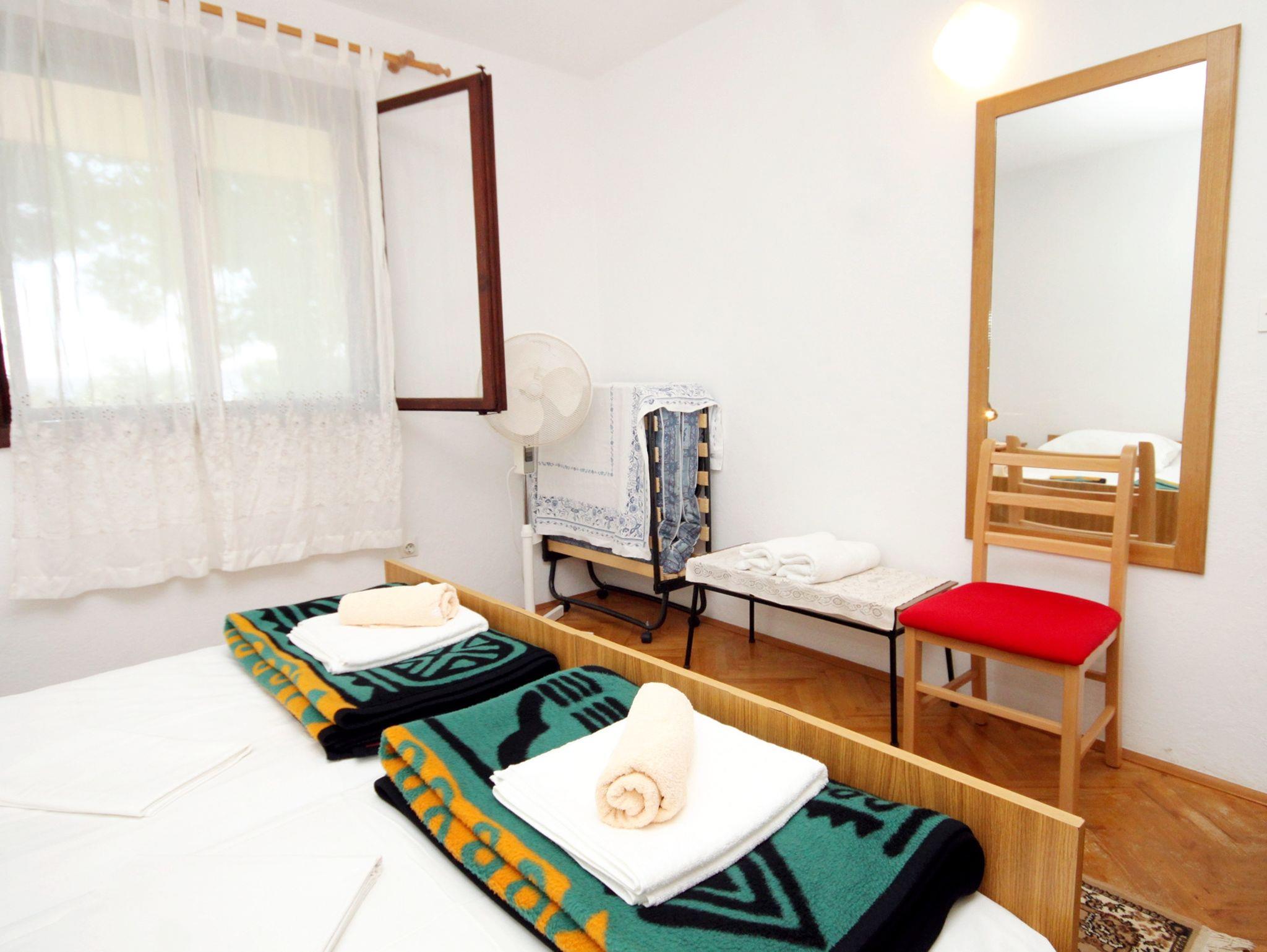 Ferienwohnung bietet Platz für 5 Gäste. Die Betten sind in Schlafzimmern, die es 2 gibt, innerhalb einer Gesamtfläche von 46m2, angeordnet. Die Gäste haben eine eigene Terrasse zur Verfügung, auf der sie in warmen Sommernächten genießen können. Das Apartment bietet Meerblick. Es ist erlaubt, Speisen auf dem Gemeinschafts-Grill vorzubereiten. In der Unterkunftseinheit besteht die Möglichkeit des Mitbringens von Haustieren, und die Dienstleistung ist im Preis der Unterkunft enthalten. IM PREIS INBEGRIFFEN: Kurtaxe, Endreinigung, Klimatisierung, Parkplatz, Internet, Haustiere, Bügeleisen, Bügelbrett, Föhn. Die Verfügbarkeit zusätzlicher Dienstleistungen in Ihrem reservierten Termin und die Preise derselben (falls nicht aufgeführt) müssen im Voraus überprüft werden. Zusätzliche Dienstleistungen die in der Zahlungsaufforderung nicht aufgeführt sind werden direkt beim Vermieter bezahlt, angenommen der Gast nutzt auch diese. Ermäßigung auf den Grundpreis: Gratistag 14=13 (bei einem Aufenthalt von 14 Tagen oder mehr erhalten Sie einen Gratistag für den Aufenthalt bis 31.12.26).