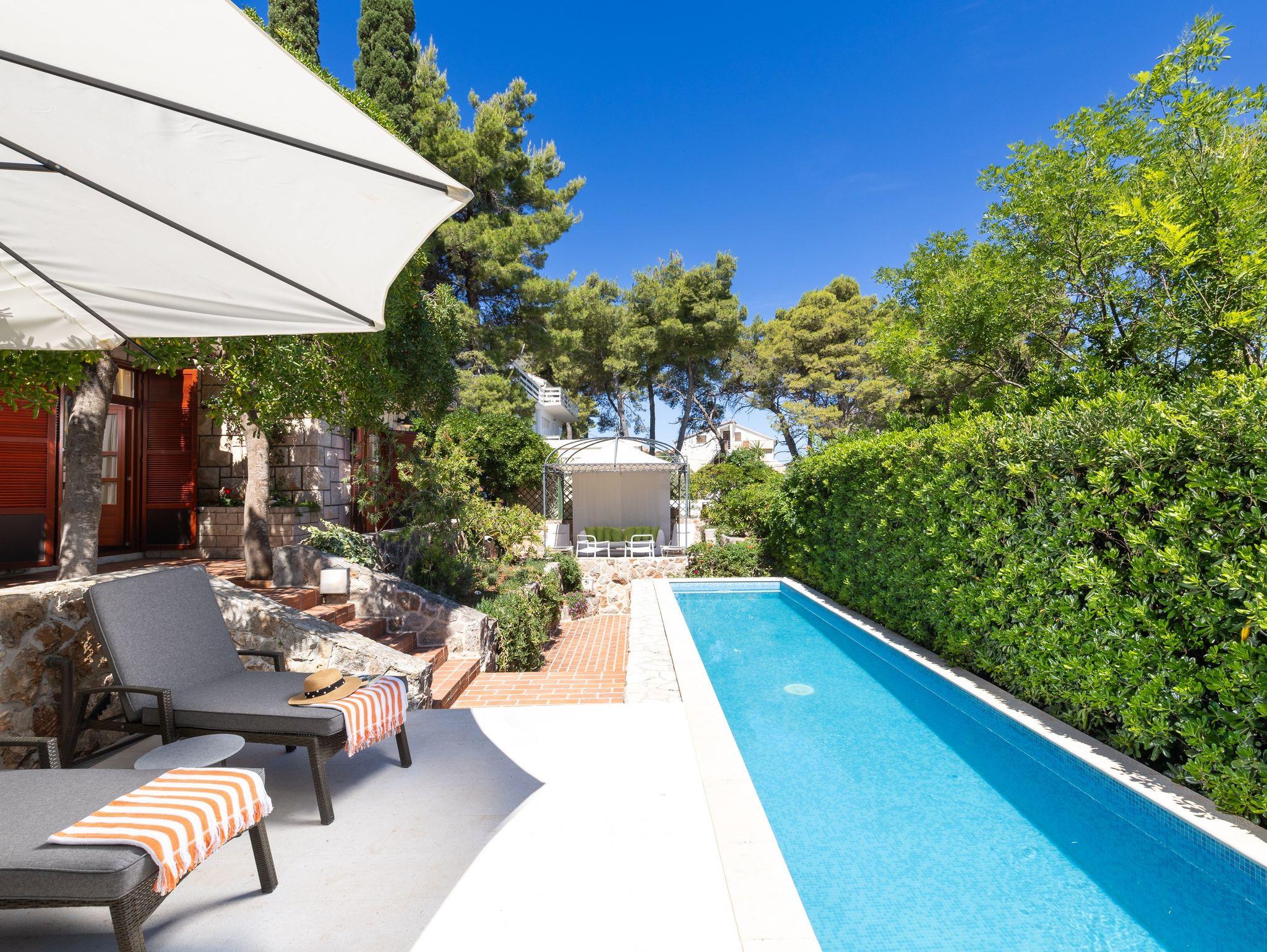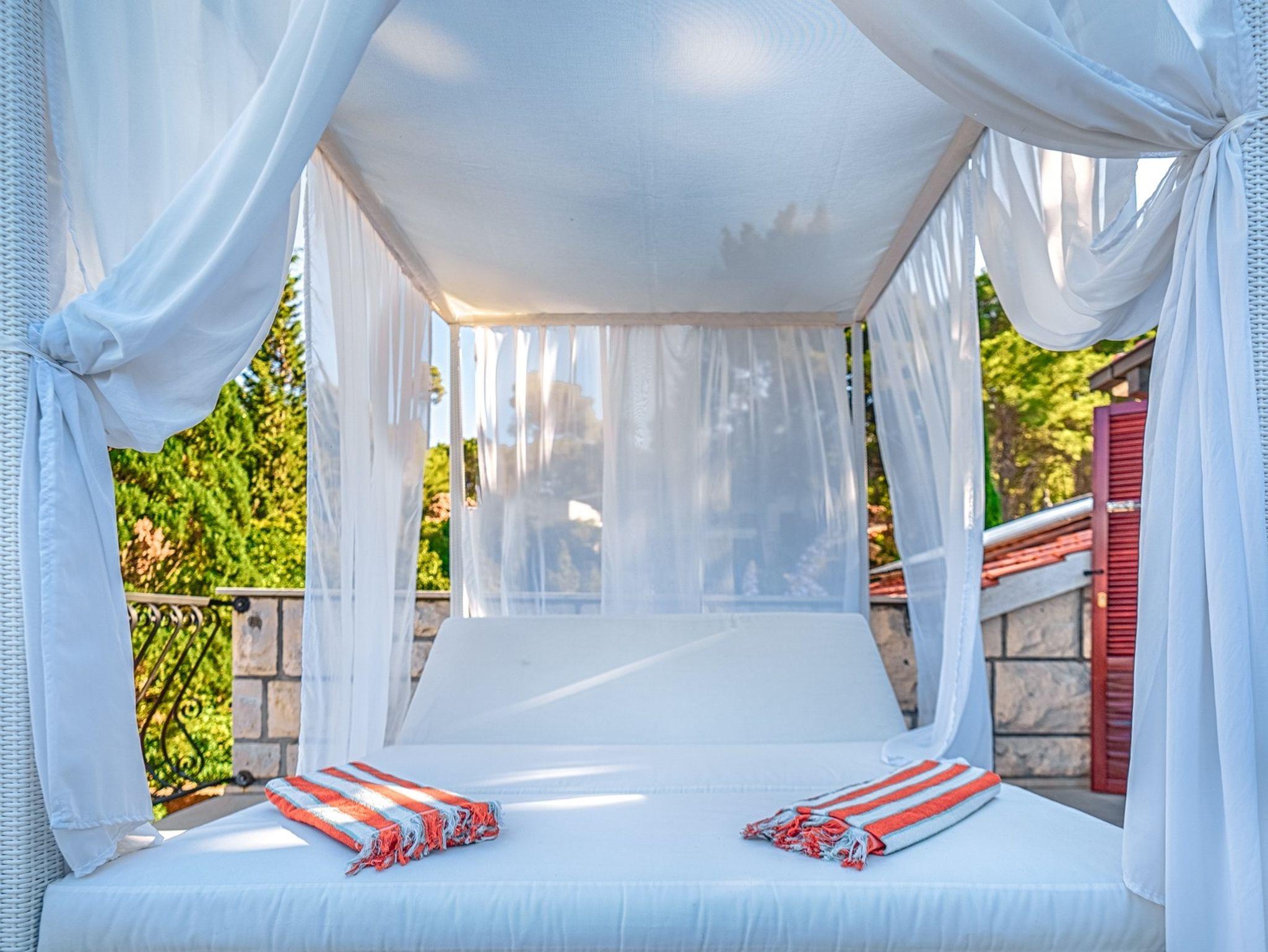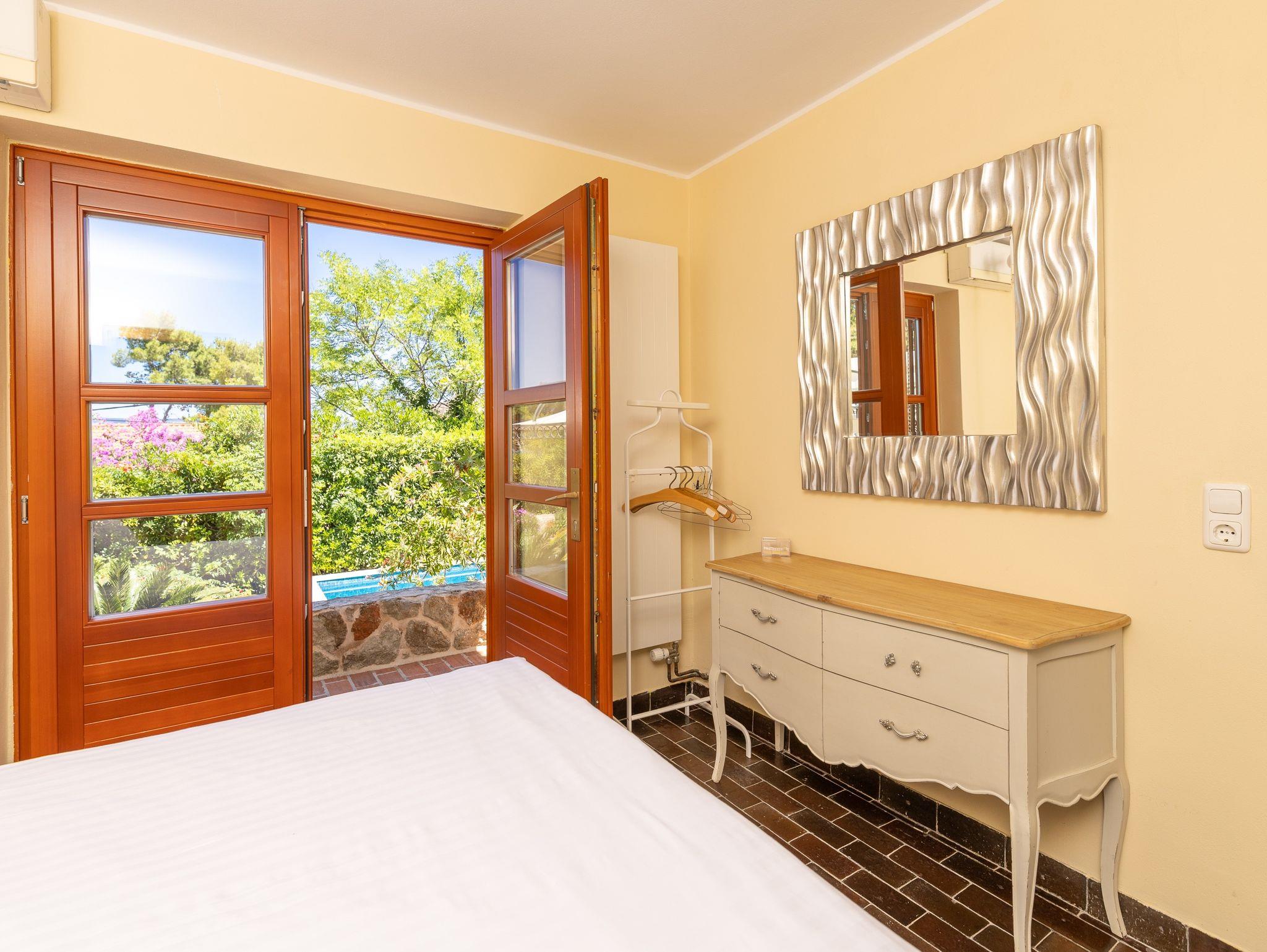 Haus bietet Platz für 8 Gäste. Die Betten sind in Schlafzimmern, die es 4 gibt, innerhalb einer Gesamtfläche von 125m2, angeordnet. Die Gäste haben eine eigene Terrasse zur Verfügung, auf der sie in warmen Sommernächten genießen können. Das Haus bietet Meerblick. Für vollen Genuss und Entspannung gibt es einen privaten Grill für Gäste dieser Unterkunft. Während ihres Aufenthalts können sich Gäste im privaten Schwimmbad entspannen. IM PREIS INBEGRIFFEN: Kurtaxe, Endreinigung, Klimatisierung, Pool, Parkplatz, Internet, Kinderbett, Bügeleisen, Bügelbrett, Föhn. Die Verfügbarkeit zusätzlicher Dienstleistungen in Ihrem reservierten Termin und die Preise derselben (falls nicht aufgeführt) müssen im Voraus überprüft werden. Zusätzliche Dienstleistungen die in der Zahlungsaufforderung nicht aufgeführt sind werden direkt beim Vermieter bezahlt, angenommen der Gast nutzt auch diese.
