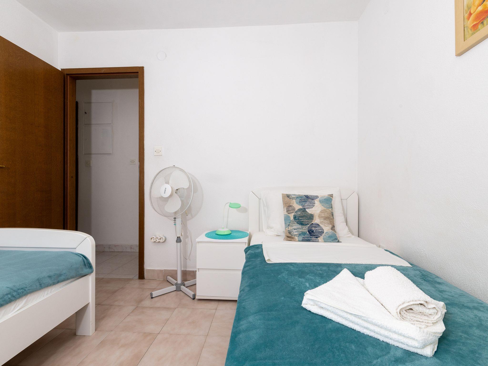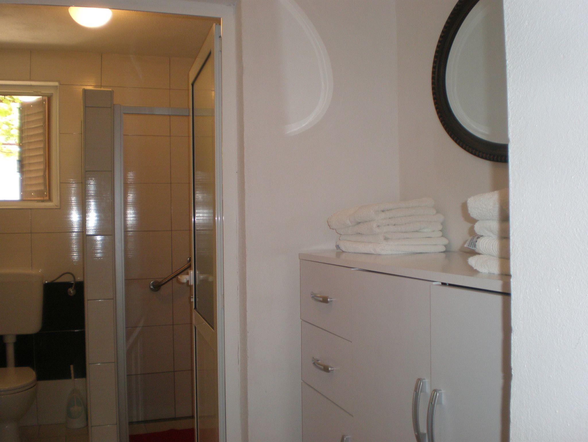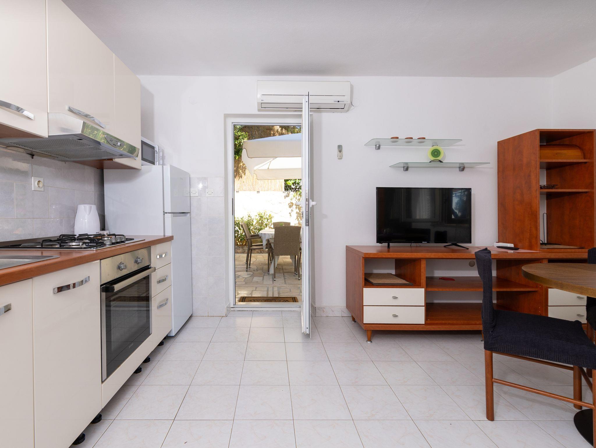 Ferienwohnung bietet Platz für 5 Gäste. Die Betten sind in Schlafzimmern, die es 2 gibt, und in Esszimmer, innerhalb einer Gesamtfläche von 43m2, angeordnet. Die Gäste haben eine eigene Terrasse zur Verfügung, auf der sie in warmen Sommernächten genießen können. Das Apartment bietet Meerblick. Für vollen Genuss und Entspannung gibt es einen privaten Grill für Gäste dieser Unterkunft. IM PREIS INBEGRIFFEN: Kurtaxe, Endreinigung, Klimatisierung, Parkplatz, Internet, Wäschewaschen, Kinderbett, Bügeleisen, Bügelbrett, Föhn. VERBINDLICHE ZUSÄTZLICHE KOSTEN: Aufzahlung für Kurzaufenthalte (prozentualer Zuschlag pro Nächtigungsanzahl: 30% - 1, 20% - 2, 10% - 3). Die Verfügbarkeit zusätzlicher Dienstleistungen in Ihrem reservierten Termin und die Preise derselben (falls nicht aufgeführt) müssen im Voraus überprüft werden. Zusätzliche Dienstleistungen die in der Zahlungsaufforderung nicht aufgeführt sind werden direkt beim Vermieter bezahlt, angenommen der Gast nutzt auch diese. Ermäßigung auf den Grundpreis: Gratistag 21=19 (bei einem Aufenthalt von 21 Tagen oder mehr erhalten Sie 2 Gratistage für den Aufenthalt bis 31.12.26).