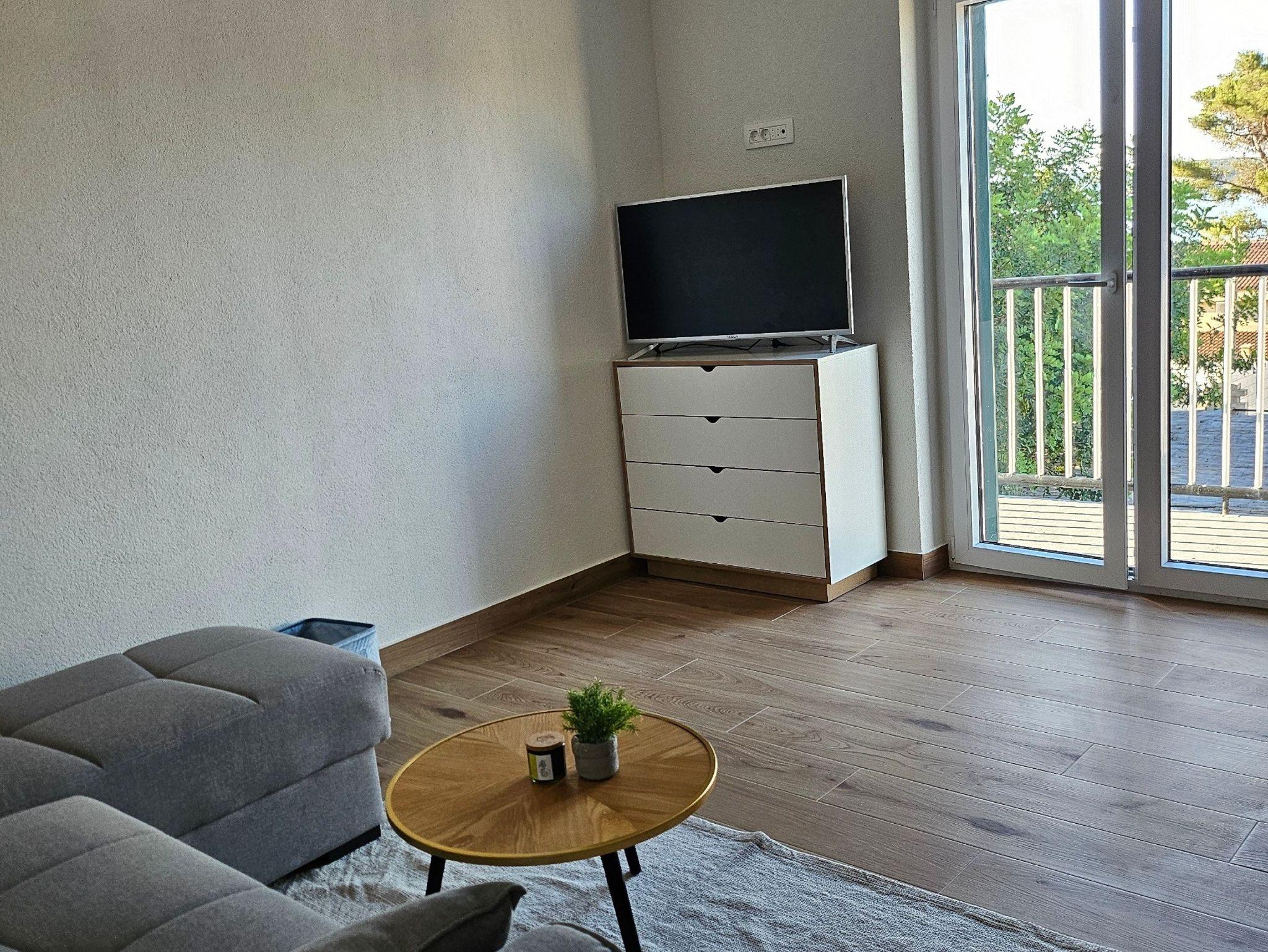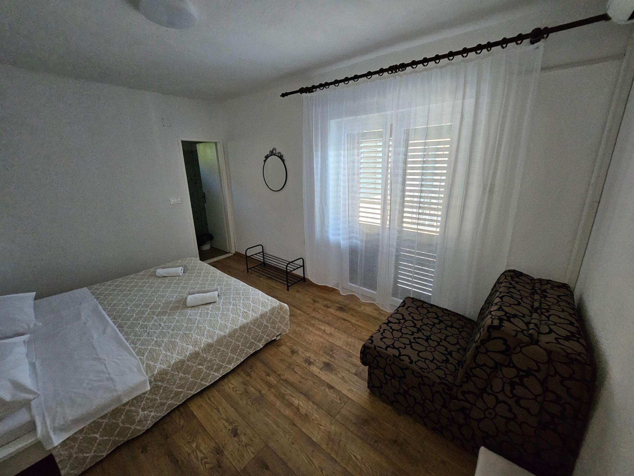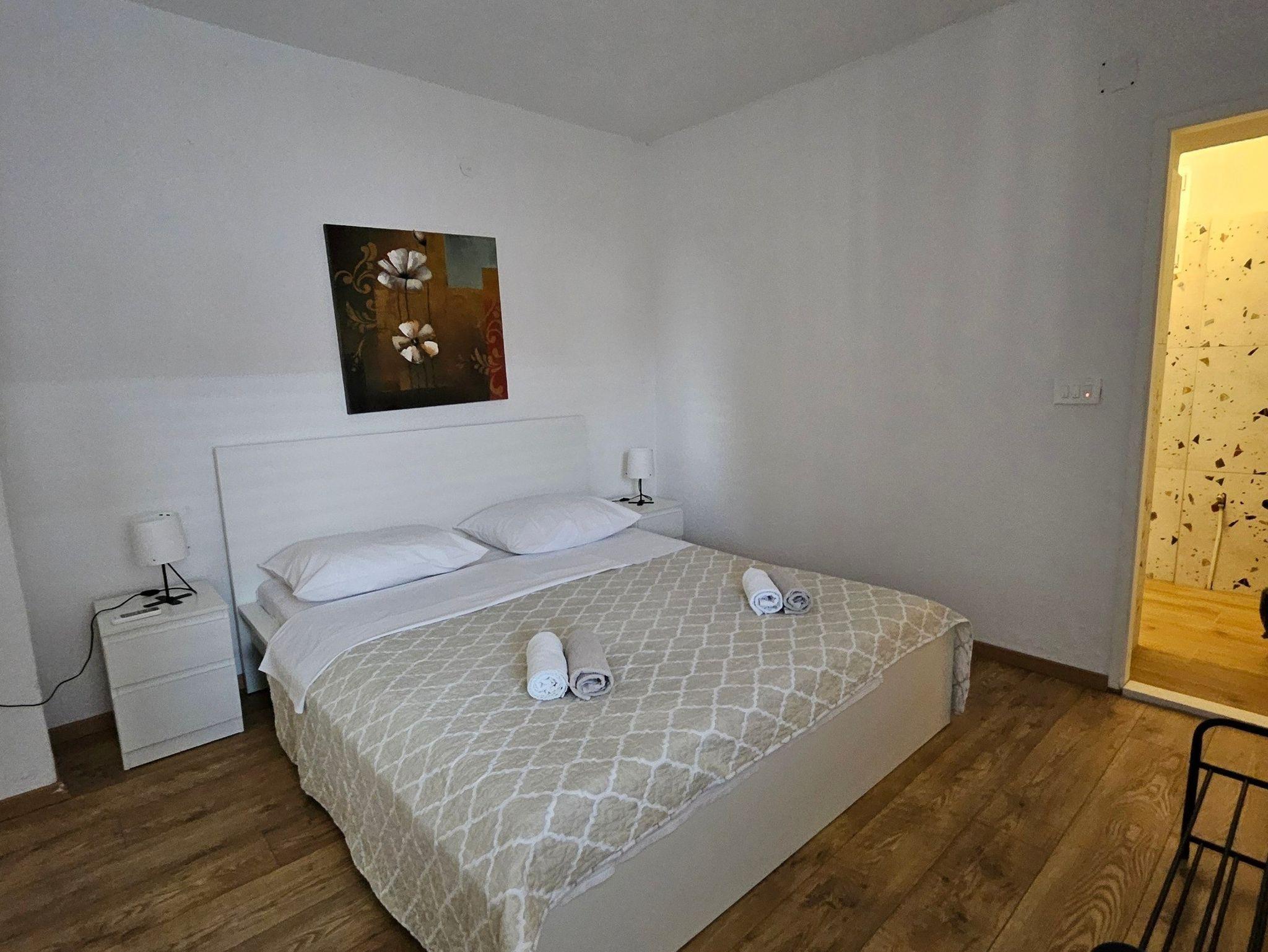 Ferienwohnung bietet Platz für 4 Gäste. Die Betten sind in Schlafzimmern, die es 1 gibt, und in Wohnzimmer, innerhalb einer Gesamtfläche von 34m2, angeordnet. Die Gäste haben einen eigenen Balkon zur Verfügung, auf der sie in warmen Sommernächten genießen können. Das Apartment bietet Meerblick. IM PREIS INBEGRIFFEN: Kurtaxe, Endreinigung, Klimatisierung, Parkplatz, Internet, Föhn. VERBINDLICHE ZUSÄTZLICHE KOSTEN: Aufzahlung für Kurzaufenthalte (prozentualer Zuschlag pro Nächtigungsanzahl: 30% - 1, 20% - 2, 10% - 3). UNVERBINDLICHE ZUSÄTZLICHE KOSTEN: Wäschewaschen (5,00 € Waschen). Die Verfügbarkeit zusätzlicher Dienstleistungen in Ihrem reservierten Termin und die Preise derselben (falls nicht aufgeführt) müssen im Voraus überprüft werden. Zusätzliche Dienstleistungen die in der Zahlungsaufforderung nicht aufgeführt sind werden direkt beim Vermieter bezahlt, angenommen der Gast nutzt auch diese. Ermäßigung auf den Grundpreis: Gratistag 14=13 (bei einem Aufenthalt von 14 Tagen oder mehr erhalten Sie einen Gratistag für den Aufenthalt bis 31.12.26).