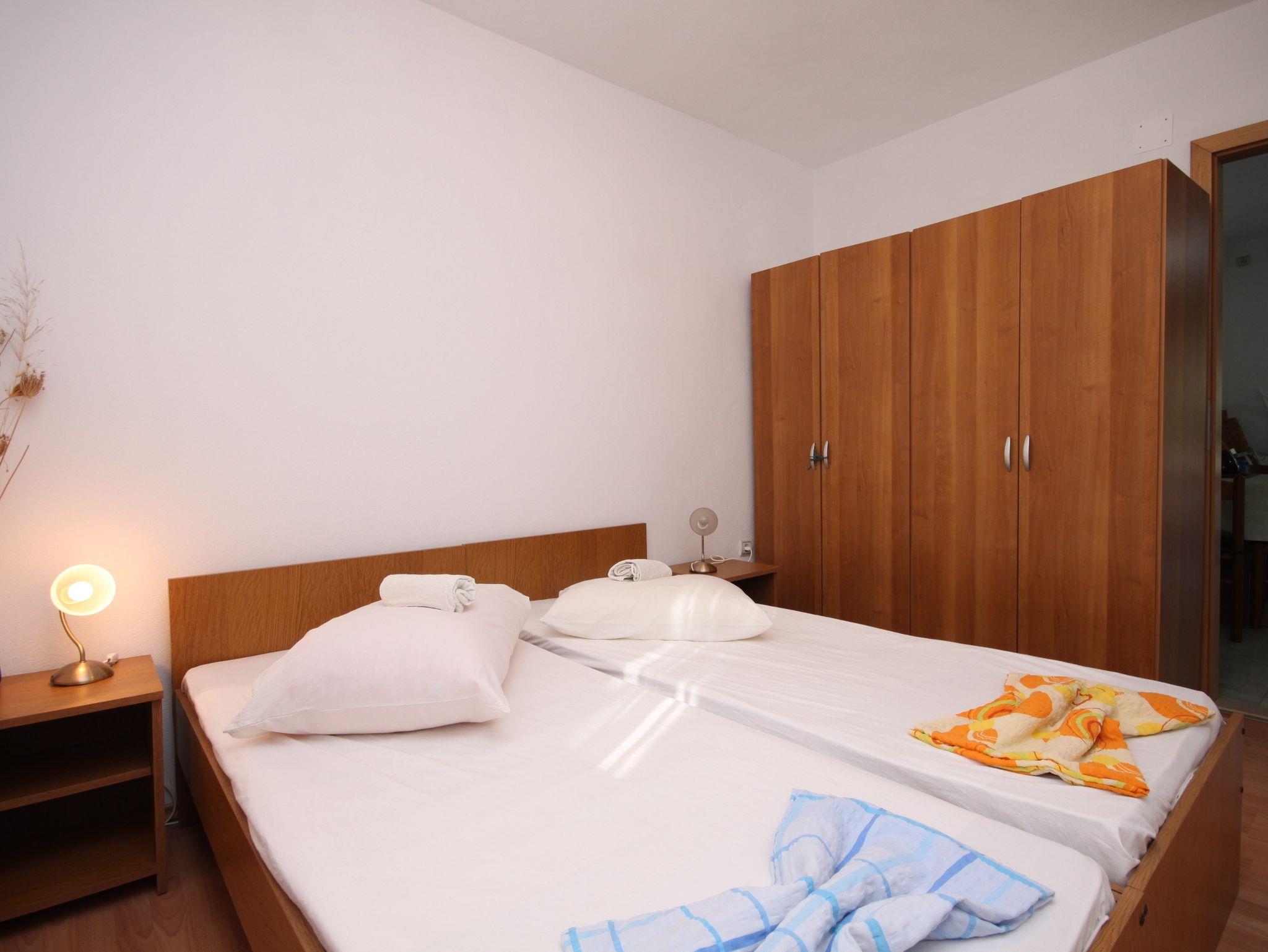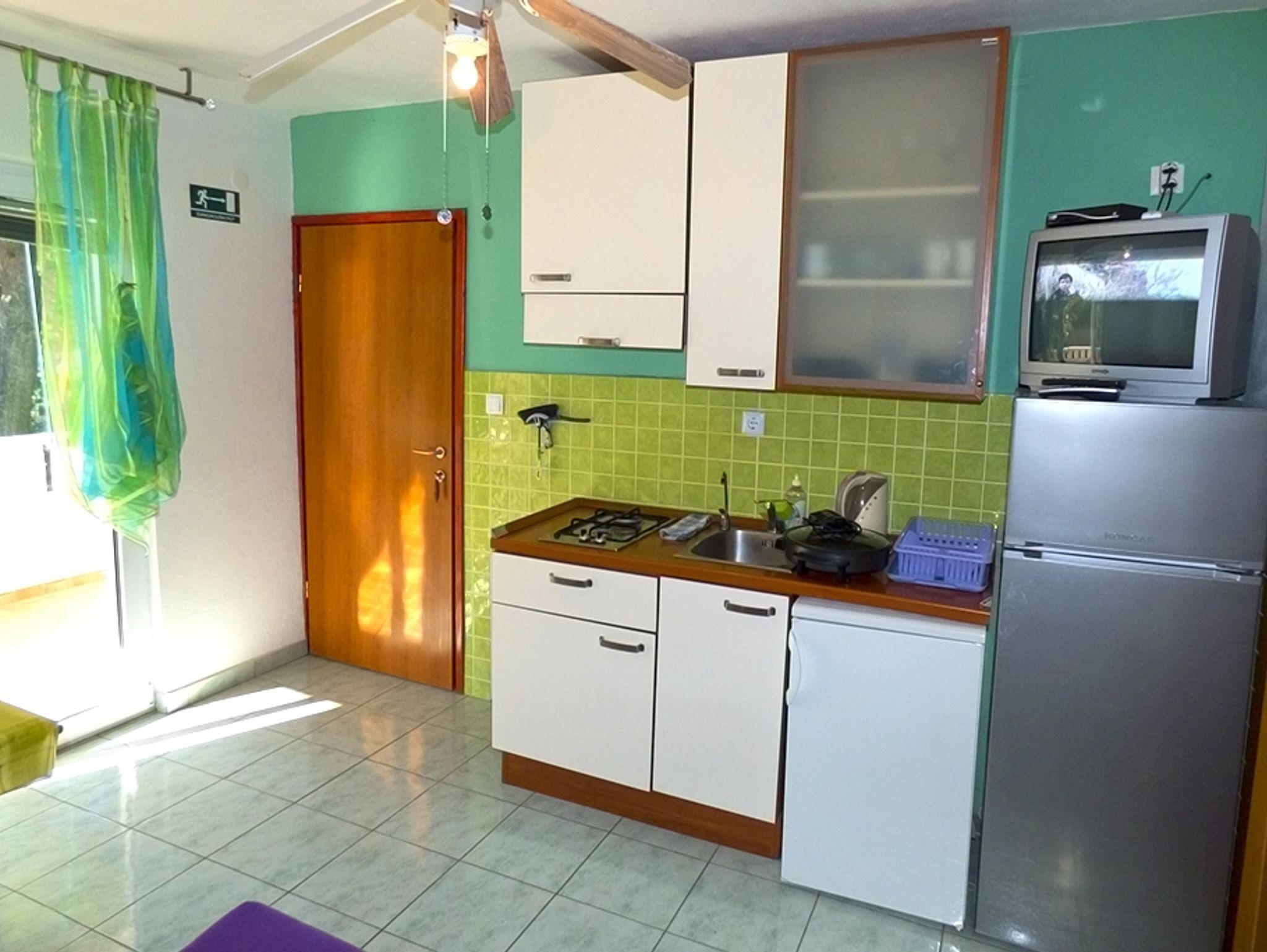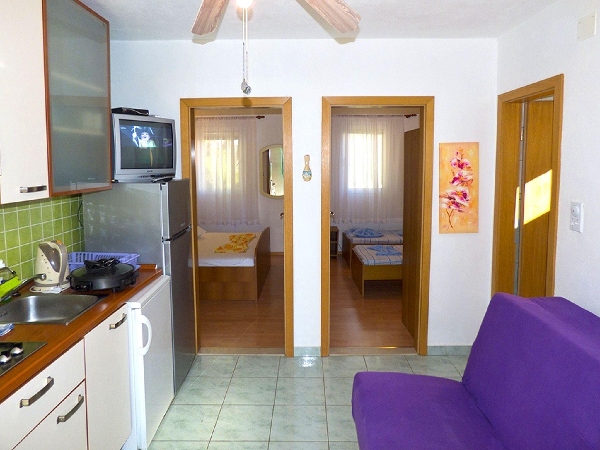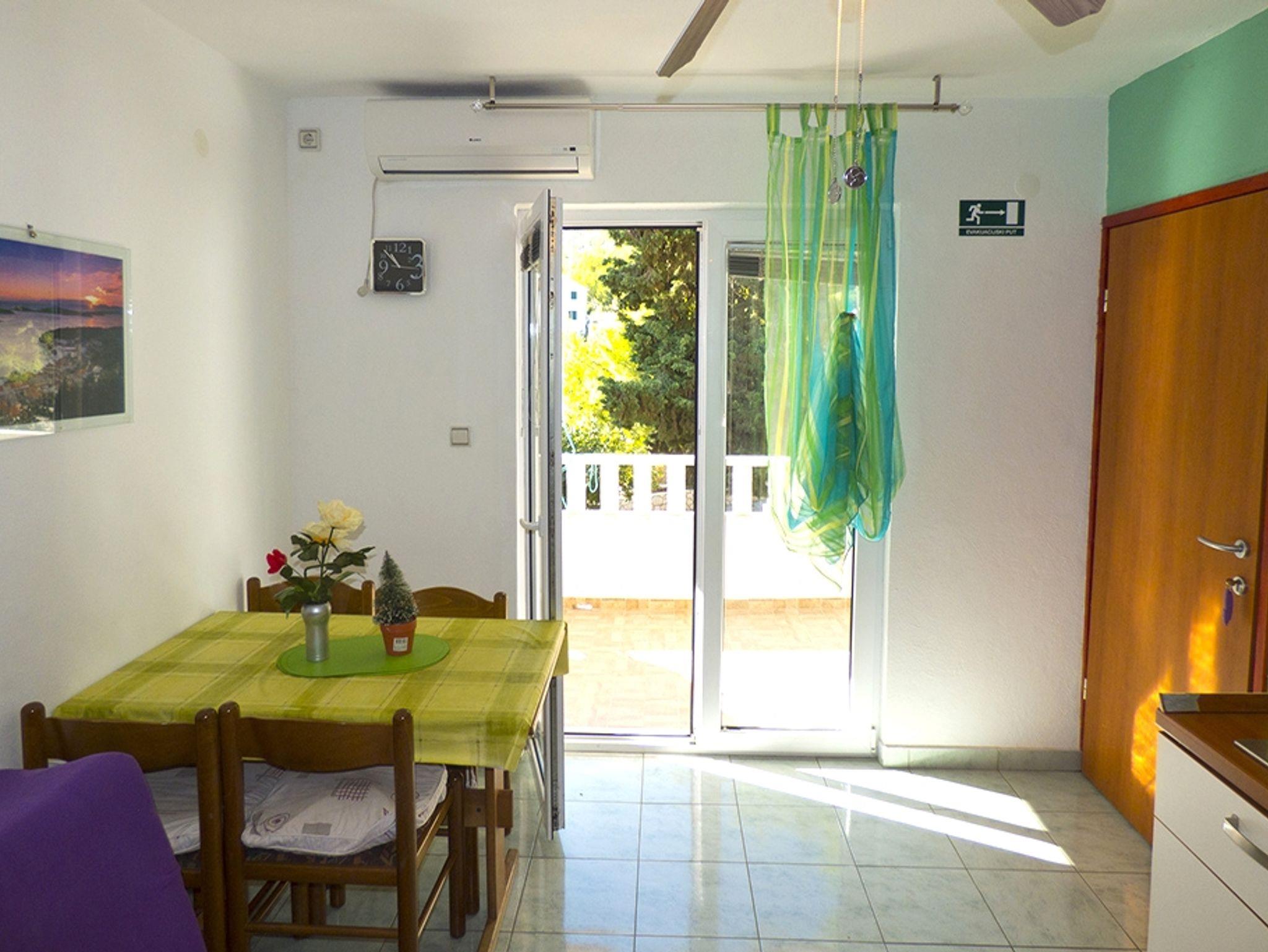 Ferienwohnung bietet Platz für 5 Gäste. Die Betten sind in Schlafzimmern, die es 2 gibt, und in Esszimmer, innerhalb einer Gesamtfläche von 33m2, angeordnet. Die Gäste haben eine eigene Terrasse zur Verfügung, auf der sie in warmen Sommernächten genießen können. Das Apartment bietet Meerblick. Es ist erlaubt, Speisen auf dem Gemeinschafts-Grill vorzubereiten. In der Unterkunftseinheit besteht die Möglichkeit des Mitbringens von Haustieren gegen Aufpreis. IM PREIS INBEGRIFFEN: Kurtaxe, Endreinigung, Klimatisierung, Parkplatz, Internet, Bügeleisen, Bügelbrett, Föhn. VERBINDLICHE ZUSÄTZLICHE KOSTEN: Aufzahlung für Kurzaufenthalte (prozentualer Zuschlag pro Nächtigungsanzahl: 30% - 1, 20% - 2, 10% - 3). UNVERBINDLICHE ZUSÄTZLICHE KOSTEN: Wäschewaschen (5,00 € Waschen), Bootsanlegeplatz (10,00 € pro Nacht), Haustiere (5,00 € pro Nacht). Die Verfügbarkeit zusätzlicher Dienstleistungen in Ihrem reservierten Termin und die Preise derselben (falls nicht aufgeführt) müssen im Voraus überprüft werden. Zusätzliche Dienstleistungen die in der Zahlungsaufforderung nicht aufgeführt sind werden direkt beim Vermieter bezahlt, angenommen der Gast nutzt auch diese.
