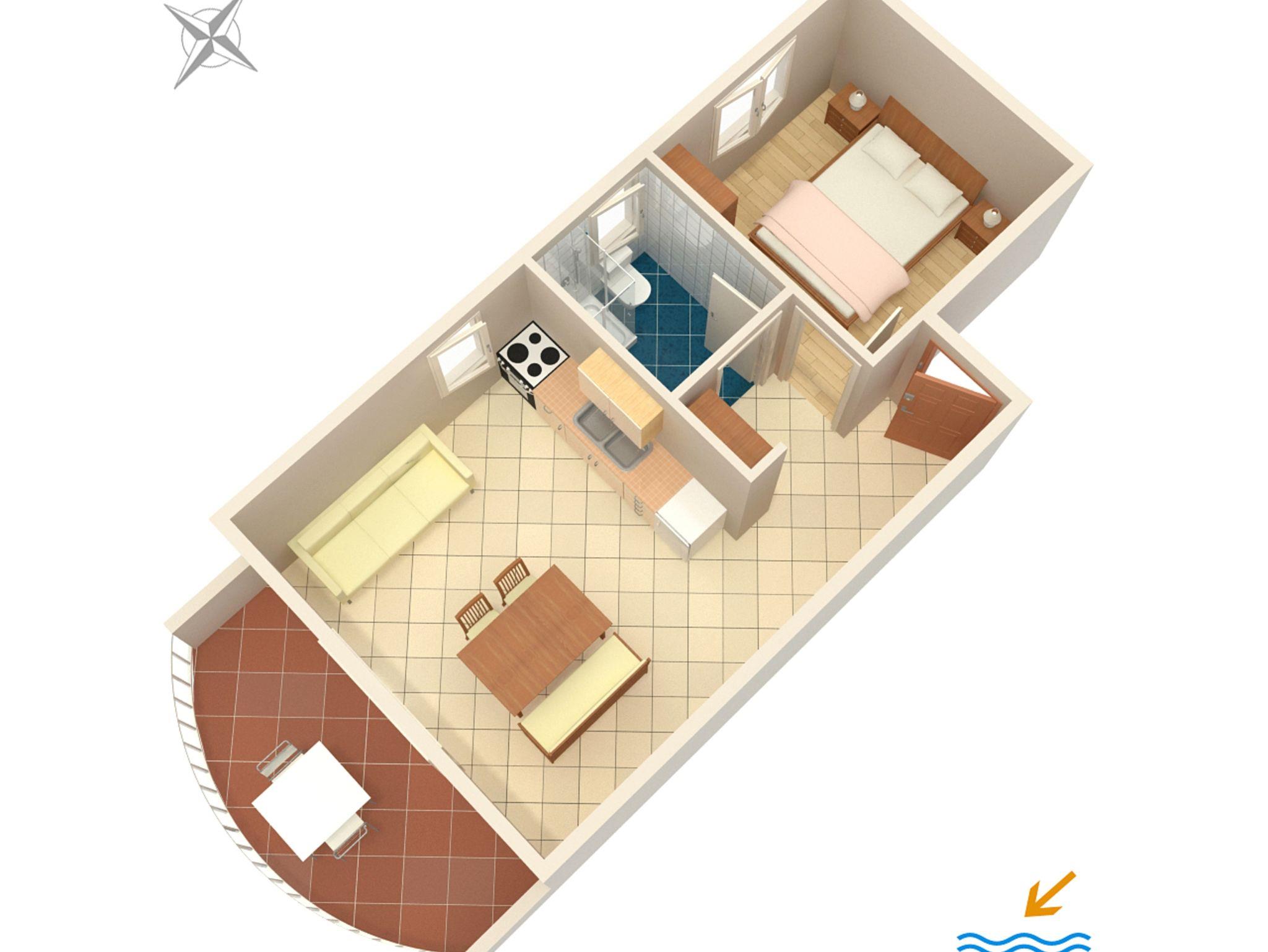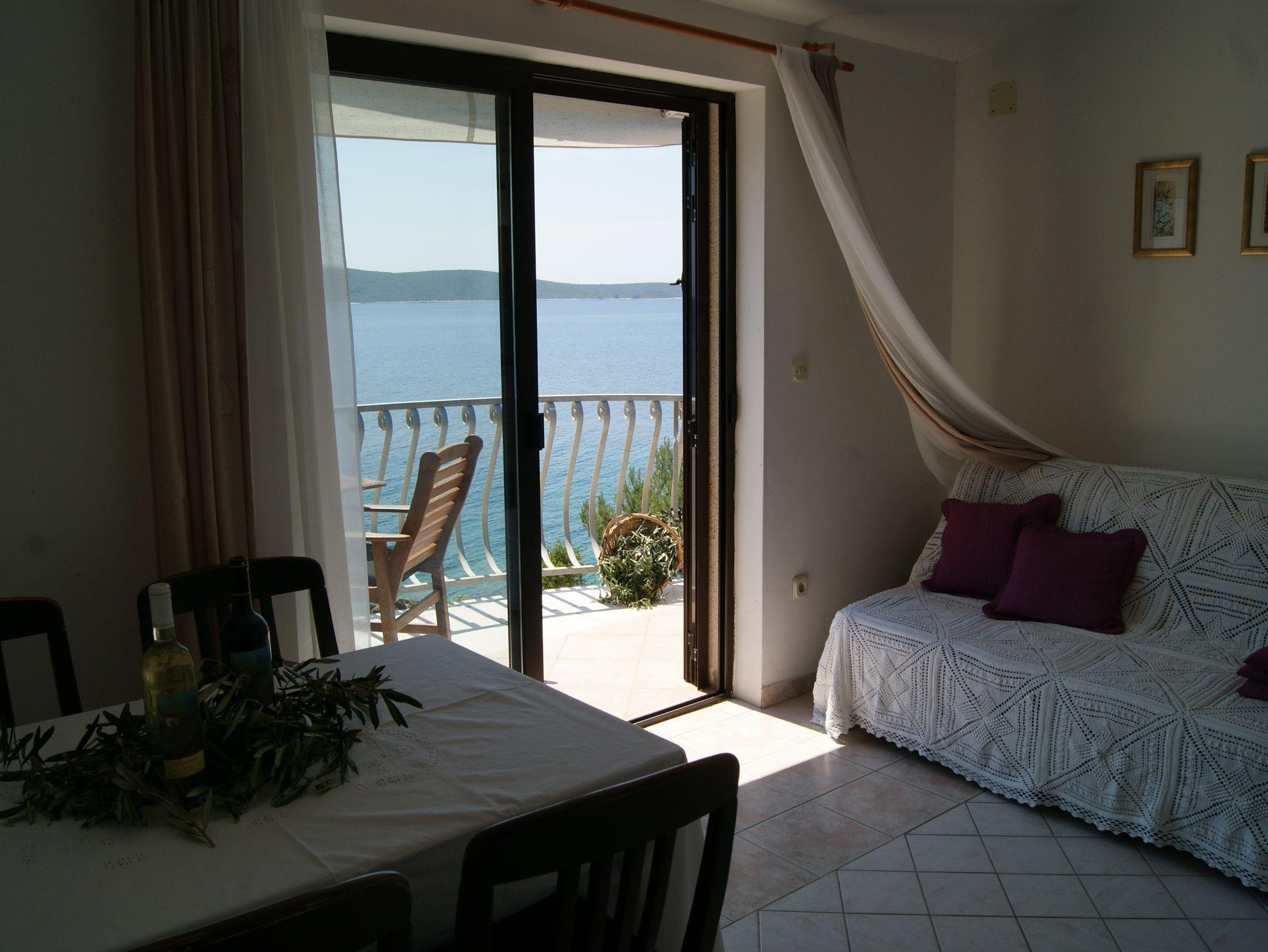 Ferienwohnung bietet Platz für 2 Gäste. Die Betten sind in Schlafzimmern, die es 1 gibt, innerhalb einer Gesamtfläche von 31m2, angeordnet. Die Gäste haben eine eigene Terrasse zur Verfügung, auf der sie in warmen Sommernächten genießen können. Das Apartment bietet Meerblick. Es ist erlaubt, Speisen auf dem Gemeinschafts-Grill vorzubereiten. In der Unterkunftseinheit besteht die Möglichkeit des Mitbringens von Haustieren gegen Aufpreis. IM PREIS INBEGRIFFEN: Kurtaxe, Endreinigung, Klimatisierung, Zentralheizung, Parkplatz, Internet, Wäschewaschen, Bootsanlegeplatz, Bügeleisen, Bügelbrett, Föhn. VERBINDLICHE ZUSÄTZLICHE KOSTEN: Aufzahlung für Kurzaufenthalte (prozentualer Zuschlag pro Nächtigungsanzahl: 30% - 1, 20% - 2, 10% - 3). UNVERBINDLICHE ZUSÄTZLICHE KOSTEN: Haustiere (10,00 € pro Nacht). Die Verfügbarkeit zusätzlicher Dienstleistungen in Ihrem reservierten Termin und die Preise derselben (falls nicht aufgeführt) müssen im Voraus überprüft werden. Zusätzliche Dienstleistungen die in der Zahlungsaufforderung nicht aufgeführt sind werden direkt beim Vermieter bezahlt, angenommen der Gast nutzt auch diese.