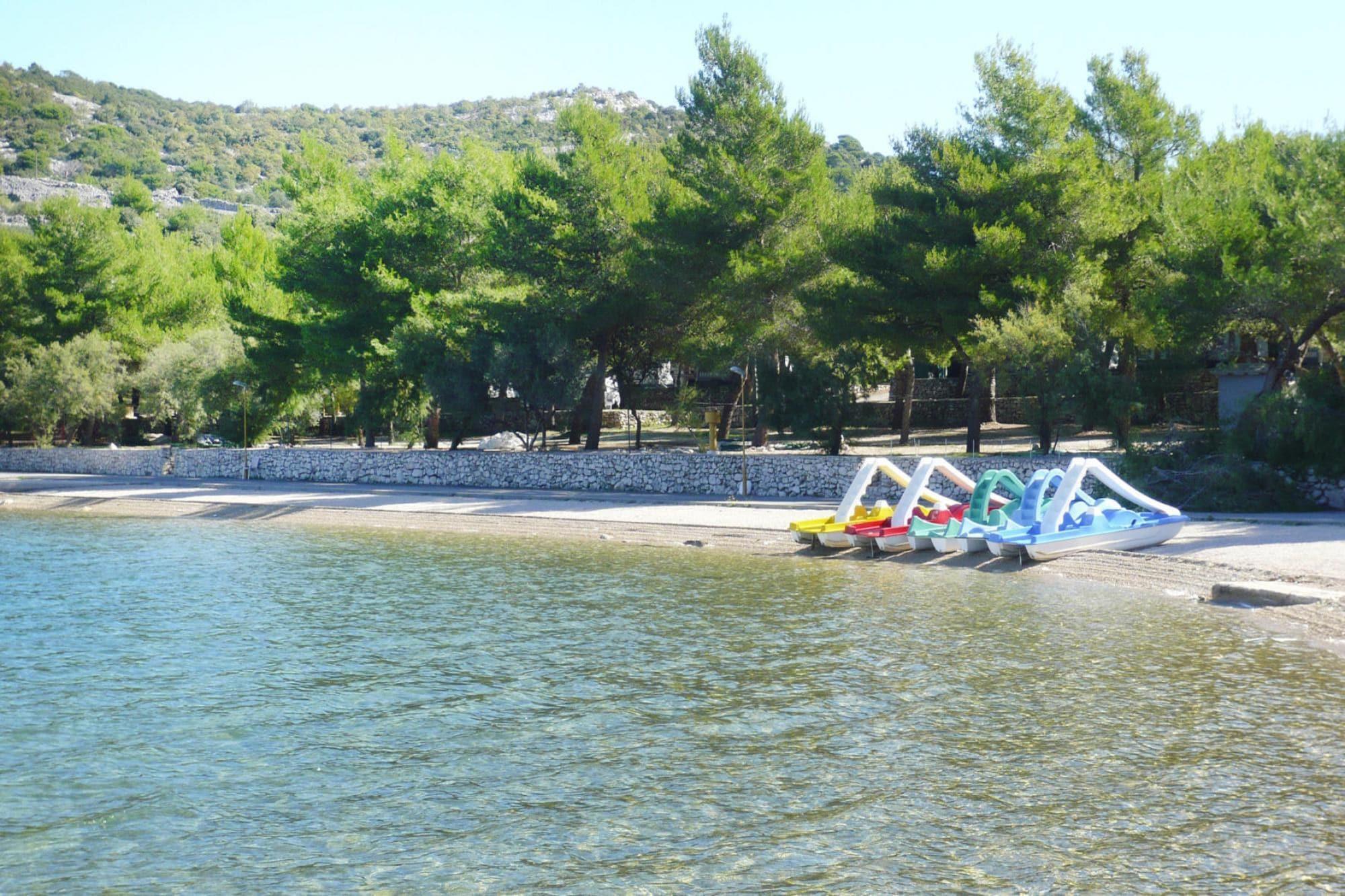 I skyggen af fyrretræerne smelter lejlighedskomplekset harmonisk ind i miljøet og inviterer dig til at tilbringe en uforglemmelig ferie. Der er kun 50 meter mellem dit praktisk indrettede feriehus og den smukke bugt med det let skrånende hav - en ideel adresse til en ubekymret familieferie. Resortets omfattende fritidstilbud garanterer dig så meget variation, du vil hver dag, i de to restauranter kan du nyde kulinariske lækkerier og glemme hverdagen. Hvis du vil trække dig tilbage til privatlivet ind imellem, kan du også selv lave mad i tekøkkenet i din lejlighed. Du kan nemt få råvarerne i supermarkedet, som også ligger på resortets grund. Jereza er omkring 3 kilometer fra fastlandet, let tilgængelig via en kun 30 meter lang bro og er synonym med Dalmatiens skønhed. Det krystalklare vand, det originale middelhavsnaturlandskab og de mange fritids- og underholdningsmuligheder gør stedet meget populært blandt feriegæster. Fra sognekirkens kirketårn har man en smuk udsigt over stedet og skærgården. Det let skrånende hav i de smukke bugter er ideelt til en badeferie med familien. I sommermånederne afrunder traditionel folklore og fiskefestivaler de kulturelle tilbud. inkluderet: energiomkostninger, sengelinned, håndklæder, slutrengøring, registreringsgebyr. Mobilitet: Ikke egnet til personer med begrænset mobilitet.