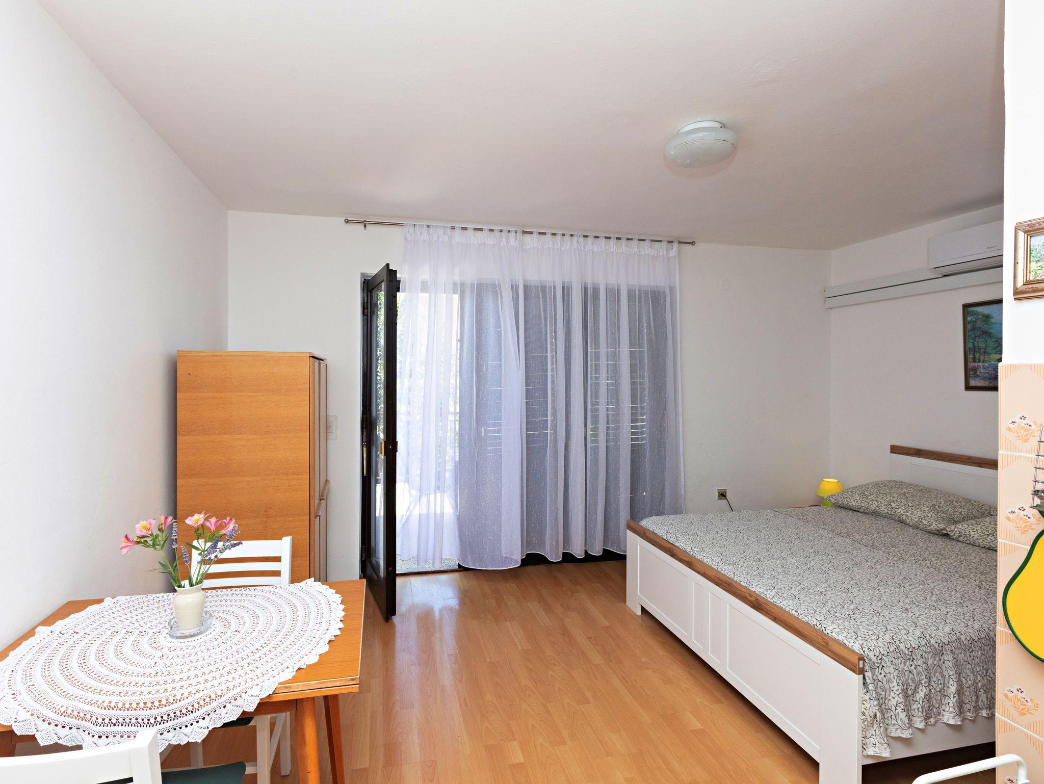 Studio bietet Platz für 2 Gäste. Die Betten sind in Schlafzimmern, die es 1 gibt, innerhalb einer Gesamtfläche von 22m2, angeordnet. Die Gäste haben eine eigene Terrasse zur Verfügung, auf der sie in warmen Sommernächten genießen können. Es ist erlaubt, Speisen auf dem Gemeinschafts-Grill vorzubereiten. IM PREIS INBEGRIFFEN: Kurtaxe, Endreinigung, Klimatisierung, Parkplatz, Internet, tragbarer Grill. VERBINDLICHE ZUSÄTZLICHE KOSTEN: Aufzahlung für Kurzaufenthalte (prozentualer Zuschlag pro Nächtigungsanzahl: 30% - 1, 20% - 2, 10% - 3). Die Verfügbarkeit zusätzlicher Dienstleistungen in Ihrem reservierten Termin und die Preise derselben (falls nicht aufgeführt) müssen im Voraus überprüft werden. Zusätzliche Dienstleistungen die in der Zahlungsaufforderung nicht aufgeführt sind werden direkt beim Vermieter bezahlt, angenommen der Gast nutzt auch diese.