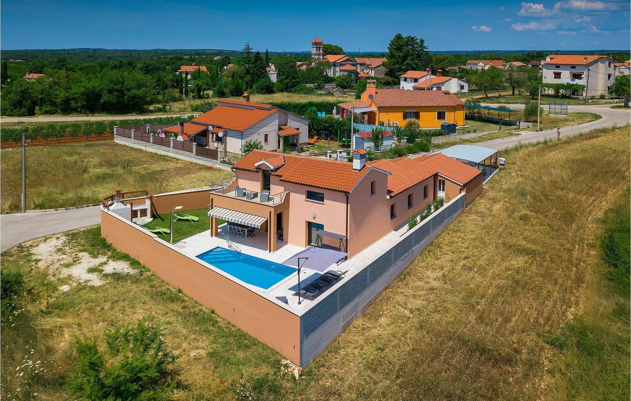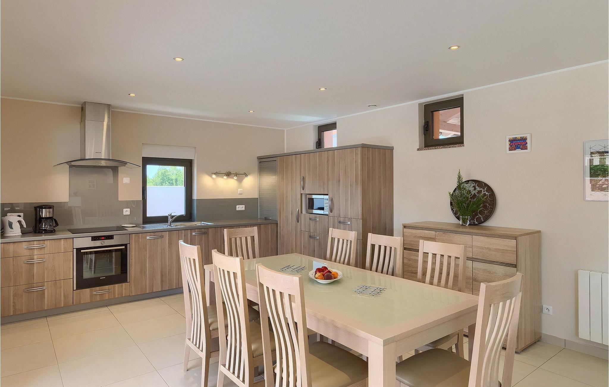 Dejlig villa Bienvenue byder velkommen til alle gæster, der ønsker at få et behageligt ophold i centrum af Istrien, et godt udgangspunkt for en stor mangfoldighed af udflugter. Villaen ligger på en 650 m2 stor grund med plads til 8 gæster. Den består af 4 soveværelser, alle med en dobbeltseng. Stueetagen består af en rummelig stue, et fuldt udstyret køkken med alt hvad du kan få brug for under dit ophold, samt 2 soveværelser og et badeværelse med bruser. De resterende 2 soveværelser og et badeværelse med badekar er på øverste etage. Der er også en dejlig balkon med udsigt over de fredelige omgivelser i landsbyen Jursici. Den private pool i haven byder på forfriskning på varme sommerdage, mens den udendørs spiseplads repræsenterer det perfekte sted at samles og nyde al fresco-måltider tilberedt på kulgrillen. Landsbyen Juršici ligger i det sydlige område af det centrale Istrien, i Svetvincenat kommune. Istrien-regionen har uimodståelig gastronomi – trøfler, fuži (traditionel istrisk pasta), pršut (røget skinke), gedeost eller maneštra (traditionel istrisk grøntsagsgryderet) krydret med hjemmelavet olivenolie. Pula er den vigtigste regionale by i Istra med et fremragende udvalg af restauranter og et attraktivt shoppingområde. Gå en tur gennem Pula og oplev gaderne og pladserne i den gamle bydel, nogle af dem har været bevaret siden romertiden. Det fantastiske amfiteater går tilbage til det 1. århundrede e.Kr. og er det sjettestørste i verden. Byens centrum ligger omkring 10 minutters kørsel fra Pula lufthavn. Fažana er en lille kystby med en havn, hvorfra du kan tage en sejltur til en af de smukkeste nationalparker i Kroatien – Brioni. Fazana har en stor stenstrand med mulighed for adskillige vandsportsaktiviteter og aktiviteter. St. Vicenat (5 km væk) er en charmerende rolig by i det centrale Istrien. Denne by er centreret omkring en række smukt restaurerede kirker fra det 14. og 16. århundrede og den befæstede herregård. Der er også flere fremragende restauranter og caféer, og på det seneste er Vodnjan hurtigt ved at blive en af de bedste kulturelle byer i Istrien med begivenheder, der finder sted hver weekend. Rovinj med en 1700 år gammel historie – den smukkeste og mest luksuriøse turistby i Istra med en forbløffende gammel bymidte – en arkitektonisk perle. Det har storslåede bygninger og charmerende gader fyldt med små kunstgallerier, restauranter og caféer.