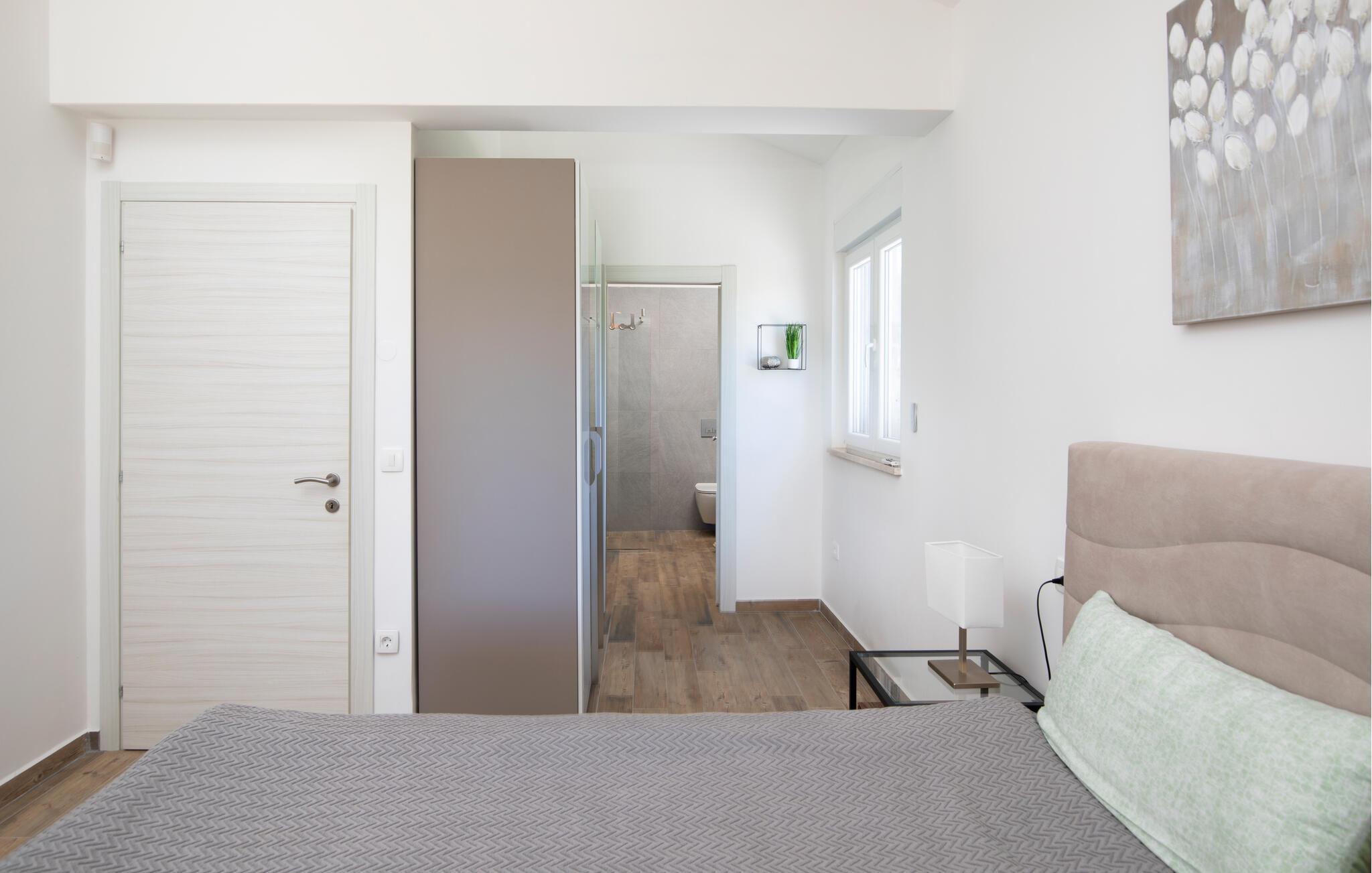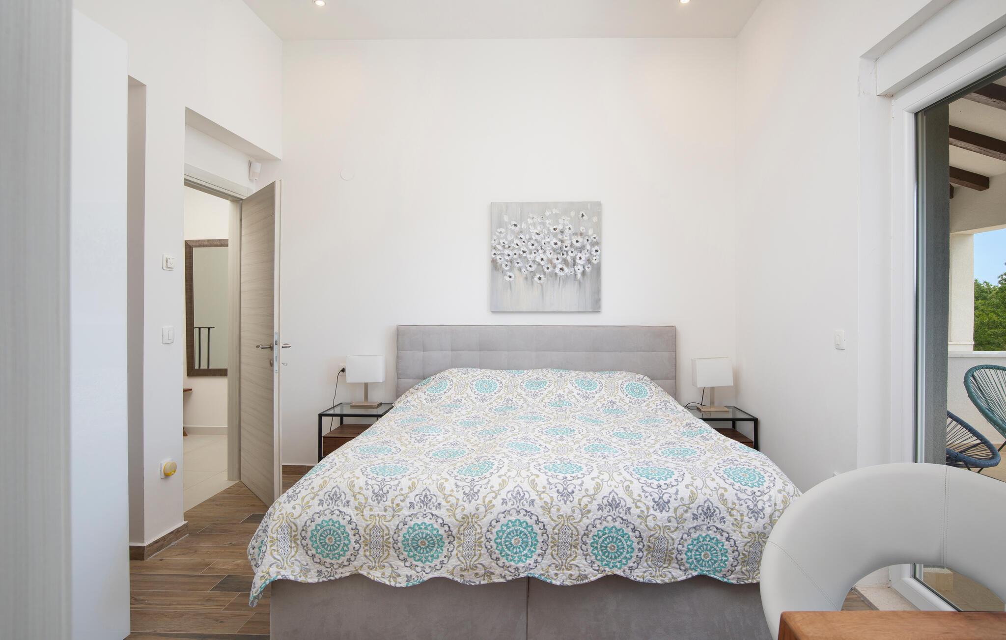 Auf der oberen Etage befinden sich 3 Schlafzimmer mit Doppel-Boxspringbetten, die für einen Traumschlaf sorgen. Alle 3 Zimmer verfügen über eigene Bäder, die im modernen und funktionalen Stil gestaltet sind.