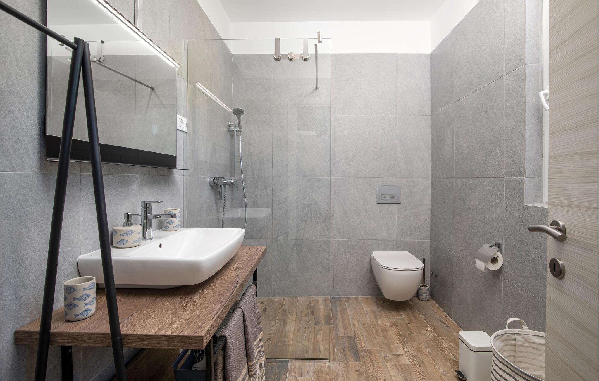 Badezimmer (nr. 4) - WC. Warmes und kaltes Wasser. Dusche