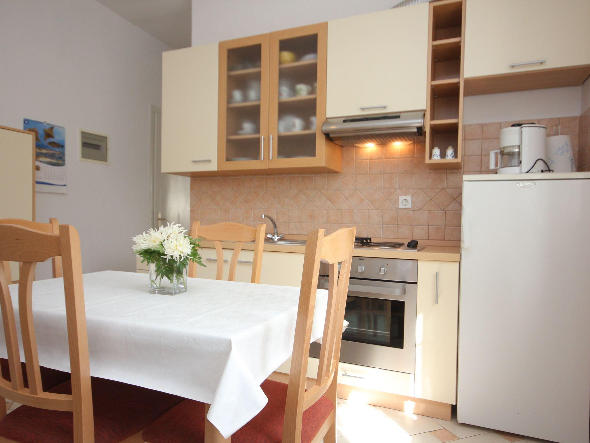 Ferienwohnung bietet Platz für 3 Gäste. Die Betten sind in Schlafzimmern, die es 1 gibt, und in Esszimmer, innerhalb einer Gesamtfläche von 34m2, angeordnet. Die Gäste haben eine eigene Terrasse zur Verfügung, auf der sie in warmen Sommernächten genießen können. Das Apartment bietet Meerblick. Es ist erlaubt, Speisen auf dem Gemeinschafts-Grill vorzubereiten. In der Unterkunftseinheit besteht die Möglichkeit des Mitbringens von Haustieren gegen Aufpreis. IM PREIS INBEGRIFFEN: Kurtaxe, Endreinigung, Klimatisierung, Parkplatz, Internet, Kinderbett, Bügeleisen, Bügelbrett, Föhn, tragbarer Grill, Sonnenschirm, Liegestühle. UNVERBINDLICHE ZUSÄTZLICHE KOSTEN: Zentralheizung (5,00 € pro Nacht), Wäschewaschen (10,00 € Waschen), Bootsanlegeplatz (5,00 € pro Nacht), Haustiere (5,00 € pro Nacht). Die Verfügbarkeit zusätzlicher Dienstleistungen in Ihrem reservierten Termin und die Preise derselben (falls nicht aufgeführt) müssen im Voraus überprüft werden. Zusätzliche Dienstleistungen die in der Zahlungsaufforderung nicht aufgeführt sind werden direkt beim Vermieter bezahlt, angenommen der Gast nutzt auch diese.