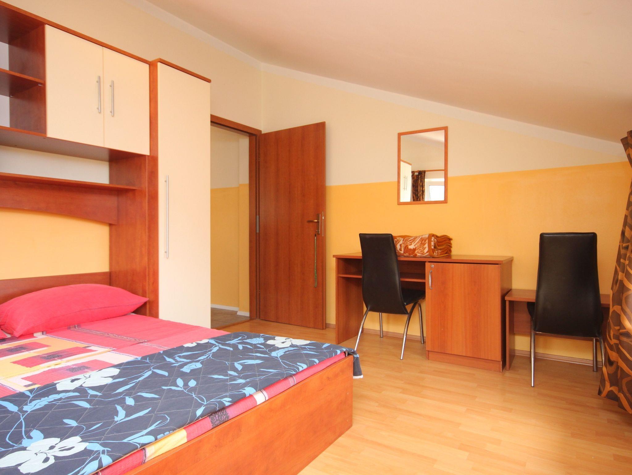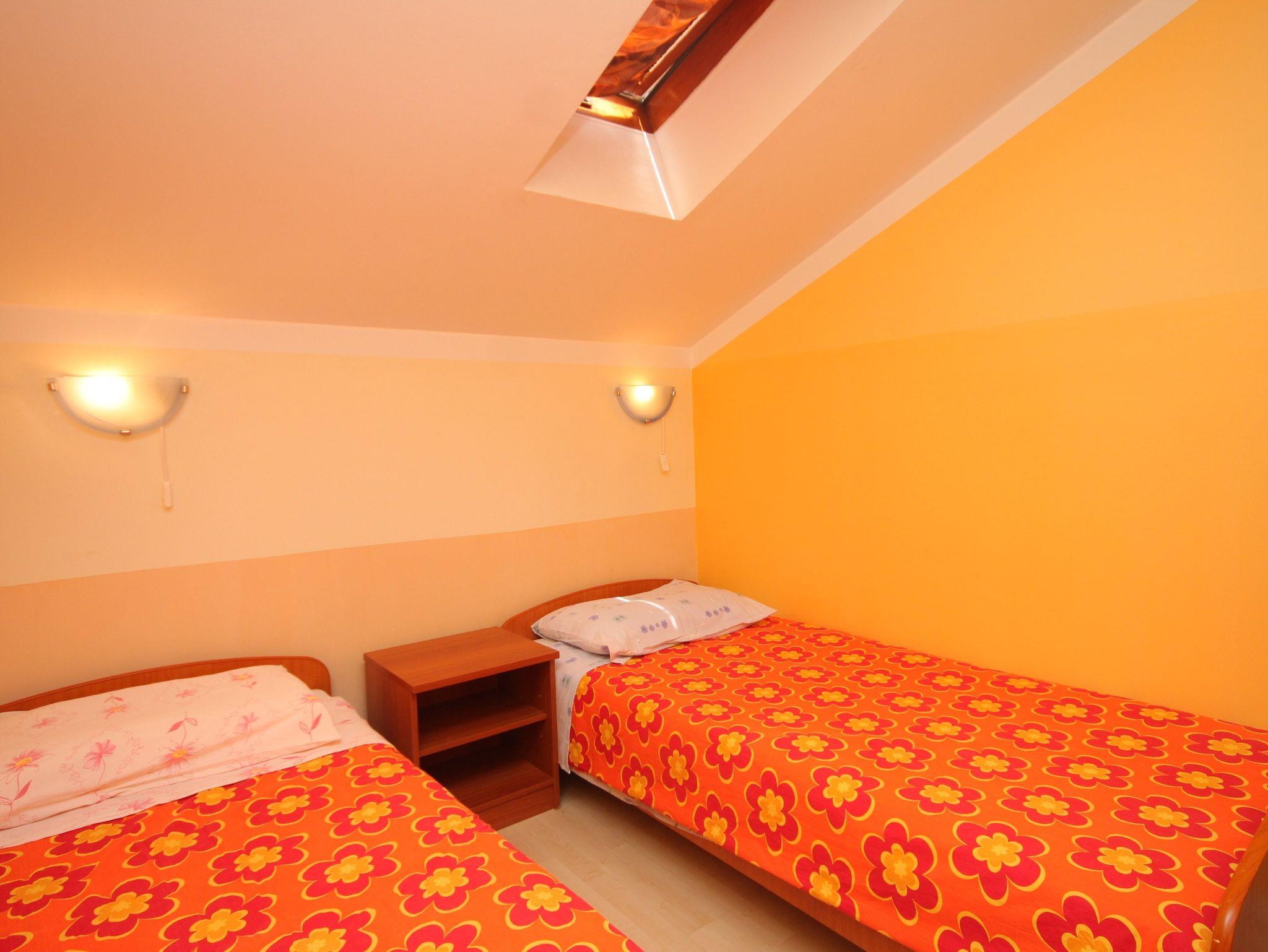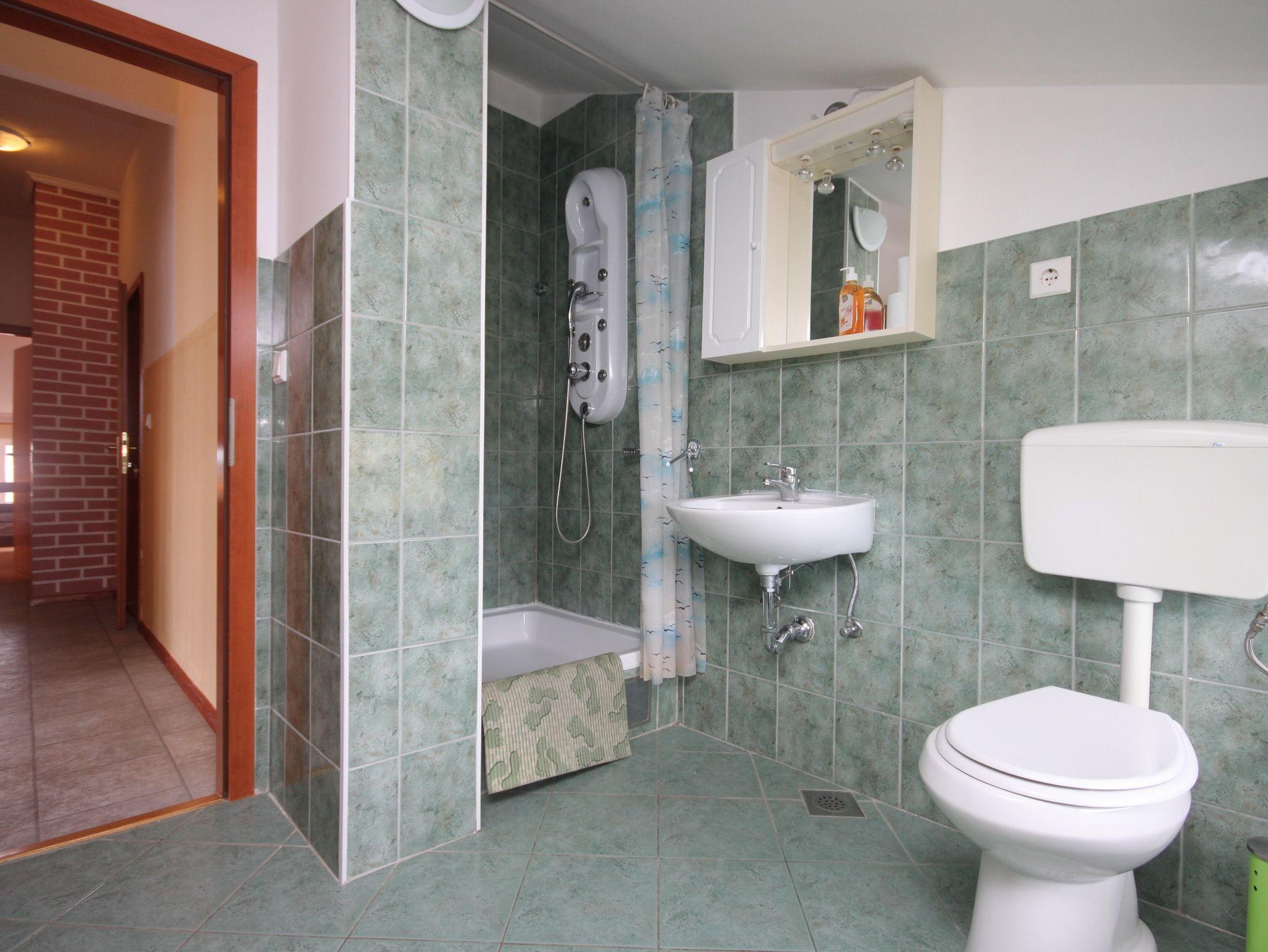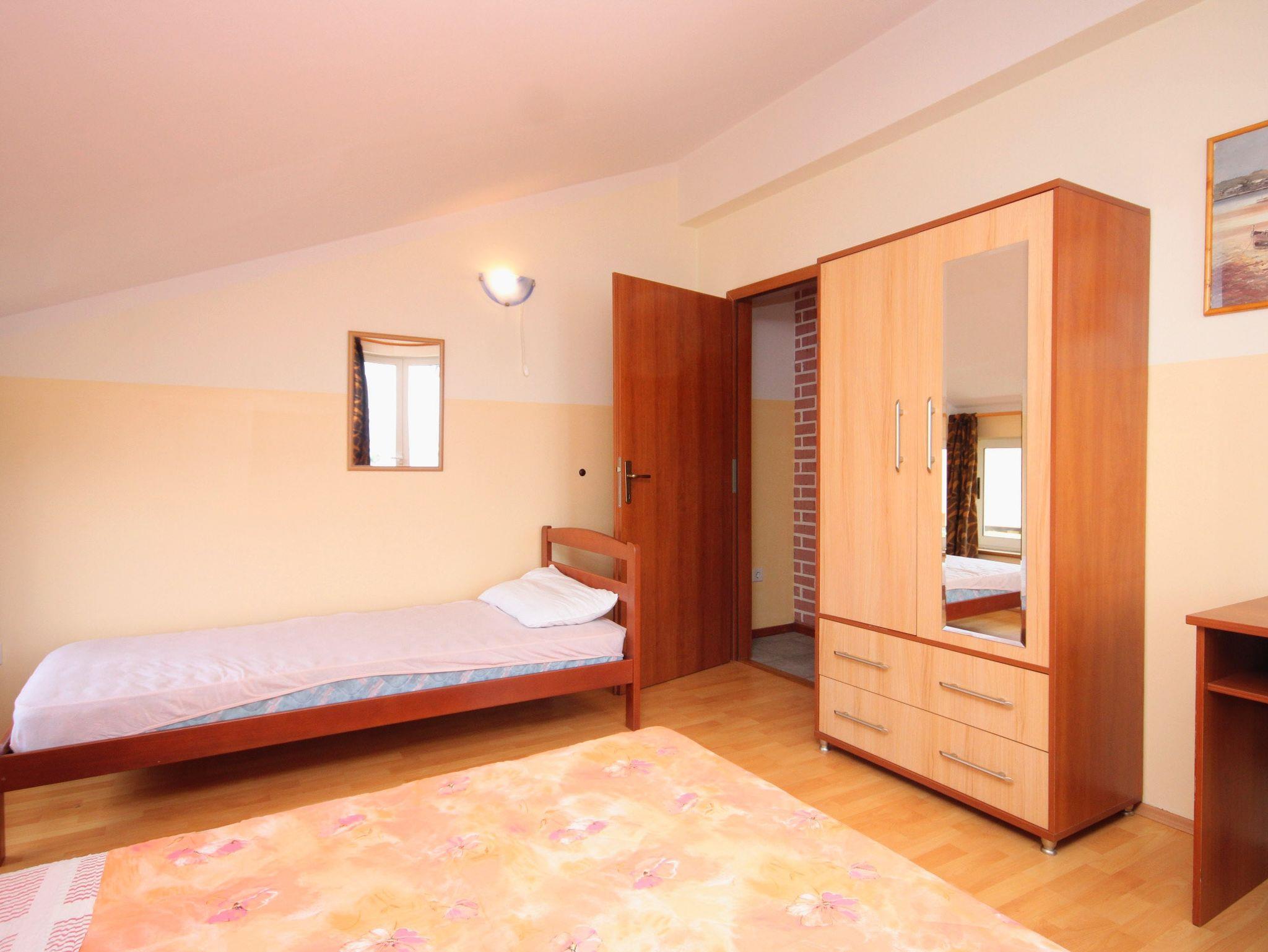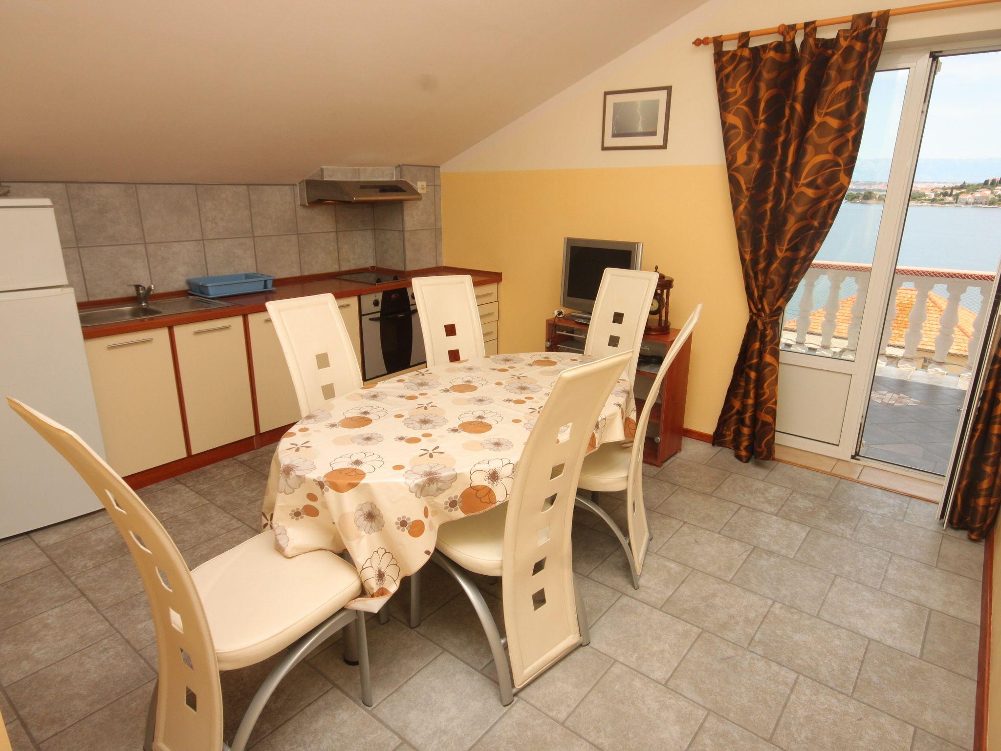 Ferienwohnung bietet Platz für 11 Gäste. Die Betten sind in Schlafzimmern, die es 5 gibt, innerhalb einer Gesamtfläche von 104m2, angeordnet. Die Gäste haben eine eigene Terrasse zur Verfügung, auf der sie in warmen Sommernächten genießen können. Das Apartment bietet Meerblick. Es ist erlaubt, Speisen auf dem Gemeinschafts-Grill vorzubereiten. In der Unterkunftseinheit besteht die Möglichkeit des Mitbringens von Haustieren gegen Aufpreis. IM PREIS INBEGRIFFEN: Kurtaxe, Endreinigung, Klimatisierung, Parkplatz, Internet, Bootsanlegeplatz, Kinderbett, Sonnenschirm. VERBINDLICHE ZUSÄTZLICHE KOSTEN: Aufzahlung für Kurzaufenthalte (prozentualer Zuschlag pro Nächtigungsanzahl: 30% - 1, 20% - 2, 10% - 3). UNVERBINDLICHE ZUSÄTZLICHE KOSTEN: Wäschewaschen (5,00 € Waschen), Boot (100,00 € pro Nacht), Haustiere (10,00 € pro Nacht), Zusatzbett (5,00 € pro Nacht). Die Verfügbarkeit zusätzlicher Dienstleistungen in Ihrem reservierten Termin und die Preise derselben (falls nicht aufgeführt) müssen im Voraus überprüft werden. Zusätzliche Dienstleistungen die in der Zahlungsaufforderung nicht aufgeführt sind werden direkt beim Vermieter bezahlt, angenommen der Gast nutzt auch diese.