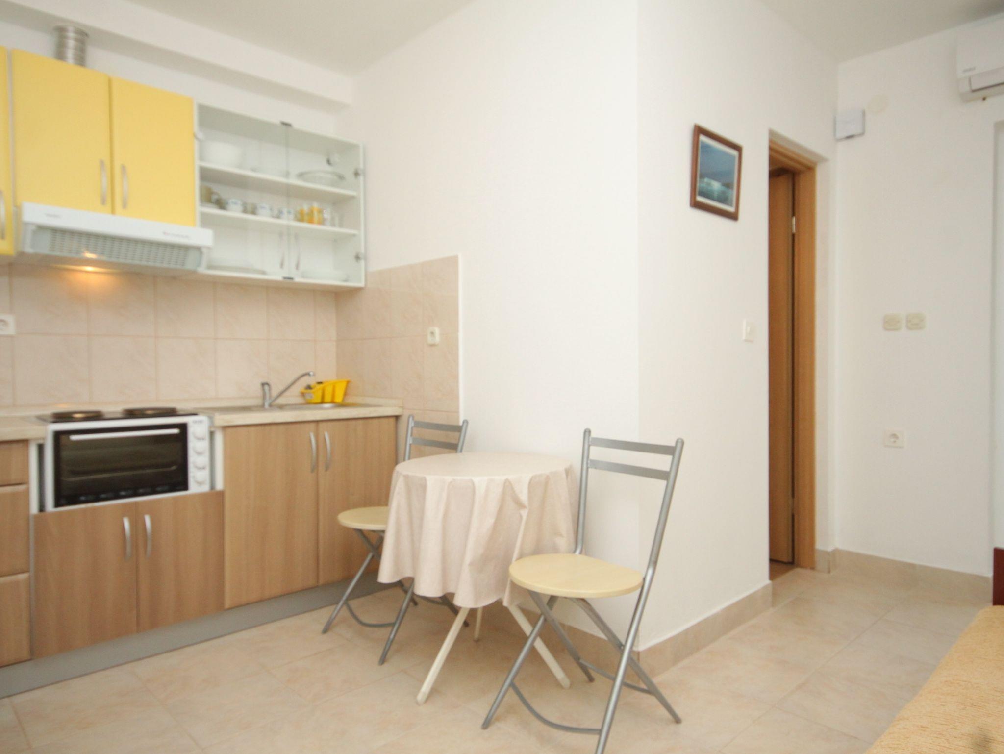 Ferienwohnung bietet Platz für 3 Gäste. Die Betten sind in Schlafzimmern, die es 1 gibt, und in Wohnzimmer, innerhalb einer Gesamtfläche von 24m2, angeordnet. Die Gäste haben eine eigene Terrasse zur Verfügung, auf der sie in warmen Sommernächten genießen können. Das Apartment bietet Meerblick. Es ist erlaubt, Speisen auf dem Gemeinschafts-Grill vorzubereiten. In der Unterkunftseinheit besteht die Möglichkeit des Mitbringens von Haustieren gegen Aufpreis. IM PREIS INBEGRIFFEN: Kurtaxe, Endreinigung, Klimatisierung, Parkplatz, Internet, Wäschewaschen, Bootsanlegeplatz, Bügeleisen, Bügelbrett, Föhn. VERBINDLICHE ZUSÄTZLICHE KOSTEN: Aufzahlung für Kurzaufenthalte (prozentualer Zuschlag pro Nächtigungsanzahl: 30% - 1, 20% - 2, 10% - 3). UNVERBINDLICHE ZUSÄTZLICHE KOSTEN: Haustiere (10,00 € pro Nacht). Die Verfügbarkeit zusätzlicher Dienstleistungen in Ihrem reservierten Termin und die Preise derselben (falls nicht aufgeführt) müssen im Voraus überprüft werden. Zusätzliche Dienstleistungen die in der Zahlungsaufforderung nicht aufgeführt sind werden direkt beim Vermieter bezahlt, angenommen der Gast nutzt auch diese.