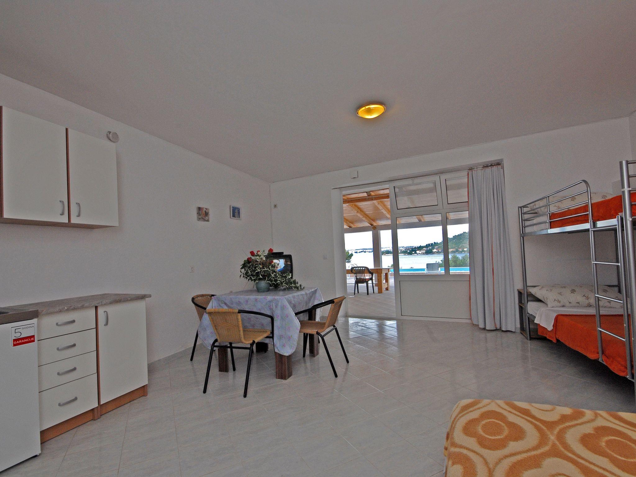 Studio bietet Platz für 2 Gäste. Die Betten sind in Schlafzimmern, die es 1 gibt, innerhalb einer Gesamtfläche von 27m2, angeordnet. Die Gäste haben eine eigene Terrasse zur Verfügung, auf der sie in warmen Sommernächten genießen können. Das Studio-Apartment bietet Meerblick. Es ist erlaubt, Speisen auf dem Gemeinschafts-Grill vorzubereiten. Während ihres Aufenthalts können Gäste das gemeinsam zur Nutzung stehende Schwimmbad benutzen. IM PREIS INBEGRIFFEN: Kurtaxe, Endreinigung, Pool, Parkplatz, Internet, Kinderbett, 2 Kinderbettchen (im Preis enthalten). VERBINDLICHE ZUSÄTZLICHE KOSTEN: Aufzahlung für Kurzaufenthalte (prozentualer Zuschlag pro Nächtigungsanzahl: 30% - 1, 20% - 2, 10% - 3). UNVERBINDLICHE ZUSÄTZLICHE KOSTEN: Wäschewaschen (5,00 € Waschen). Die Verfügbarkeit zusätzlicher Dienstleistungen in Ihrem reservierten Termin und die Preise derselben (falls nicht aufgeführt) müssen im Voraus überprüft werden. Zusätzliche Dienstleistungen die in der Zahlungsaufforderung nicht aufgeführt sind werden direkt beim Vermieter bezahlt, angenommen der Gast nutzt auch diese.
