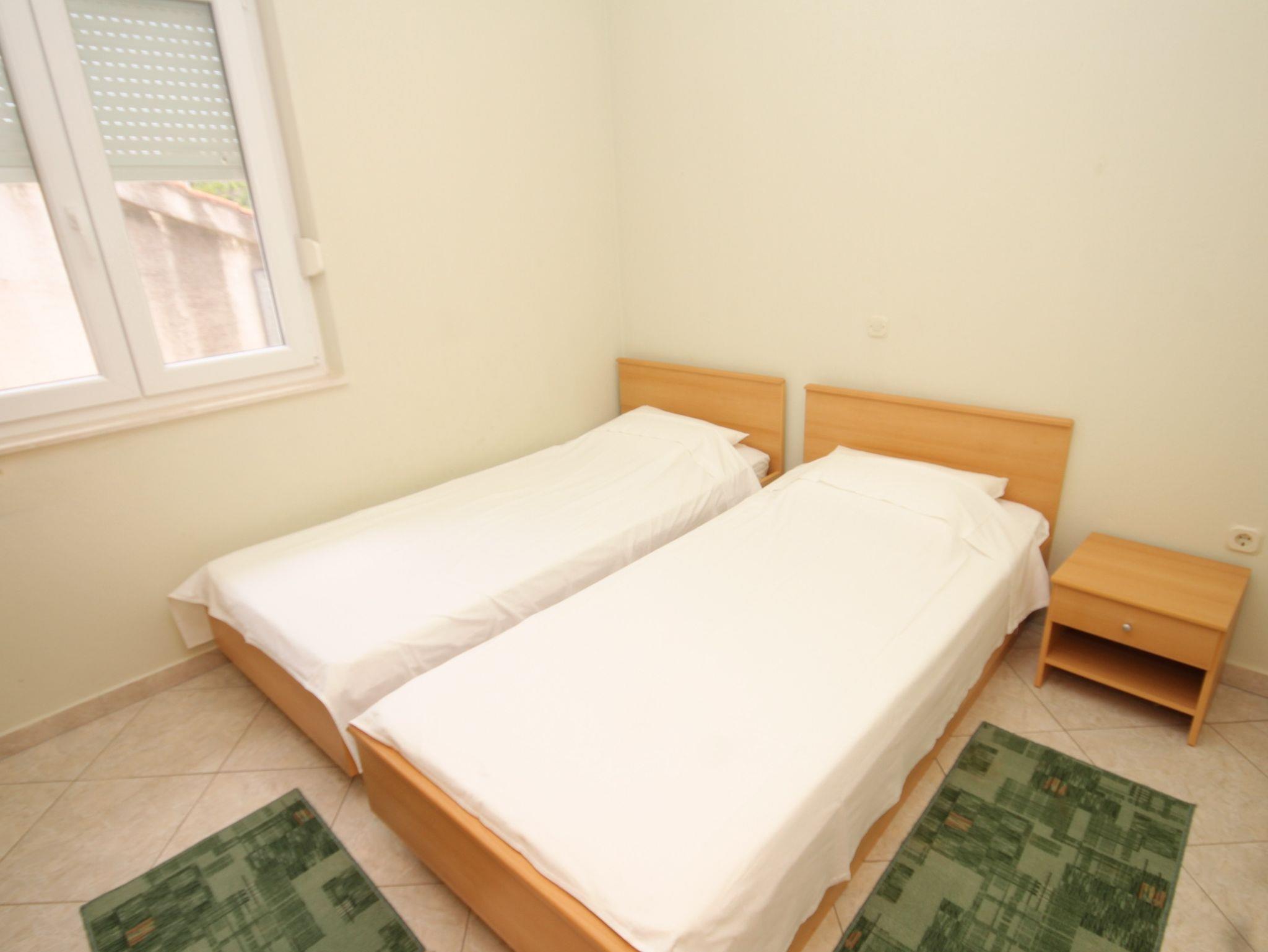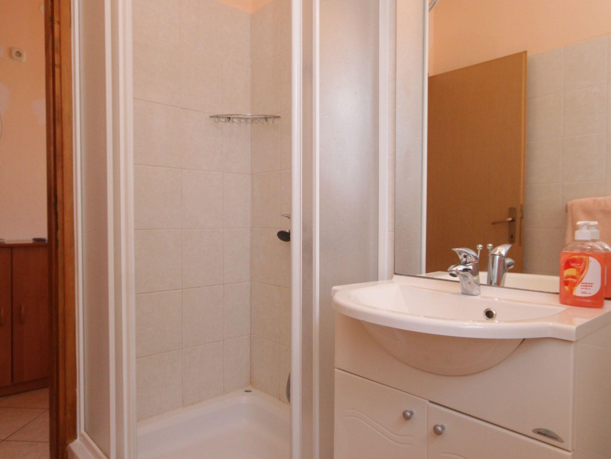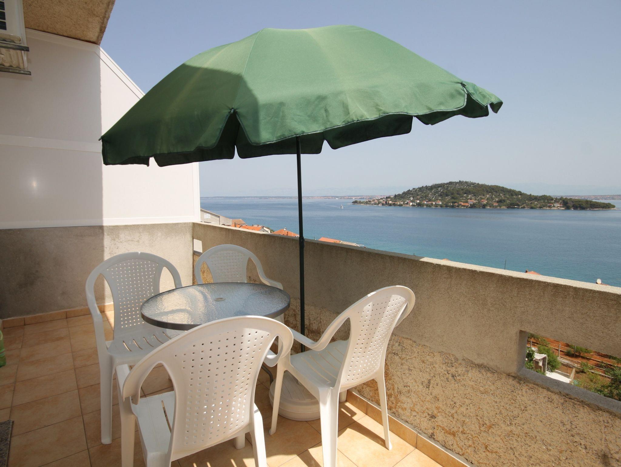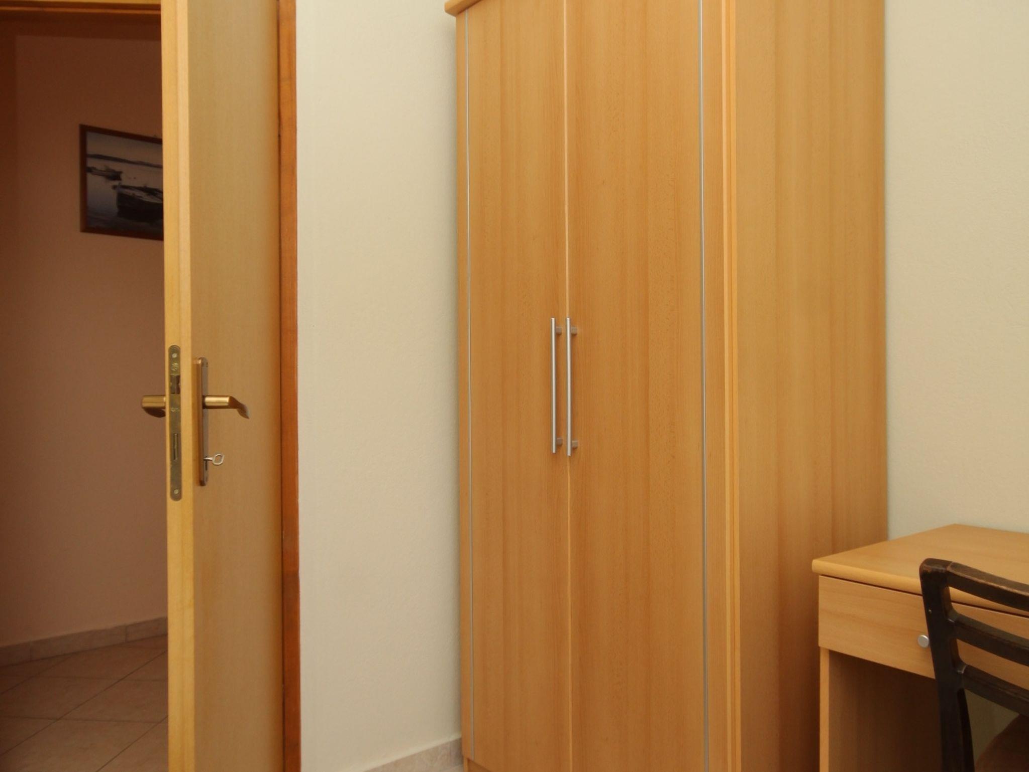 Ferienwohnung bietet Platz für 4 Gäste. Die Betten sind in Schlafzimmern, die es 2 gibt, innerhalb einer Gesamtfläche von 42m2, angeordnet. Die Gäste haben eine eigene Terrasse zur Verfügung, auf der sie in warmen Sommernächten genießen können. Das Apartment bietet Meerblick. Es ist erlaubt, Speisen auf dem Gemeinschafts-Grill vorzubereiten. IM PREIS INBEGRIFFEN: Kurtaxe, Endreinigung, Klimatisierung, Parkplatz, Internet, Bügeleisen, Bügelbrett, Föhn. VERBINDLICHE ZUSÄTZLICHE KOSTEN: Aufzahlung für Kurzaufenthalte (prozentualer Zuschlag pro Nächtigungsanzahl: 30% - 1, 20% - 2, 10% - 3). Die Verfügbarkeit zusätzlicher Dienstleistungen in Ihrem reservierten Termin und die Preise derselben (falls nicht aufgeführt) müssen im Voraus überprüft werden. Zusätzliche Dienstleistungen die in der Zahlungsaufforderung nicht aufgeführt sind werden direkt beim Vermieter bezahlt, angenommen der Gast nutzt auch diese. Ermäßigung auf den Grundpreis: Gratistag 14=13 (bei einem Aufenthalt von 14 Tagen oder mehr erhalten Sie einen Gratistag für den Aufenthalt bis 31.12.26).