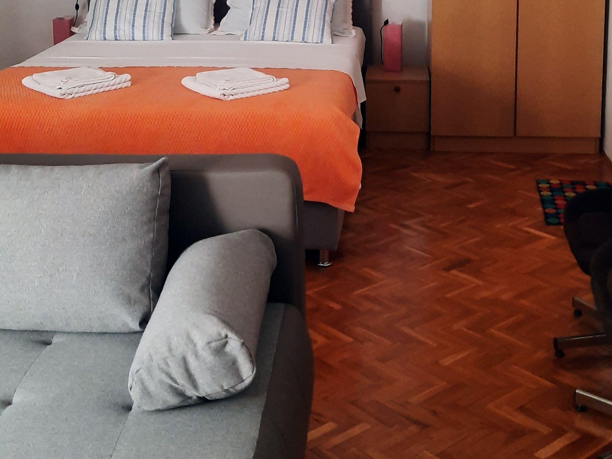 Studio bietet Platz für 2 Gäste. Die Betten sind in Schlafzimmern, die es 1 gibt, innerhalb einer Gesamtfläche von 31m2, angeordnet. Die Gäste haben eine eigene Terrasse zur Verfügung, auf der sie in warmen Sommernächten genießen können. Das Studio-Apartment bietet Meerblick. Es ist erlaubt, Speisen auf dem Gemeinschafts-Grill vorzubereiten. In der Unterkunftseinheit besteht die Möglichkeit des Mitbringens von Haustieren gegen Aufpreis. IM PREIS INBEGRIFFEN: Kurtaxe, Endreinigung, Klimatisierung, Parkplatz, Internet, Bügeleisen, Bügelbrett, Föhn, 1 Bett für Kinder (im Preis enthalten). VERBINDLICHE ZUSÄTZLICHE KOSTEN: Aufzahlung für Kurzaufenthalte (prozentualer Zuschlag pro Nächtigungsanzahl: 30% - 1, 20% - 2, 10% - 3). UNVERBINDLICHE ZUSÄTZLICHE KOSTEN: Haustiere (10,00 € pro Nacht). Die Verfügbarkeit zusätzlicher Dienstleistungen in Ihrem reservierten Termin und die Preise derselben (falls nicht aufgeführt) müssen im Voraus überprüft werden. Zusätzliche Dienstleistungen die in der Zahlungsaufforderung nicht aufgeführt sind werden direkt beim Vermieter bezahlt, angenommen der Gast nutzt auch diese. Ermäßigung auf den Grundpreis: Gratistag 14=13 (bei einem Aufenthalt von 14 Tagen oder mehr erhalten Sie einen Gratistag für den Aufenthalt bis 31.12.26).